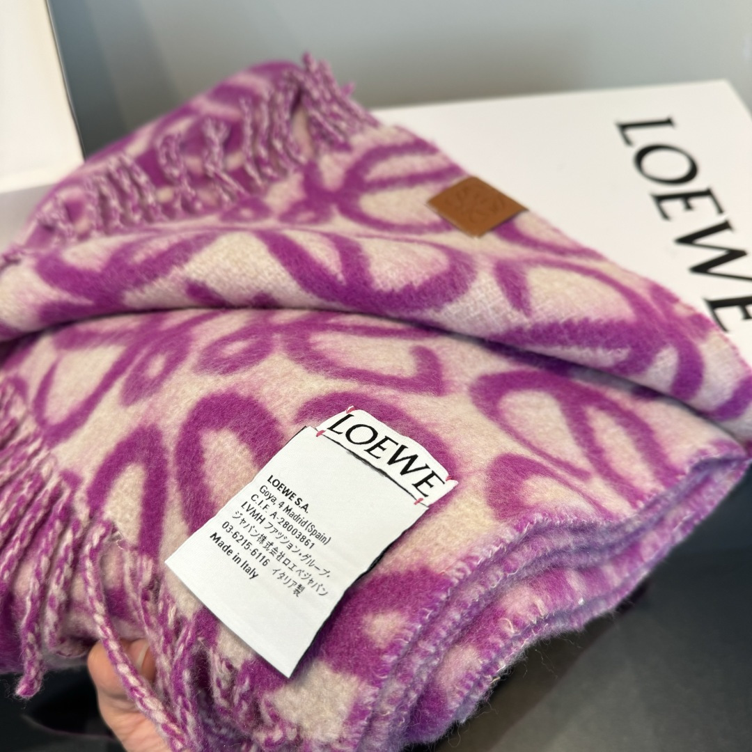 這款圍巾是AAAAA 1:1 質量(非常棒). 使用了和原版一模一樣的材料. 商標部分也保持了和Loewe一樣. 圖片拍攝是實物圍巾拍攝, 您所收到的實物保證和我們圖片一模一樣.