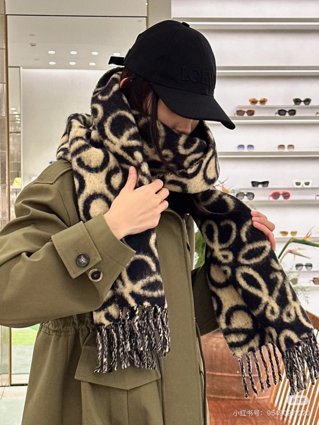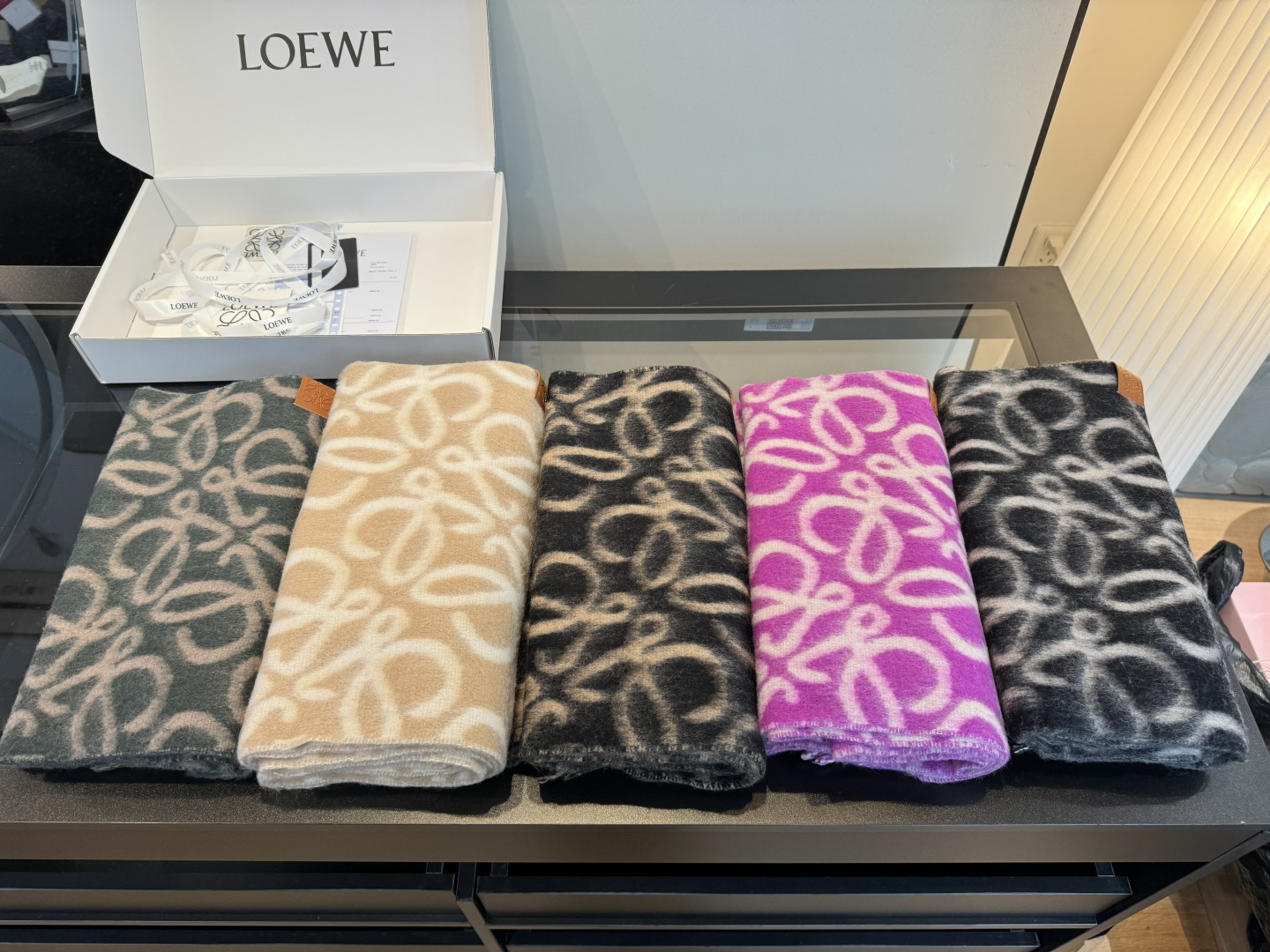 這款圍巾是AAAAA 1:1 質量(非常棒). 使用了和原版一模一樣的材料. 商標部分也保持了和Loewe一樣. 圖片拍攝是實物圍巾拍攝, 您所收到的實物保證和我們圖片一模一樣.