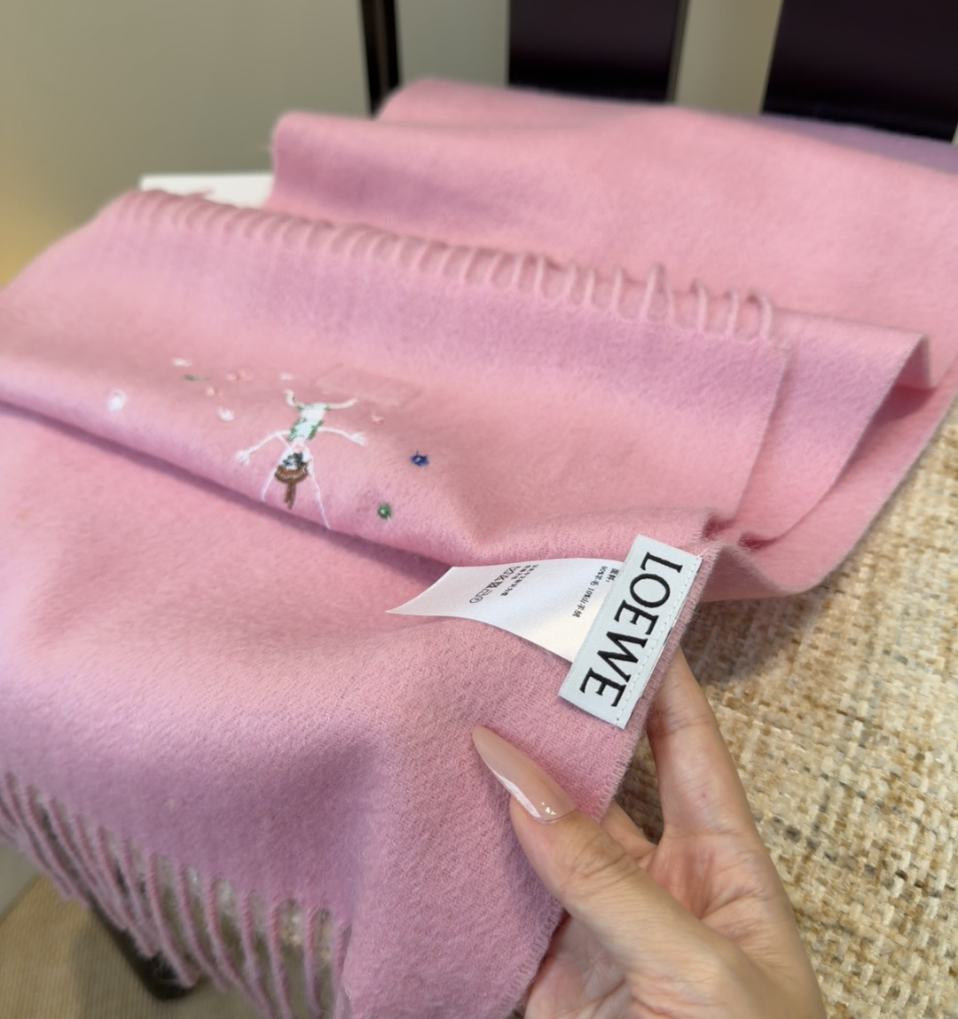 這款圍巾是AAAAA 1:1 質量(非常棒). 使用了和原版一模一樣的材料. 商標部分也保持了和Loewe一樣. 圖片拍攝是實物圍巾拍攝, 您所收到的實物保證和我們圖片一模一樣.