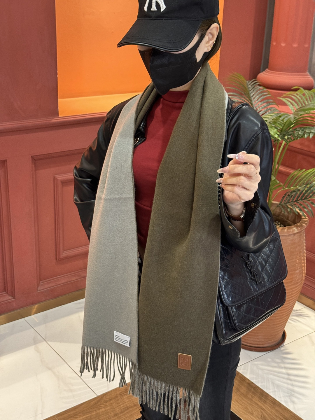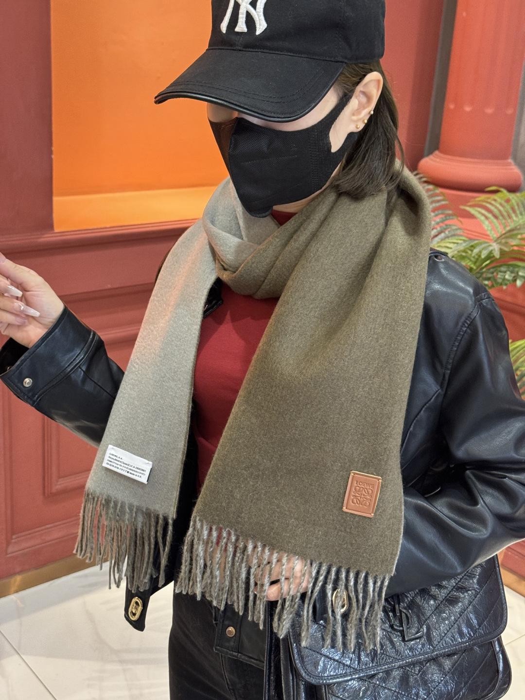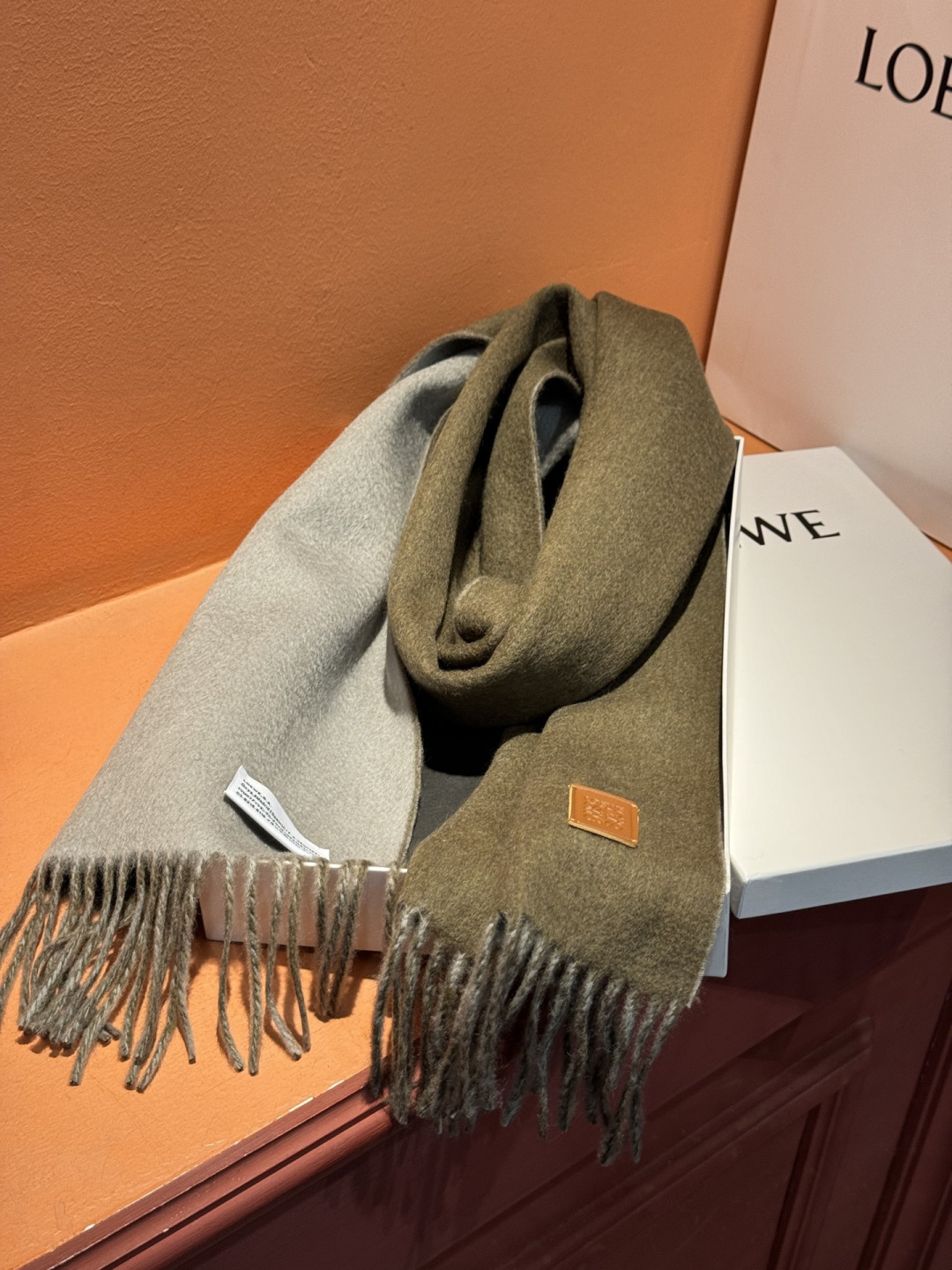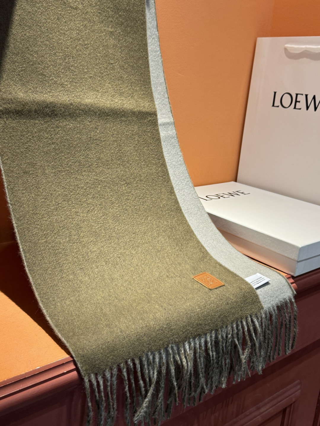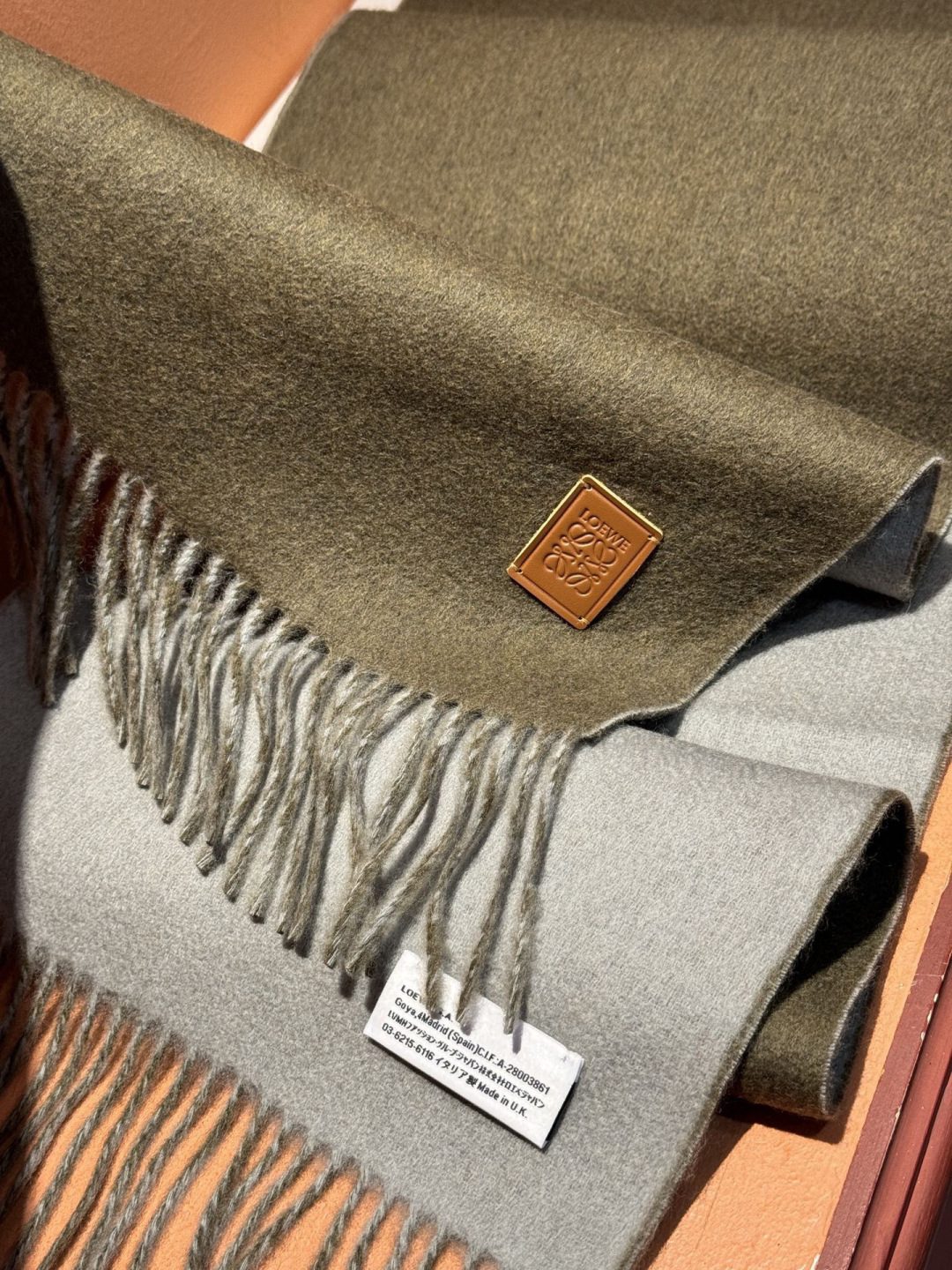這款圍巾是AAAAA 1:1 質量(非常棒). 使用了和原版一模一樣的材料. 商標部分也保持了和Loewe一樣. 圖片拍攝是實物圍巾拍攝, 您所收到的實物保證和我們圖片一模一樣.