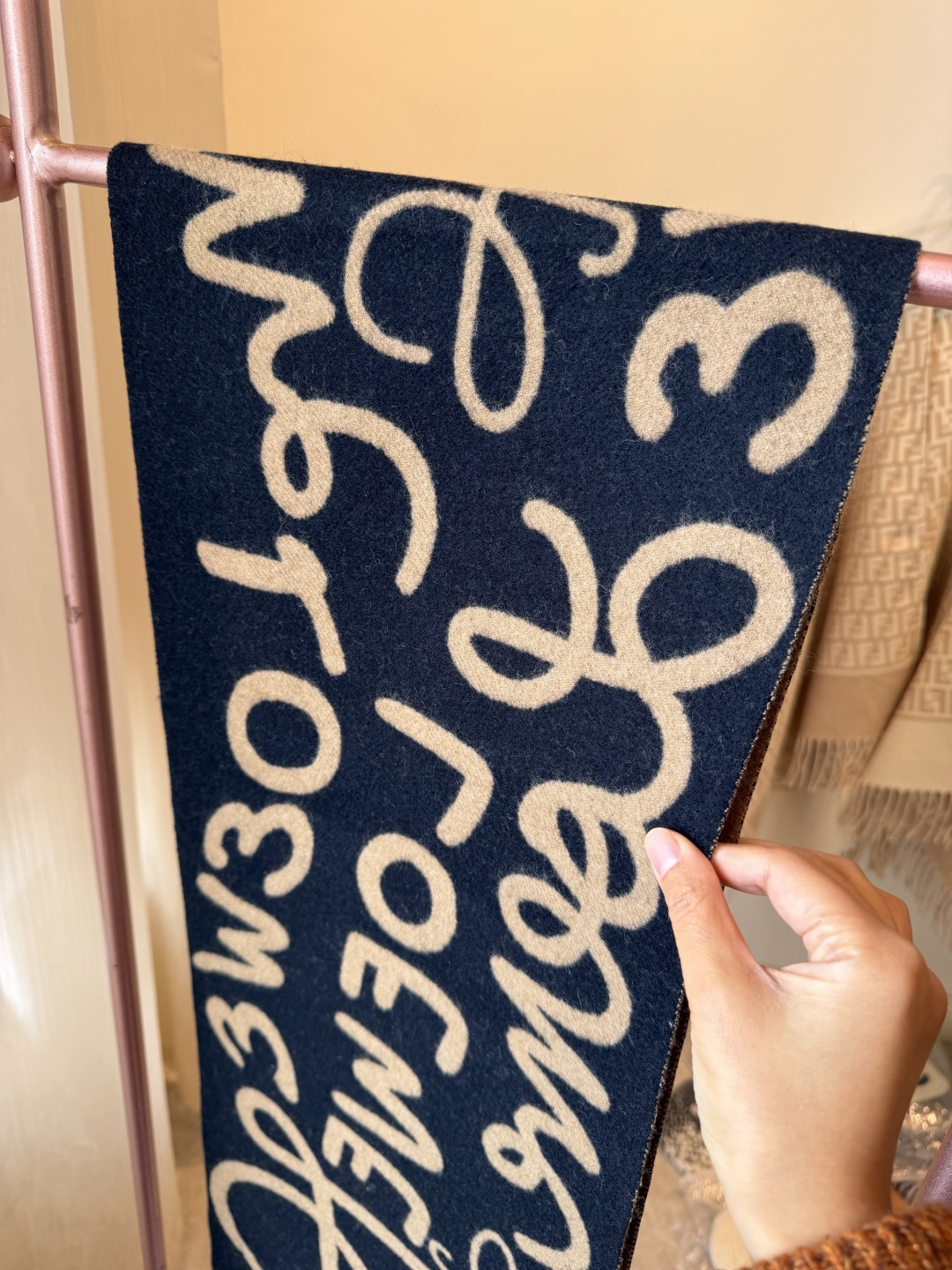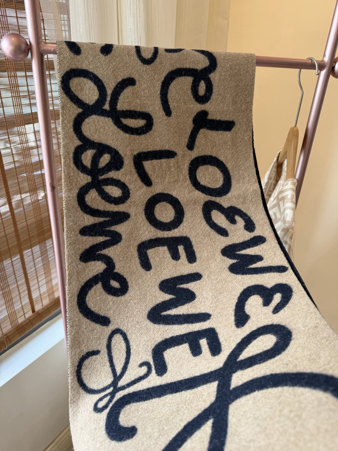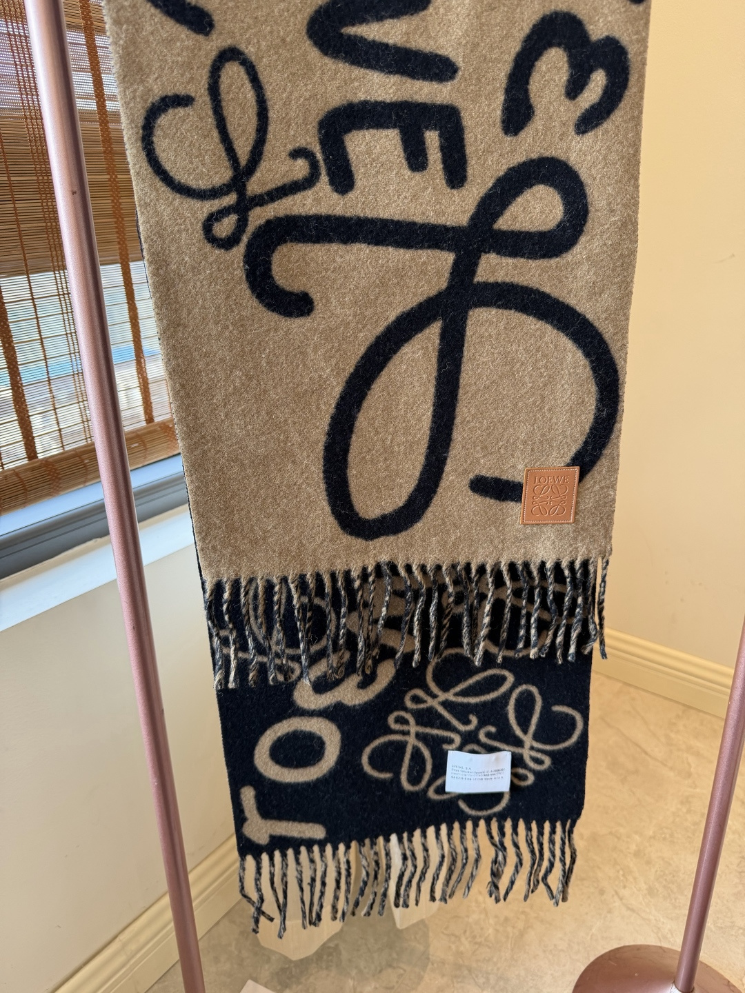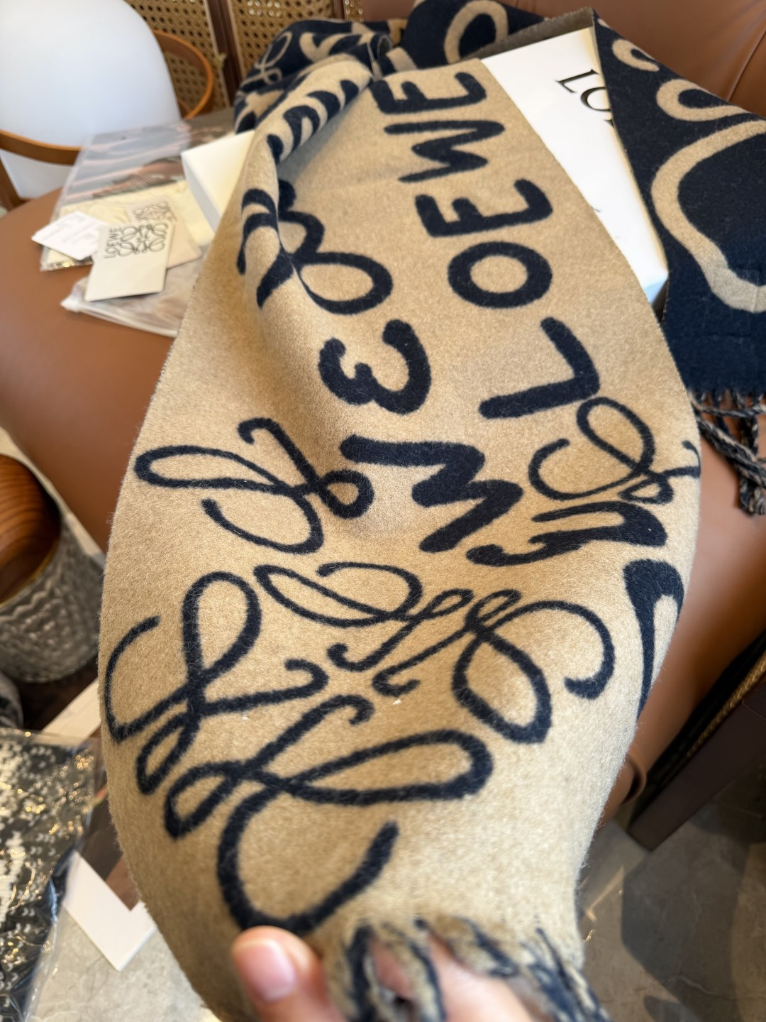 這款圍巾是AAAAA 1:1 質量(非常棒). 使用了和原版一模一樣的材料. 商標部分也保持了和Loewe一樣. 圖片拍攝是實物圍巾拍攝, 您所收到的實物保證和我們圖片一模一樣.