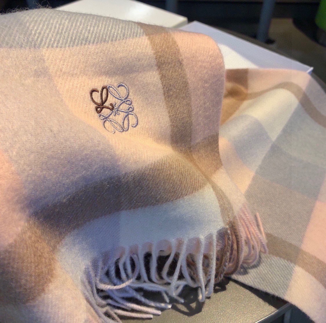 這款圍巾是AAAAA 1:1 質量(非常棒). 使用了和原版一模一樣的材料. 商標部分也保持了和Loewe一樣. 圖片拍攝是實物圍巾拍攝, 您所收到的實物保證和我們圖片一模一樣.