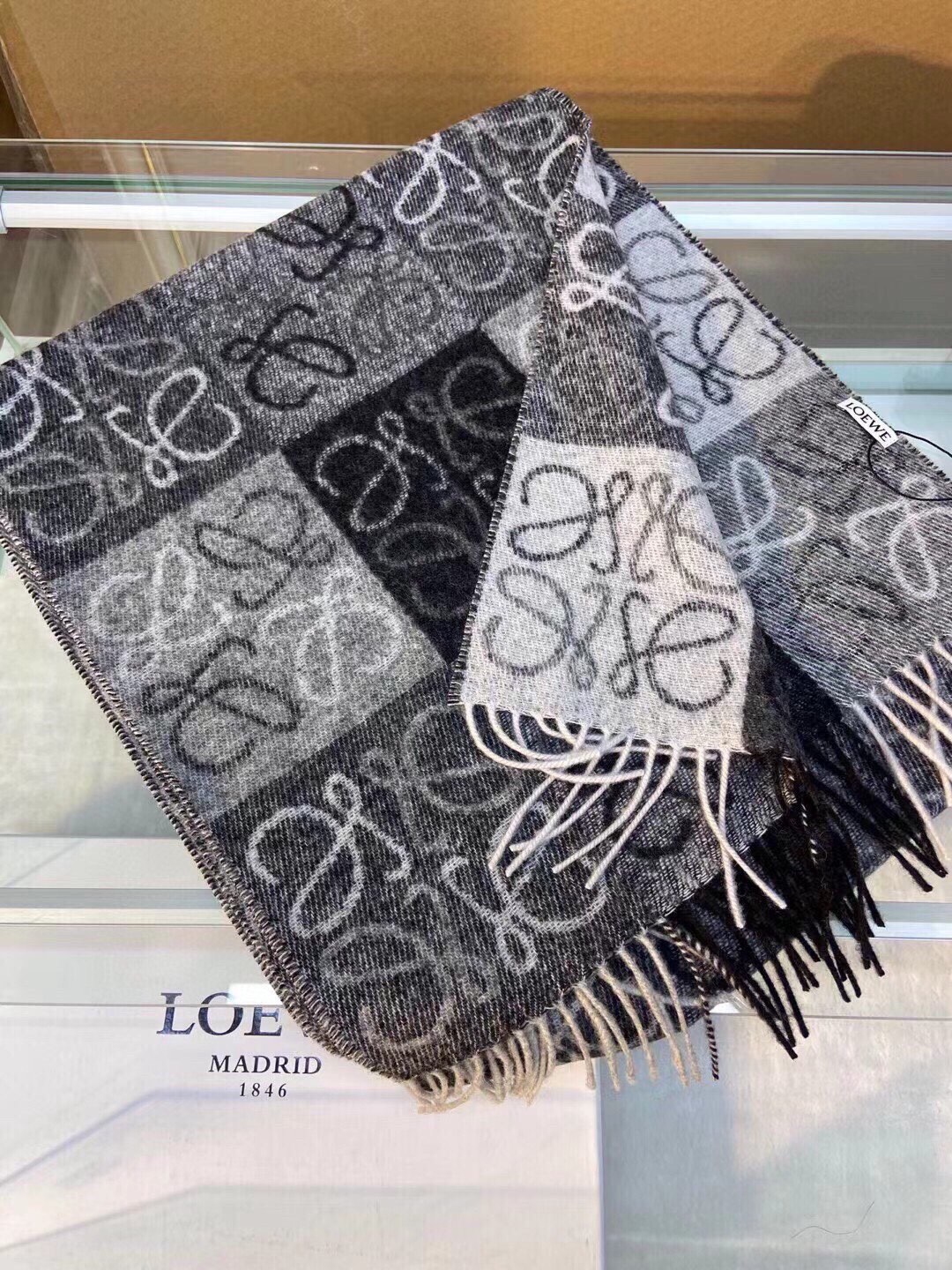 這款圍巾是AAAAA 1:1 質量(非常棒). 使用了和原版一模一樣的材料. 商標部分也保持了和Loewe一樣. 圖片拍攝是實物圍巾拍攝, 您所收到的實物保證和我們圖片一模一樣.