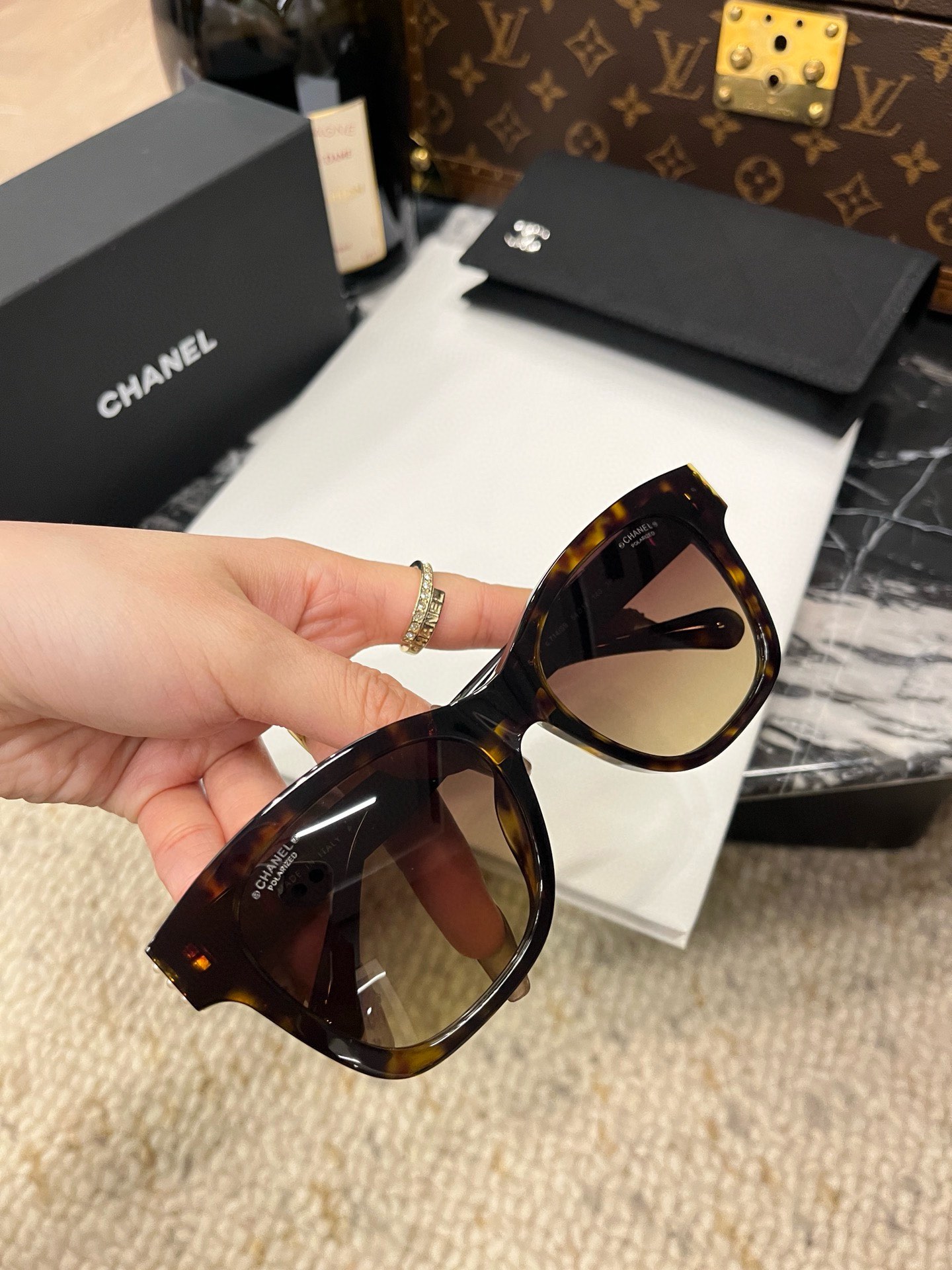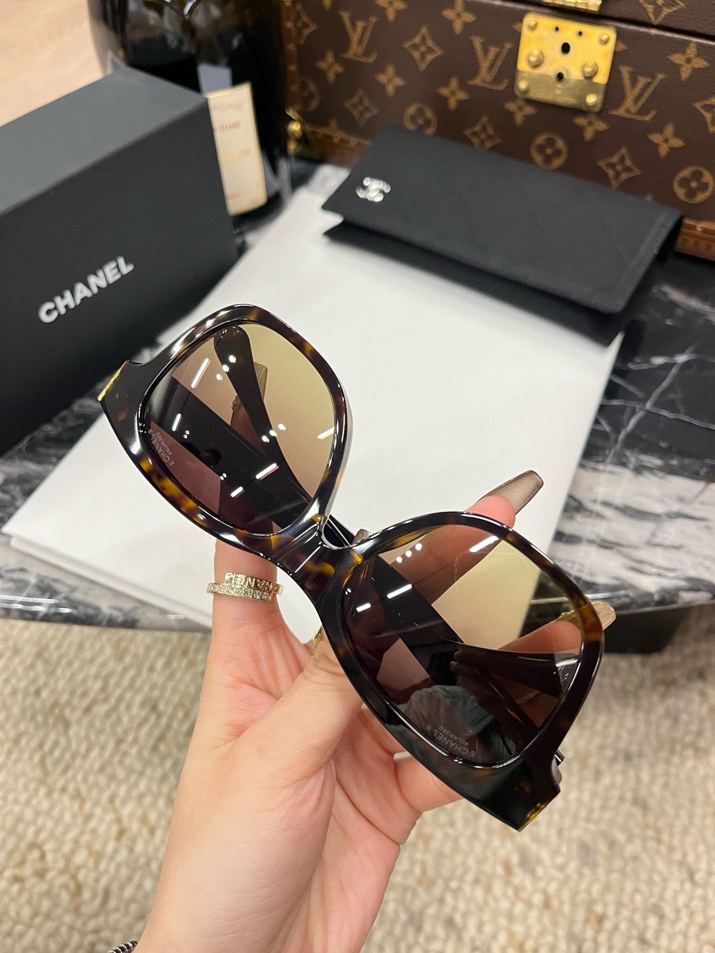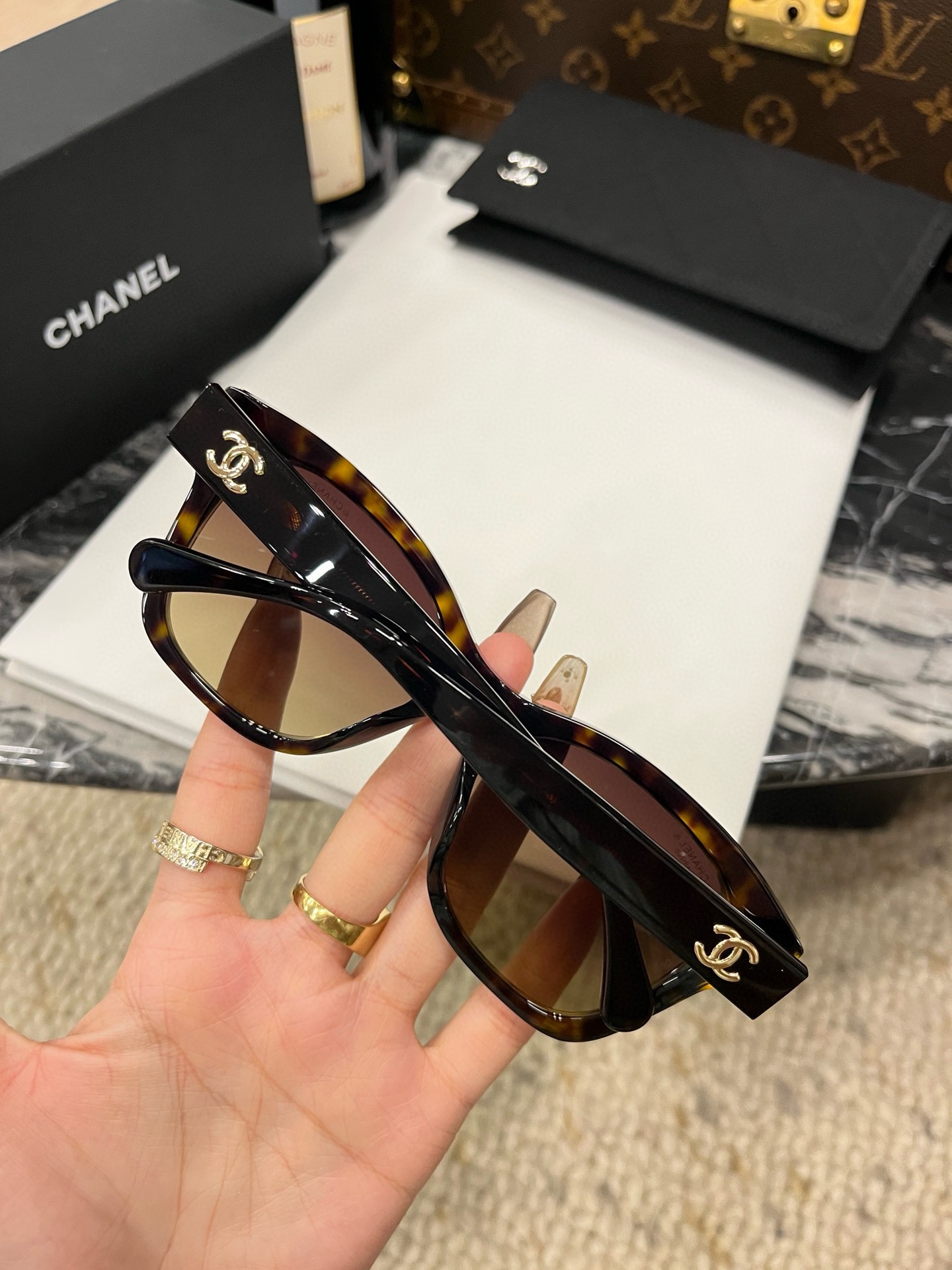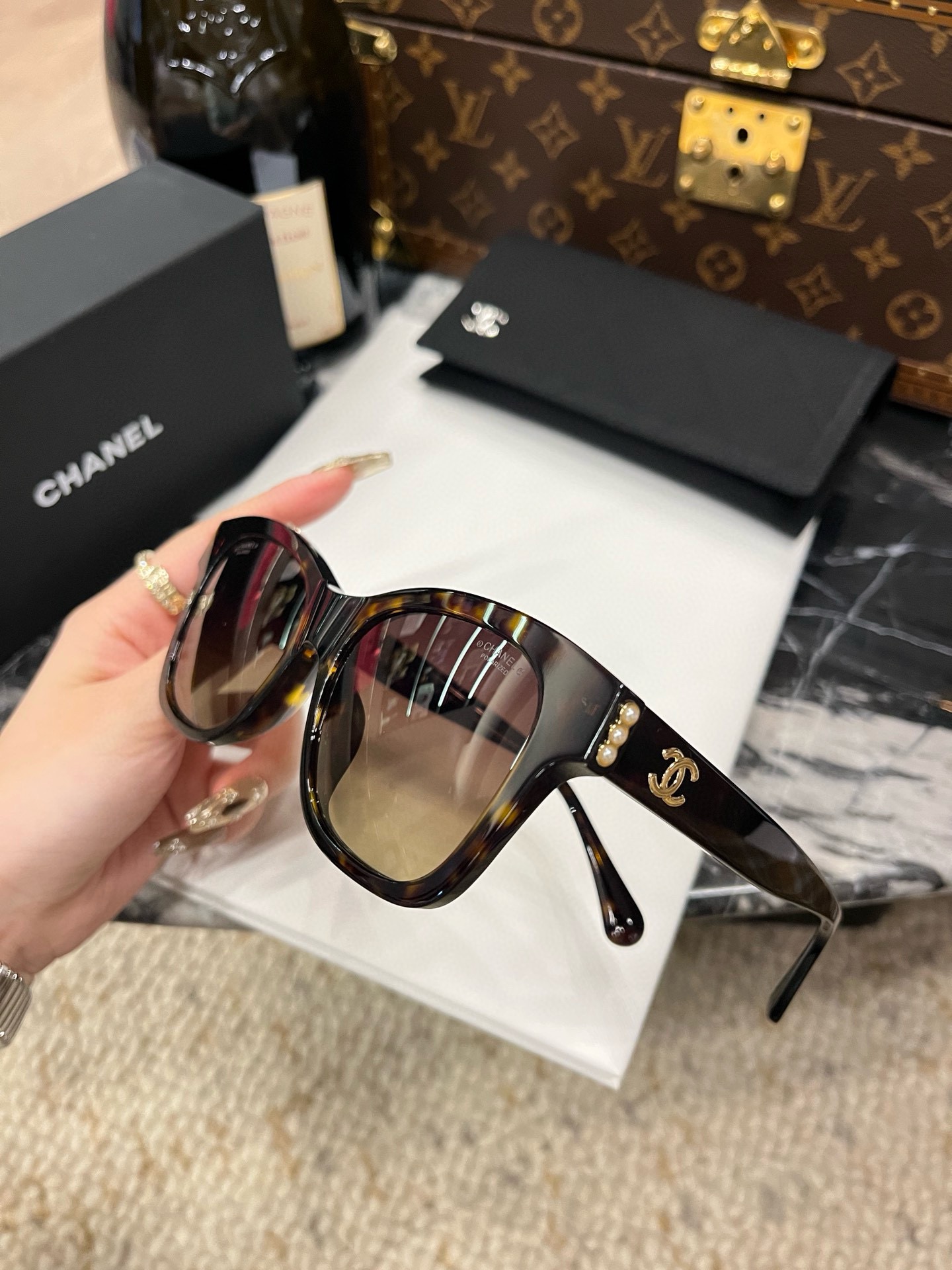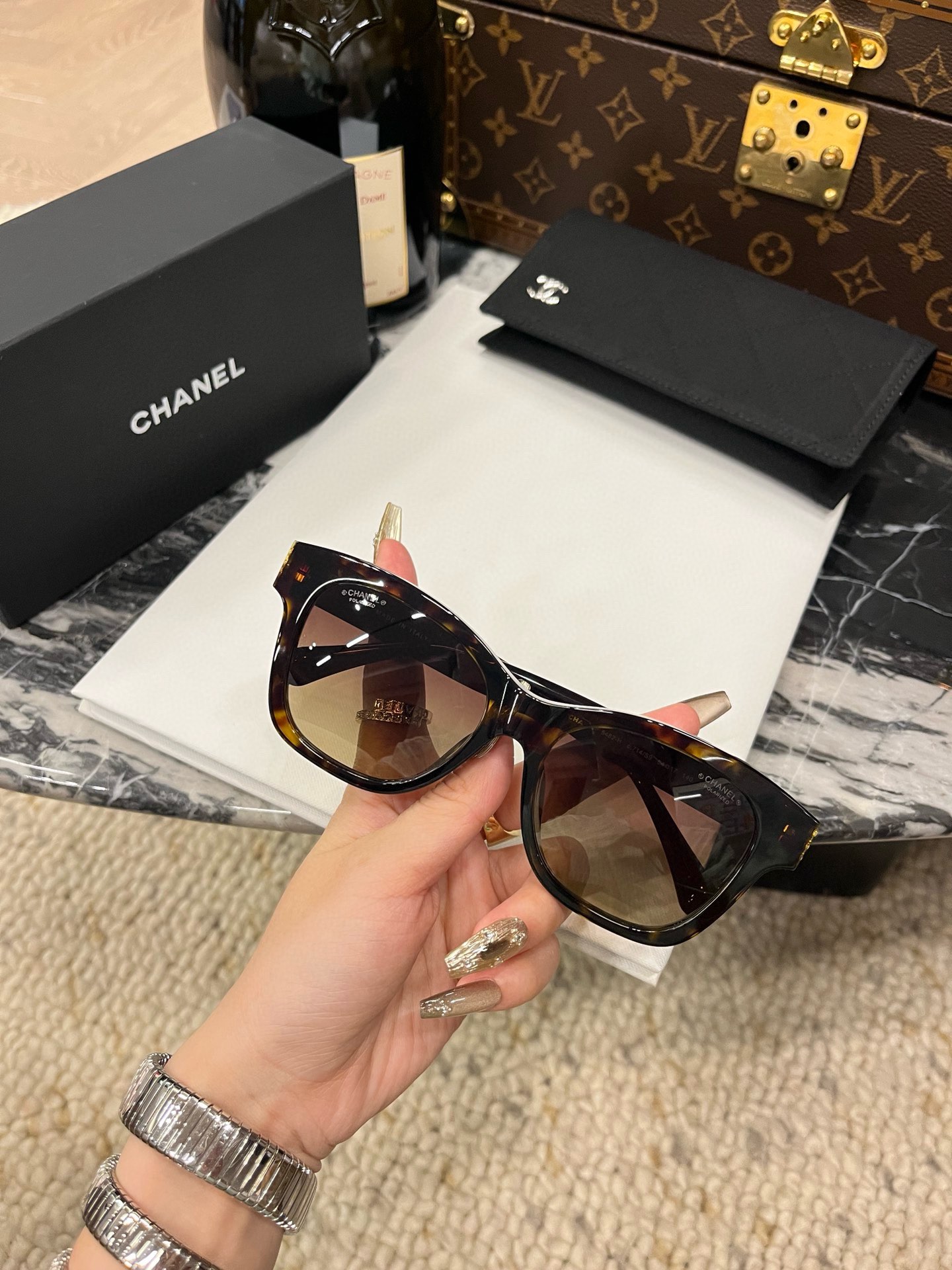 這款太陽眼鏡是AAAAA 1:1 質量(非常棒). 使用了和原版一模一樣的材料. 商標部分也保持了和香奈兒/Chanel一樣. 圖片拍攝是實物太陽眼鏡拍攝, 您所收到的實物保證和我們圖片一模一樣.