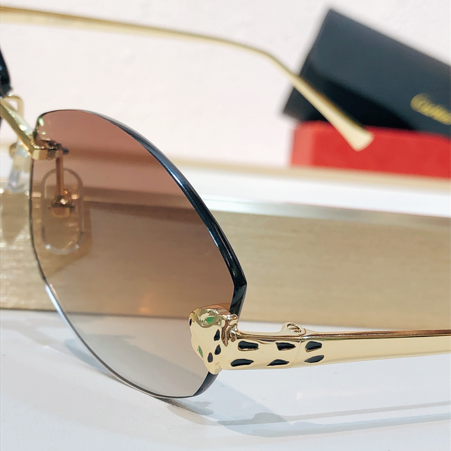 這款太陽眼鏡是AAAAA 1:1 質量(非常棒). 使用了和原版一模一樣的材料. 商標部分也保持了和卡地亞/Cartier一樣. 圖片拍攝是實物太陽眼鏡拍攝, 您所收到的實物保證和我們圖片一模一樣.