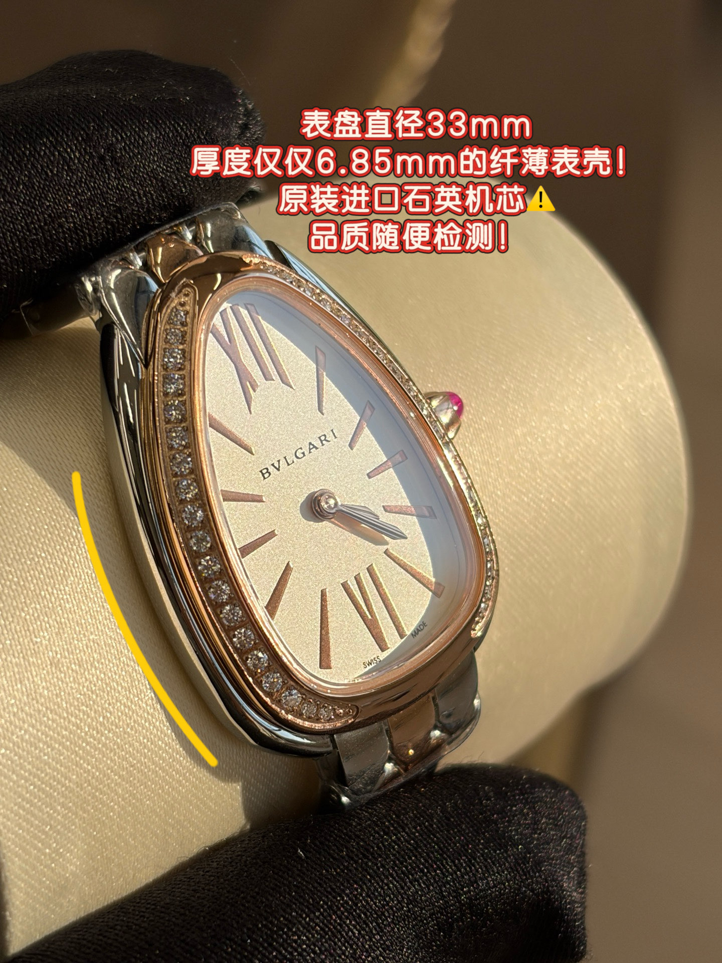 這款手錶是AAAAA 1:1 質量(非常棒). 使用了和原版一模一樣的材料. 商標部分也保持了和寶格麗/Bulgari一樣. 圖片拍攝是實物手錶拍攝, 您所收到的實物保證和我們圖片一模一樣.