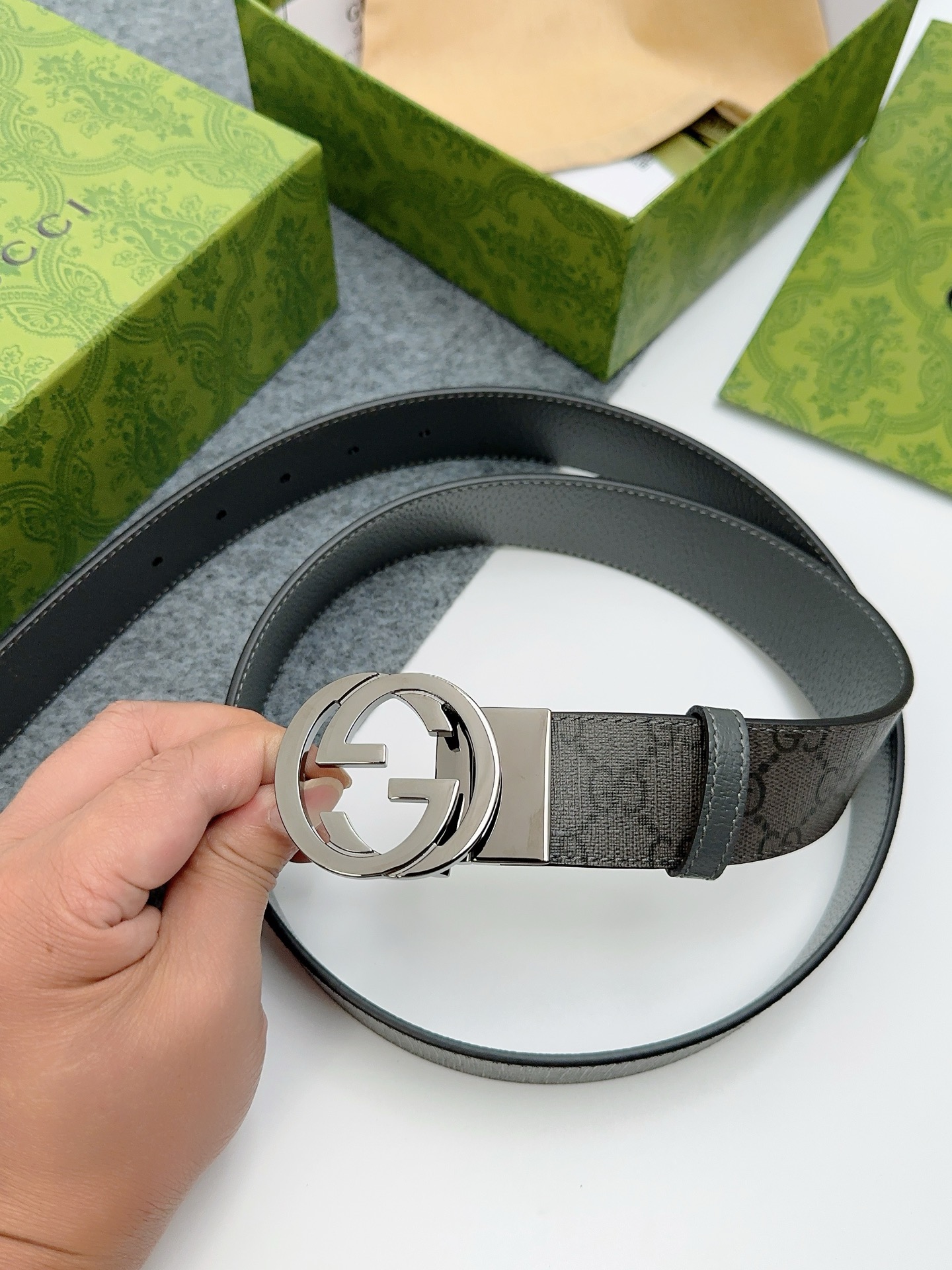 這款皮帶是AAAAA 1:1 質量(非常棒). 使用了和原版一模一樣的材料. 商標部分也保持了和古奇/Gucci一樣. 圖片拍攝是實物皮帶拍攝, 您所收到的實物保證和我們圖片一模一樣.
