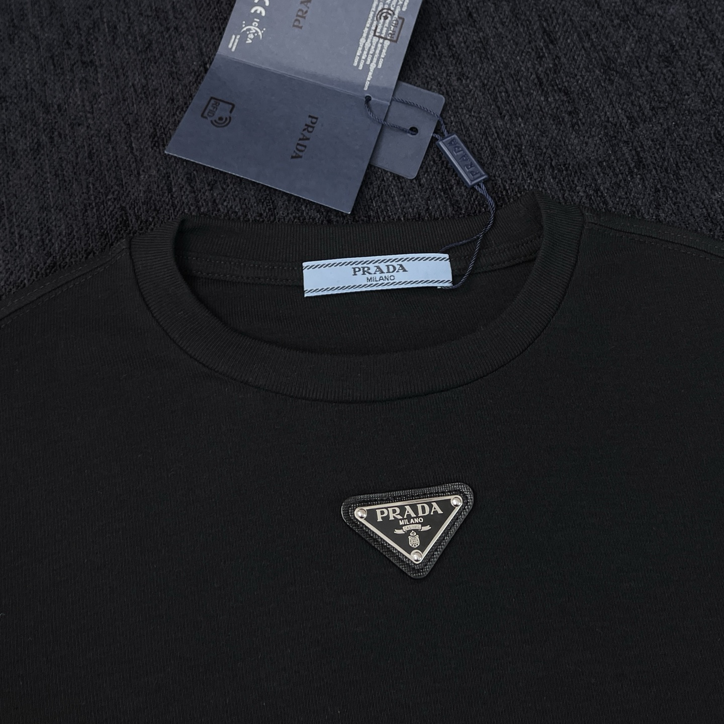 這款衣服是AAAAA 1:1 質量(非常棒). 使用了和原版一模一樣的材料. 商標部分也保持了和普拉達/Prada一樣. 圖片拍攝是實物衣服拍攝, 您所收到的實物保證和我們圖片一模一樣.