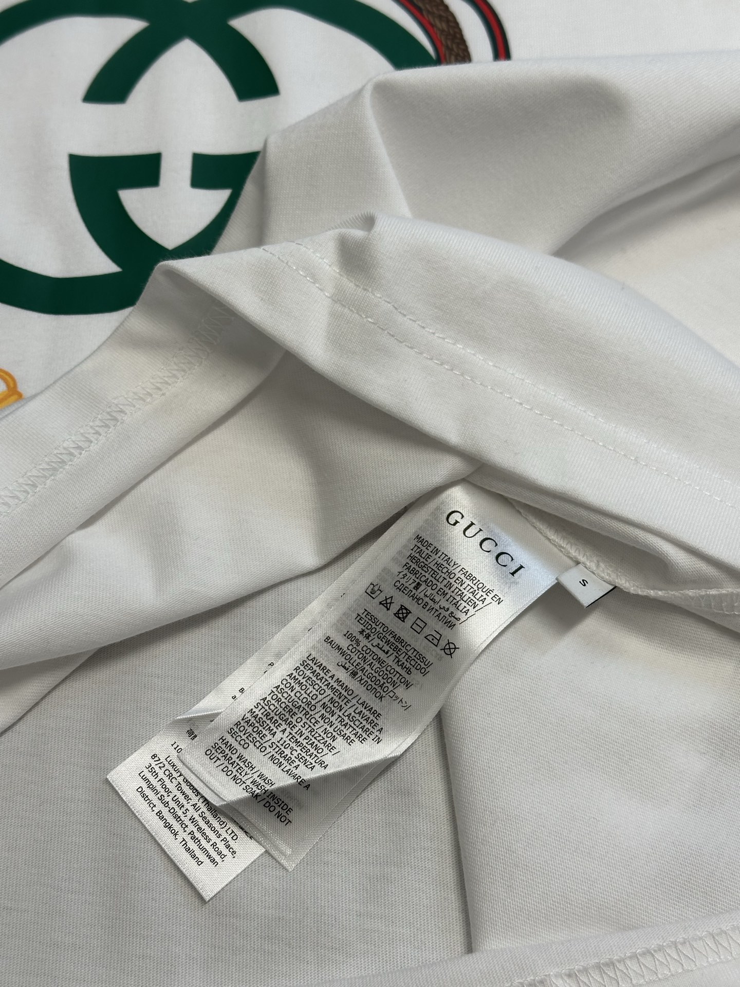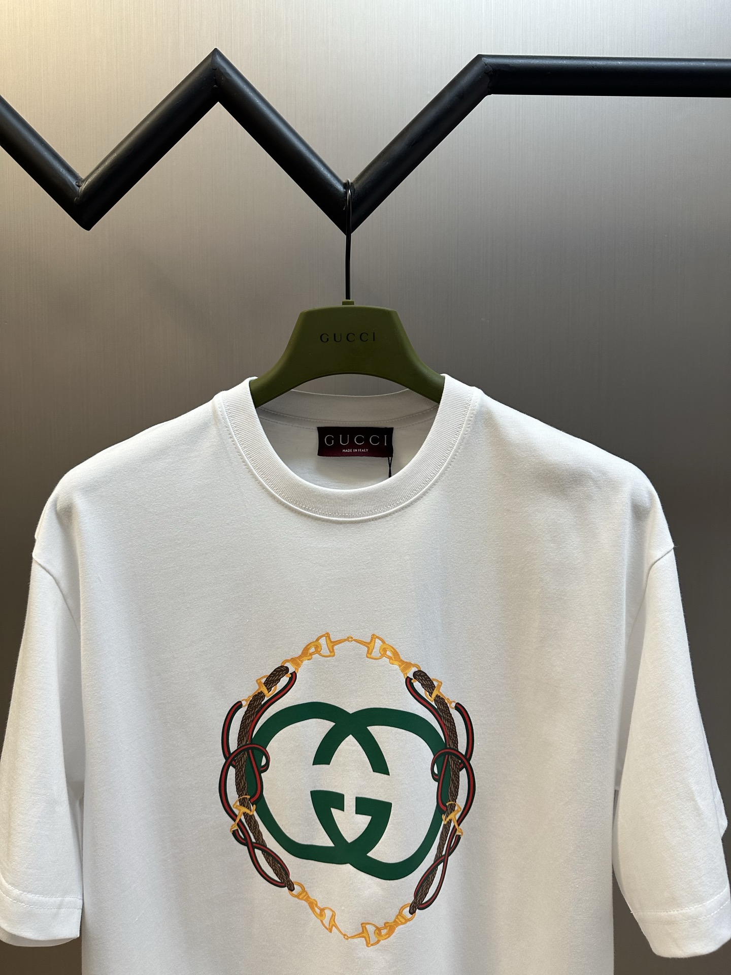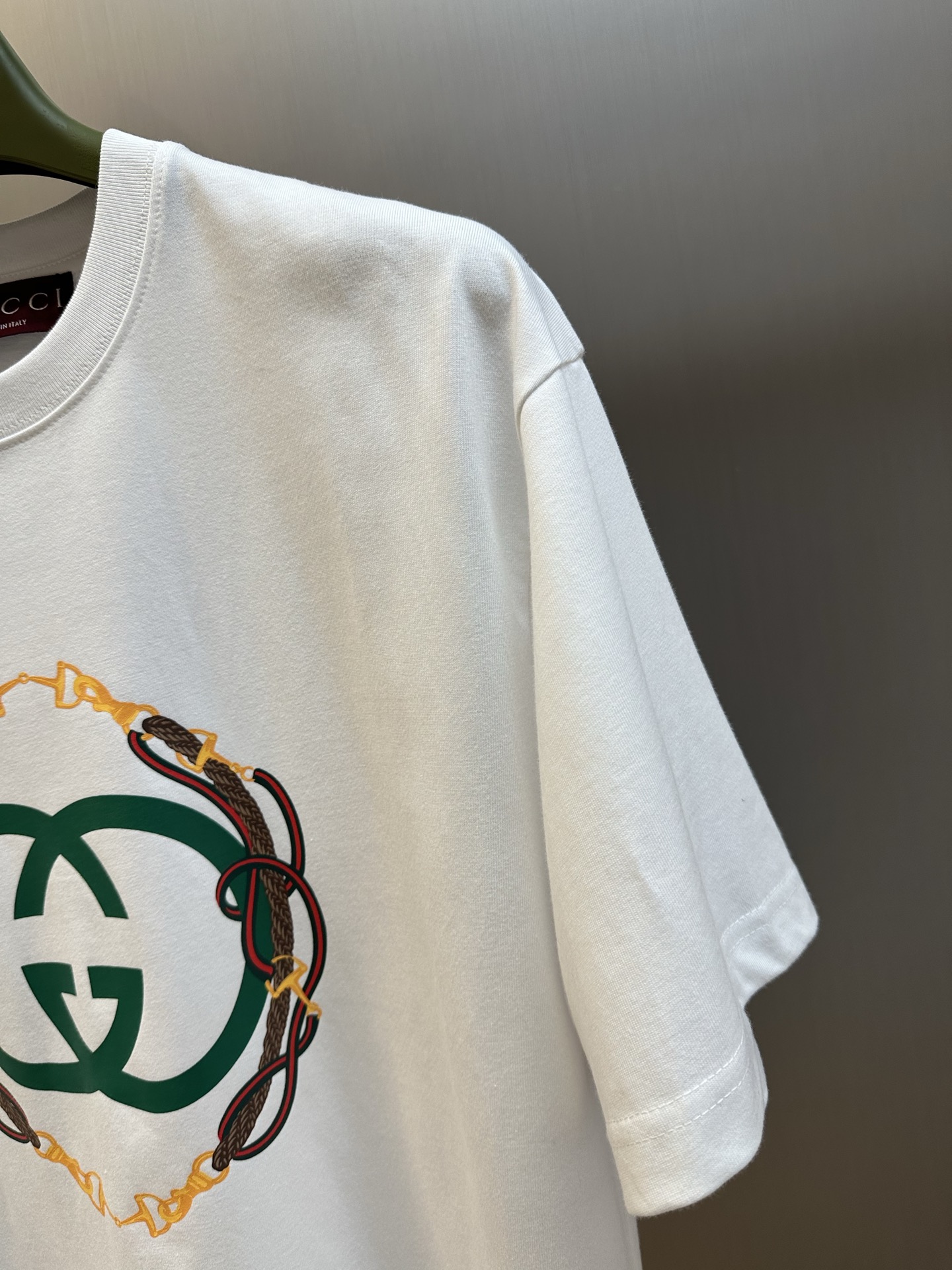 這款衣服是AAAAA 1:1 質量(非常棒). 使用了和原版一模一樣的材料. 商標部分也保持了和古奇/Gucci一樣. 圖片拍攝是實物衣服拍攝, 您所收到的實物保證和我們圖片一模一樣.