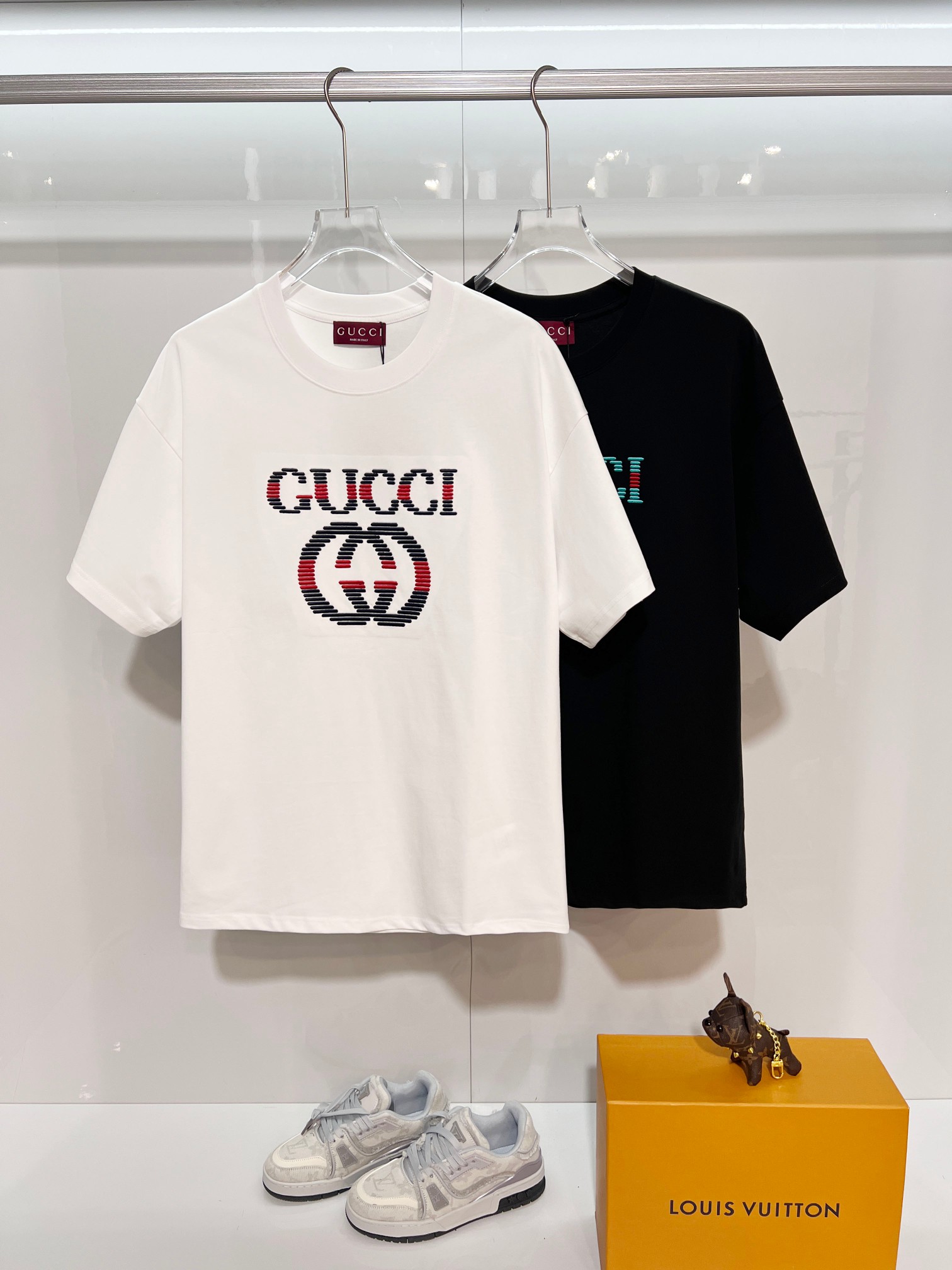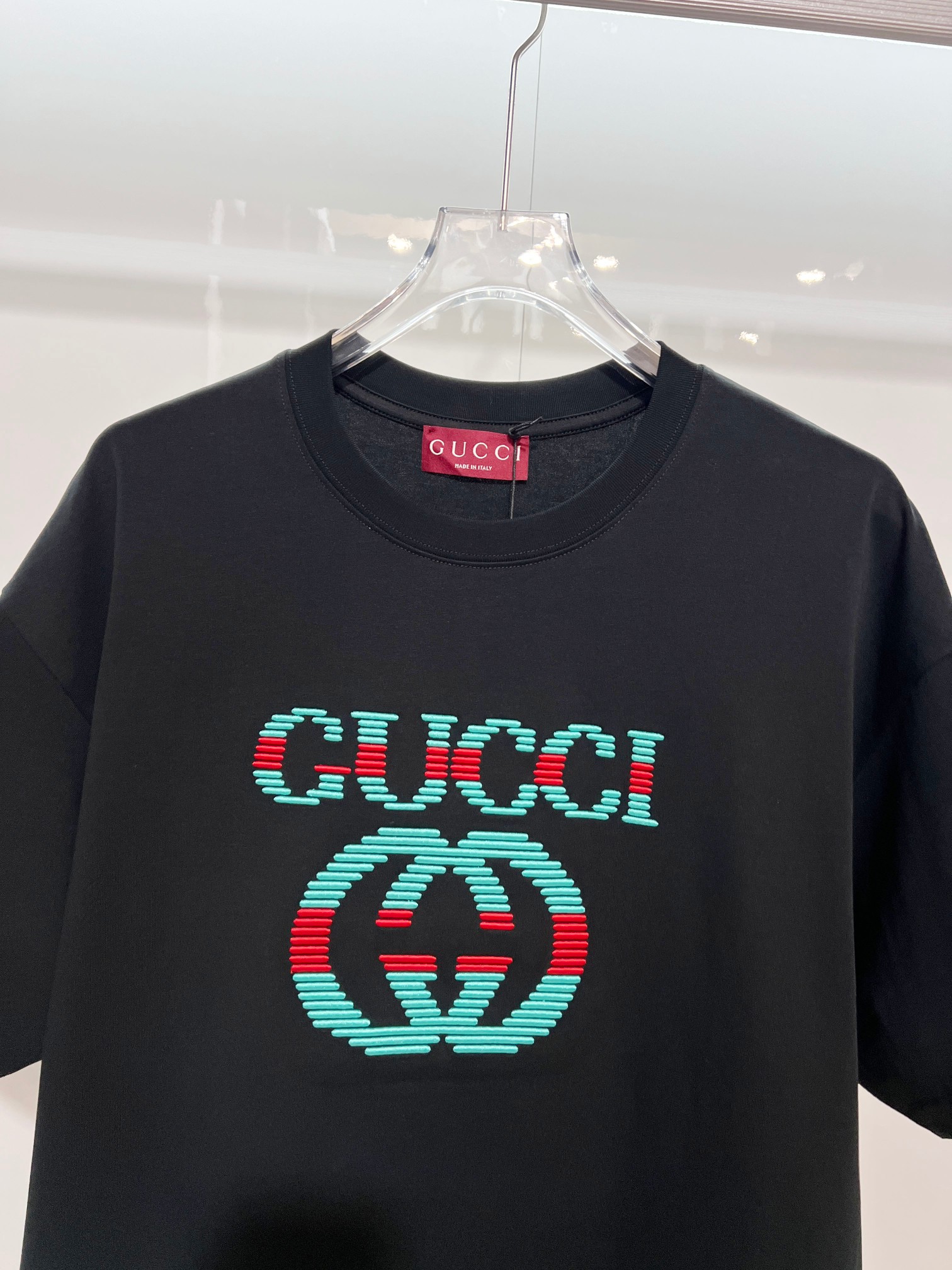 這款衣服是AAAAA 1:1 質量(非常棒). 使用了和原版一模一樣的材料. 商標部分也保持了和古奇/Gucci一樣. 圖片拍攝是實物衣服拍攝, 您所收到的實物保證和我們圖片一模一樣.