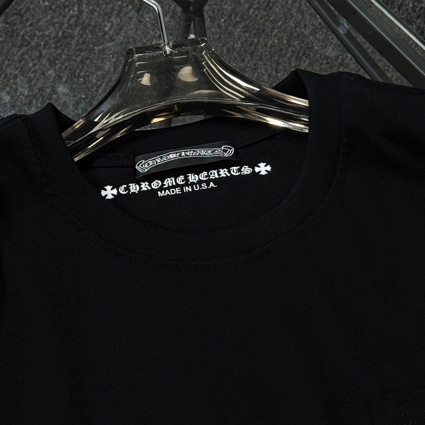 這款衣服是AAAAA 1:1 質量(非常棒). 使用了和原版一模一樣的材料. 商標部分也保持了和鉻心/Chrome Hearts一樣. 圖片拍攝是實物衣服拍攝, 您所收到的實物保證和我們圖片一模一樣.