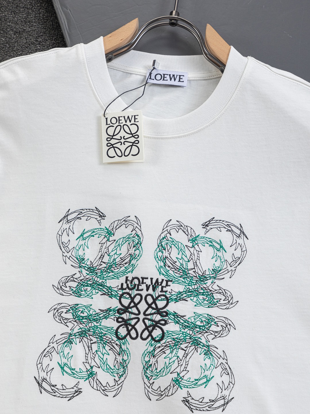 這款衣服是AAAAA 1:1 質量(非常棒). 使用了和原版一模一樣的材料. 商標部分也保持了和Loewe一樣. 圖片拍攝是實物衣服拍攝, 您所收到的實物保證和我們圖片一模一樣.