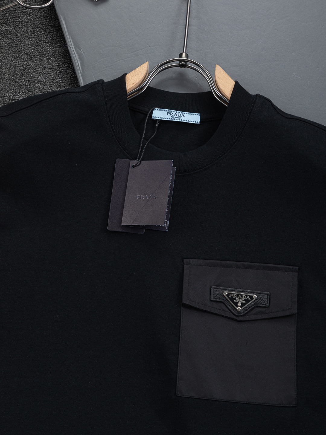 這款衣服是AAAAA 1:1 質量(非常棒). 使用了和原版一模一樣的材料. 商標部分也保持了和普拉達/Prada一樣. 圖片拍攝是實物衣服拍攝, 您所收到的實物保證和我們圖片一模一樣.