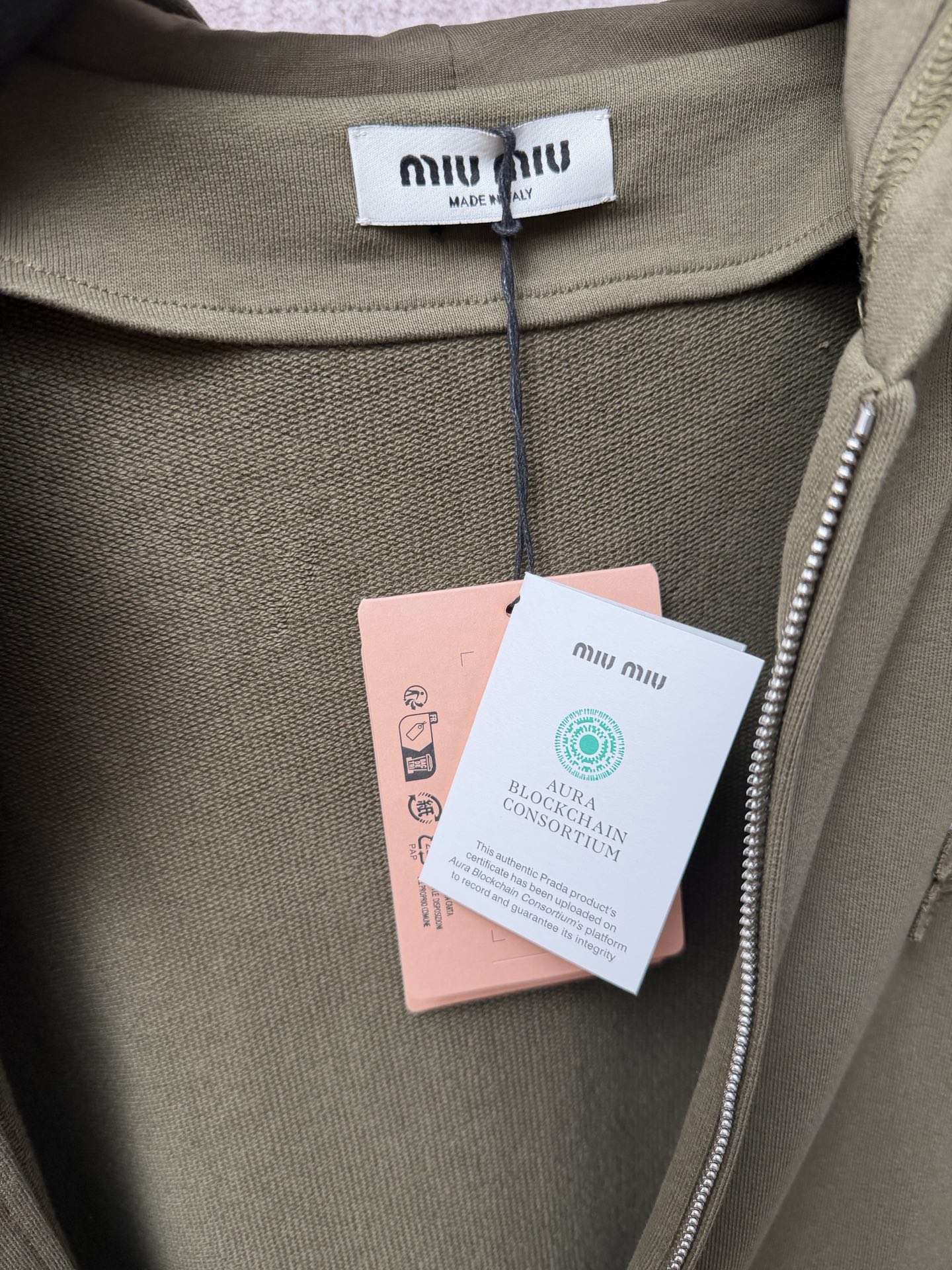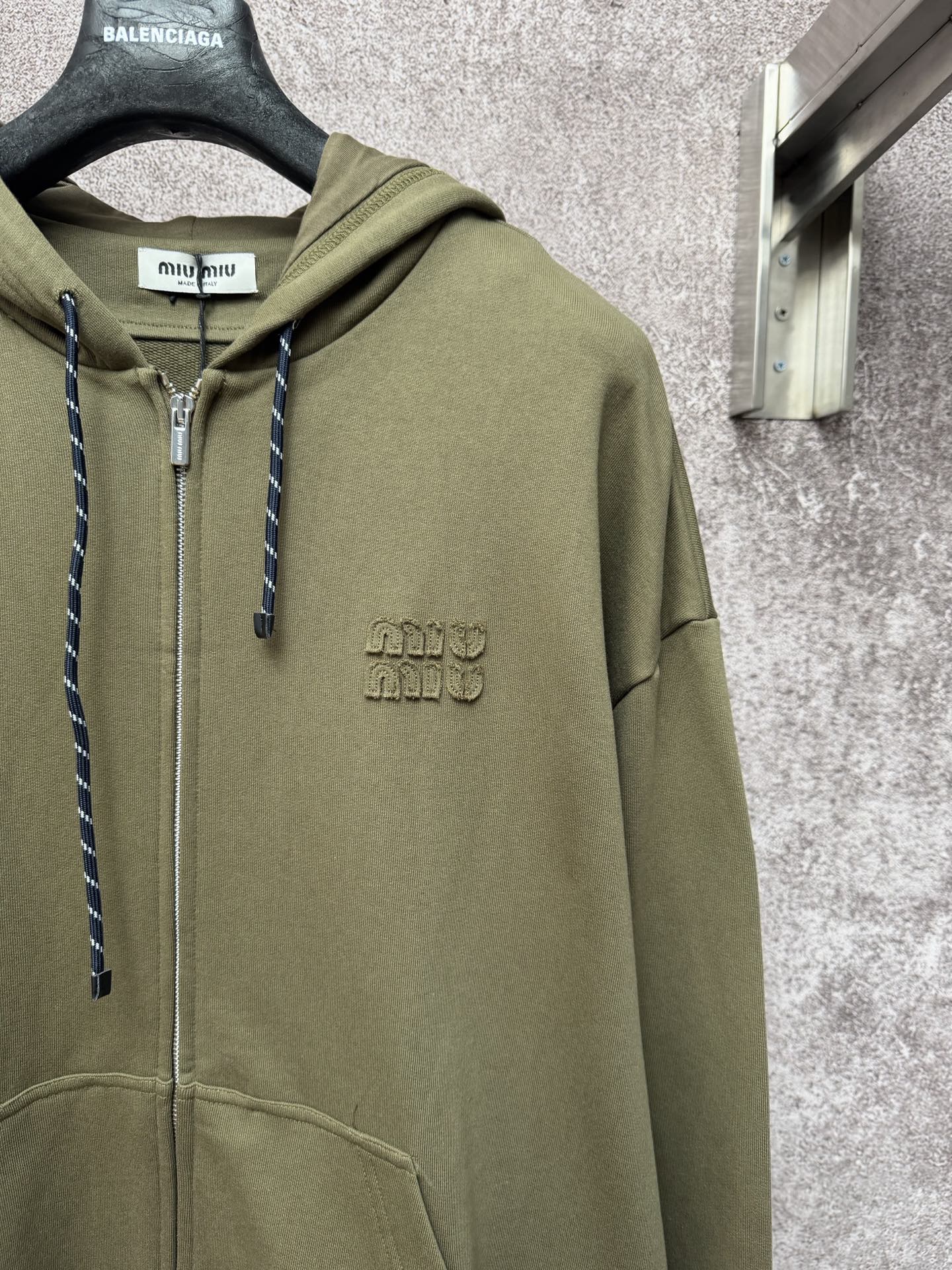 這款衣服是AAAAA 1:1 質量(非常棒). 使用了和原版一模一樣的材料. 商標部分也保持了和繆繆/Miu Miu一樣. 圖片拍攝是實物衣服拍攝, 您所收到的實物保證和我們圖片一模一樣.