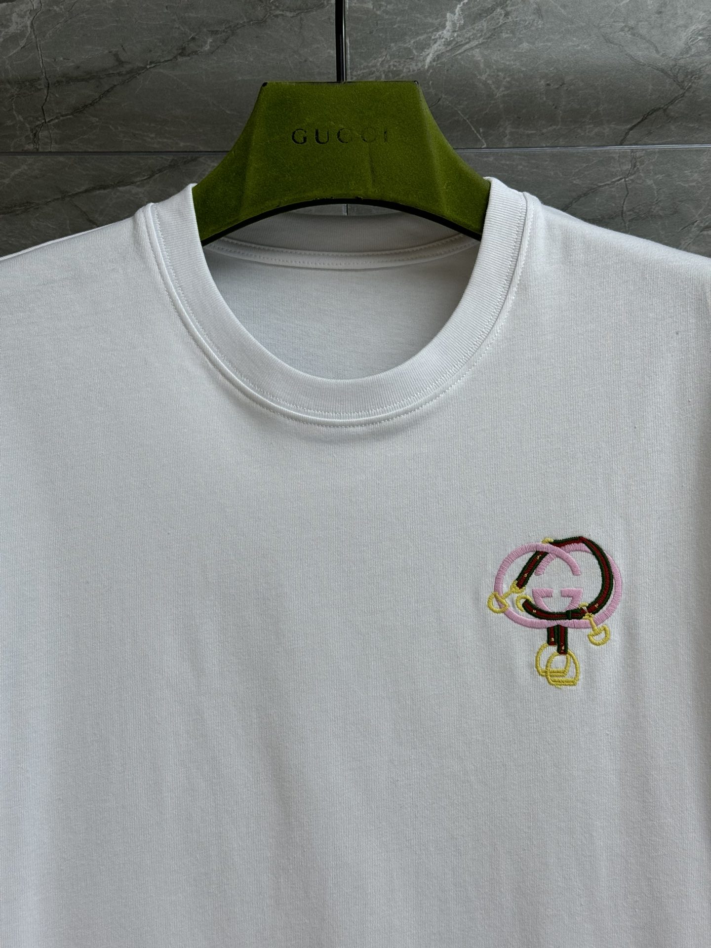 這款衣服是AAAAA 1:1 質量(非常棒). 使用了和原版一模一樣的材料. 商標部分也保持了和古奇/Gucci一樣. 圖片拍攝是實物衣服拍攝, 您所收到的實物保證和我們圖片一模一樣.