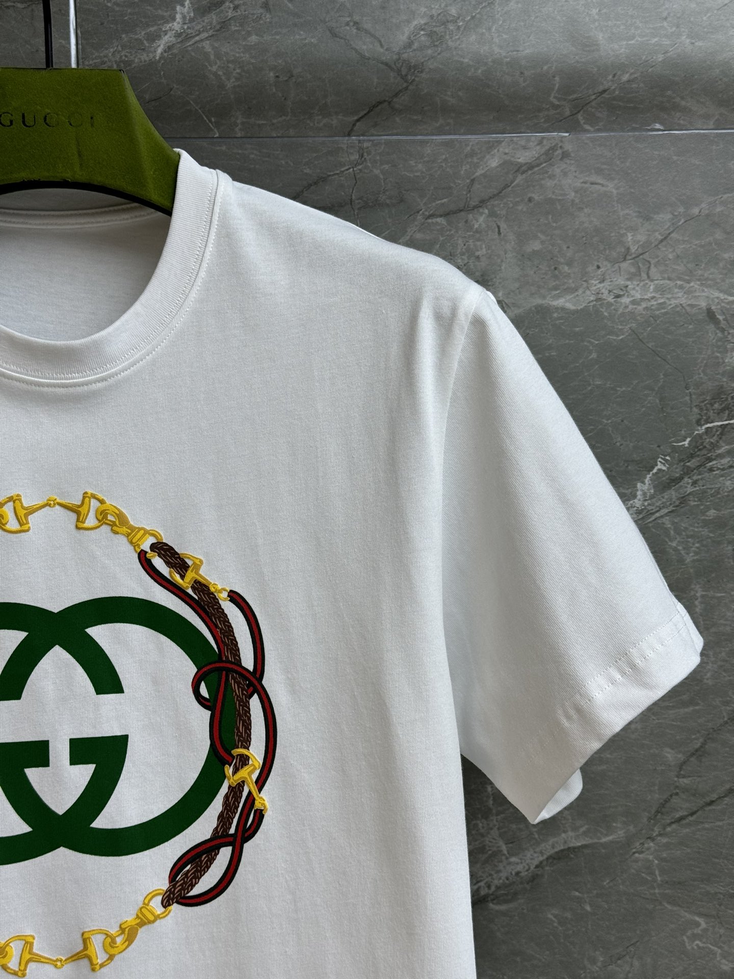 這款衣服是AAAAA 1:1 質量(非常棒). 使用了和原版一模一樣的材料. 商標部分也保持了和古奇/Gucci一樣. 圖片拍攝是實物衣服拍攝, 您所收到的實物保證和我們圖片一模一樣.