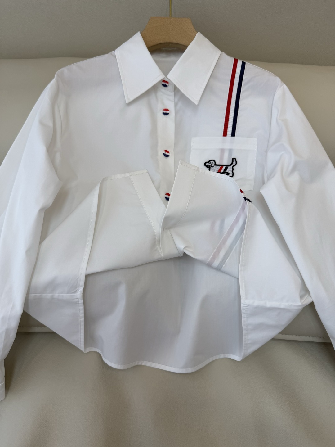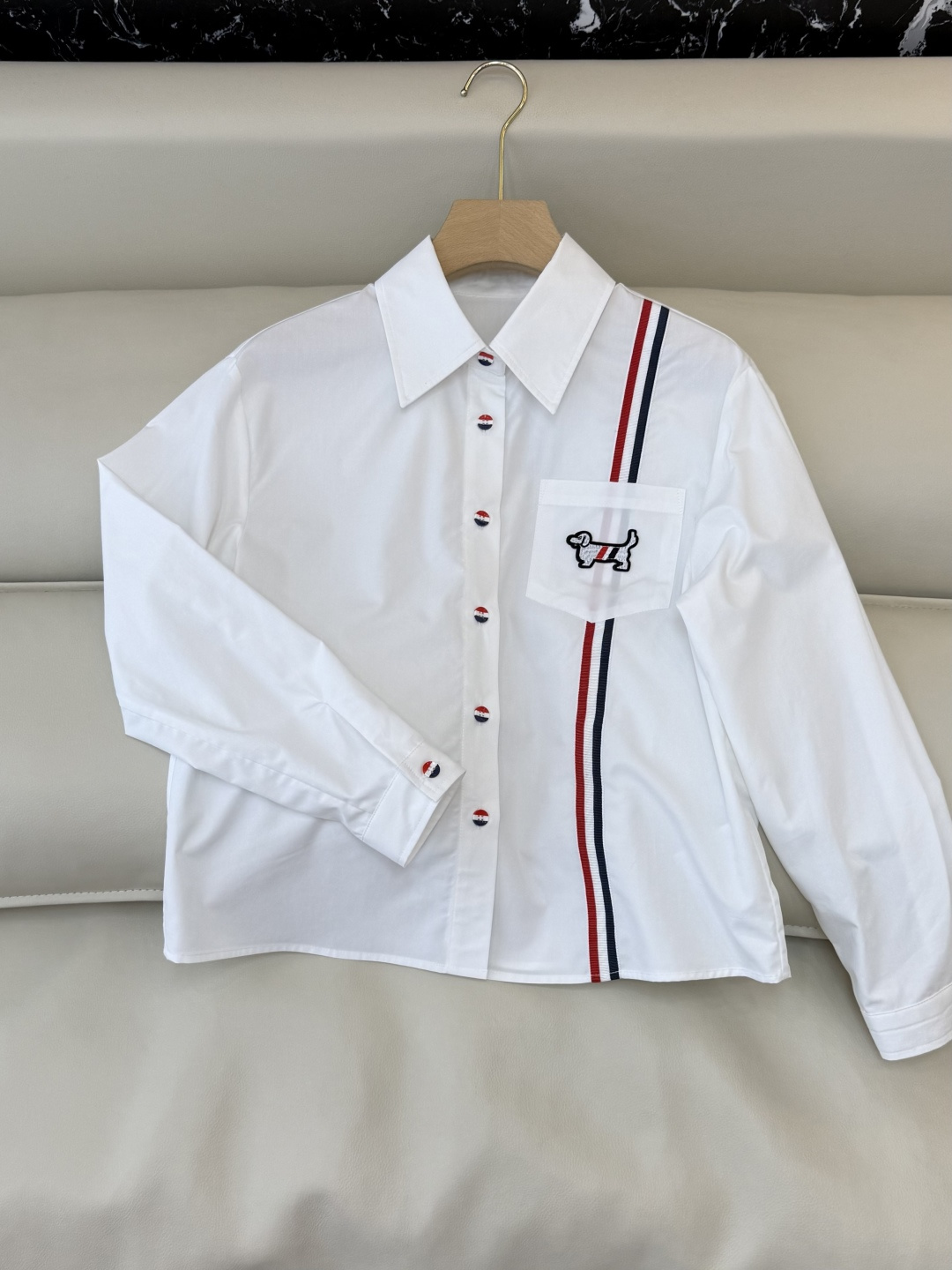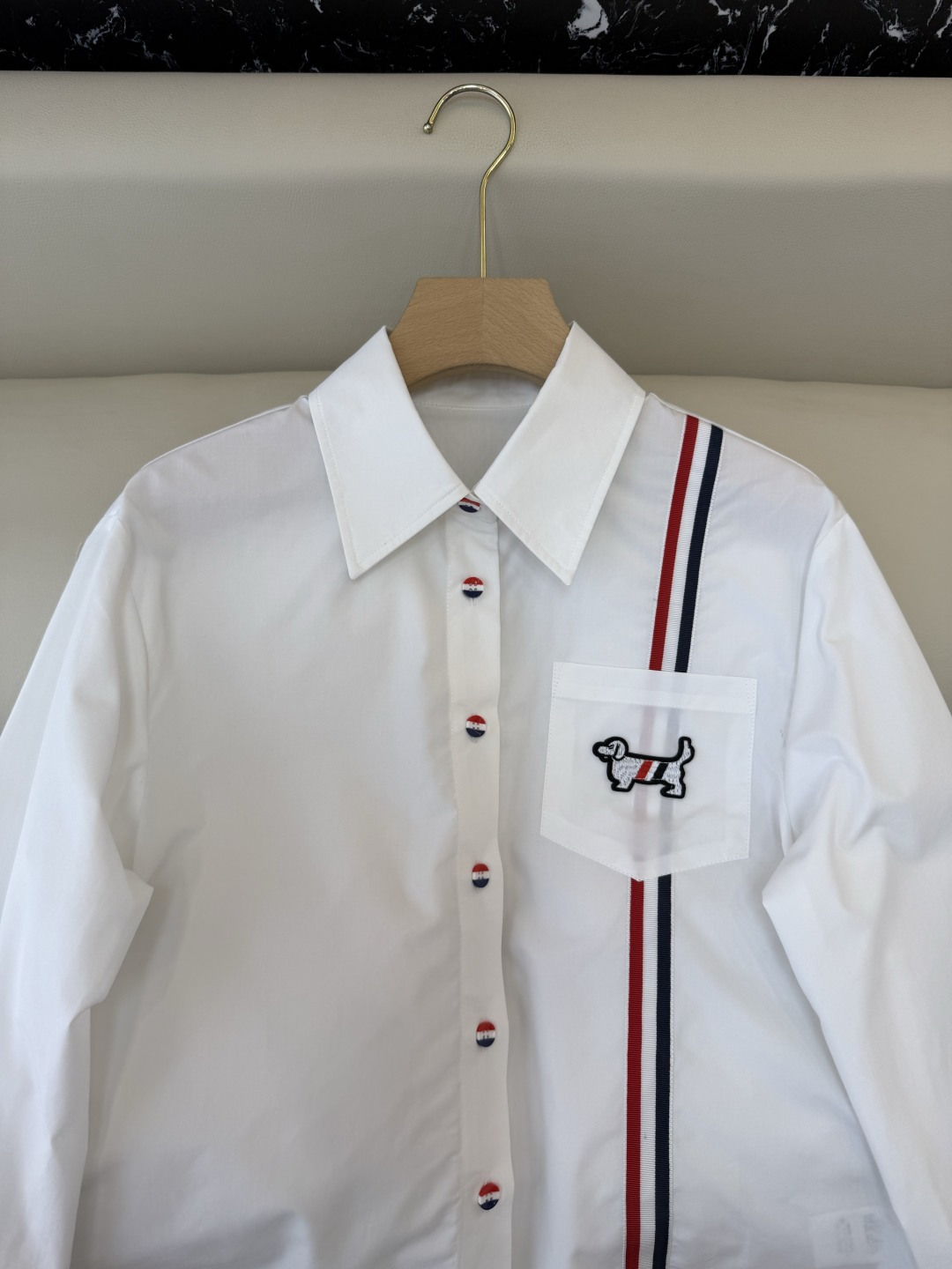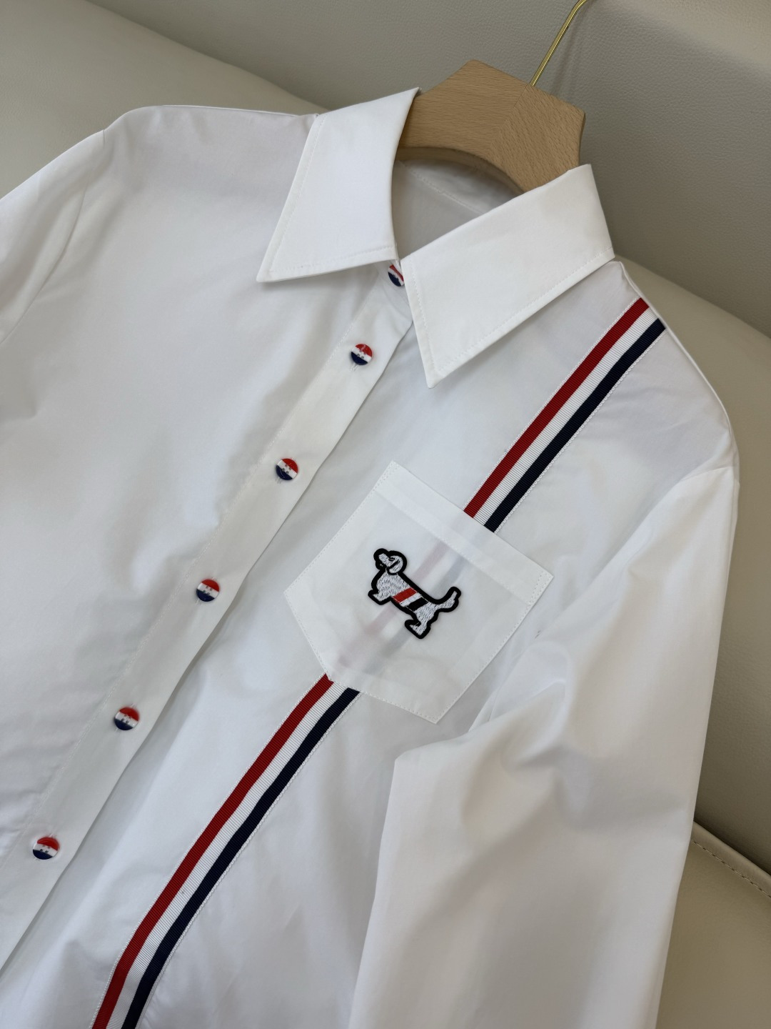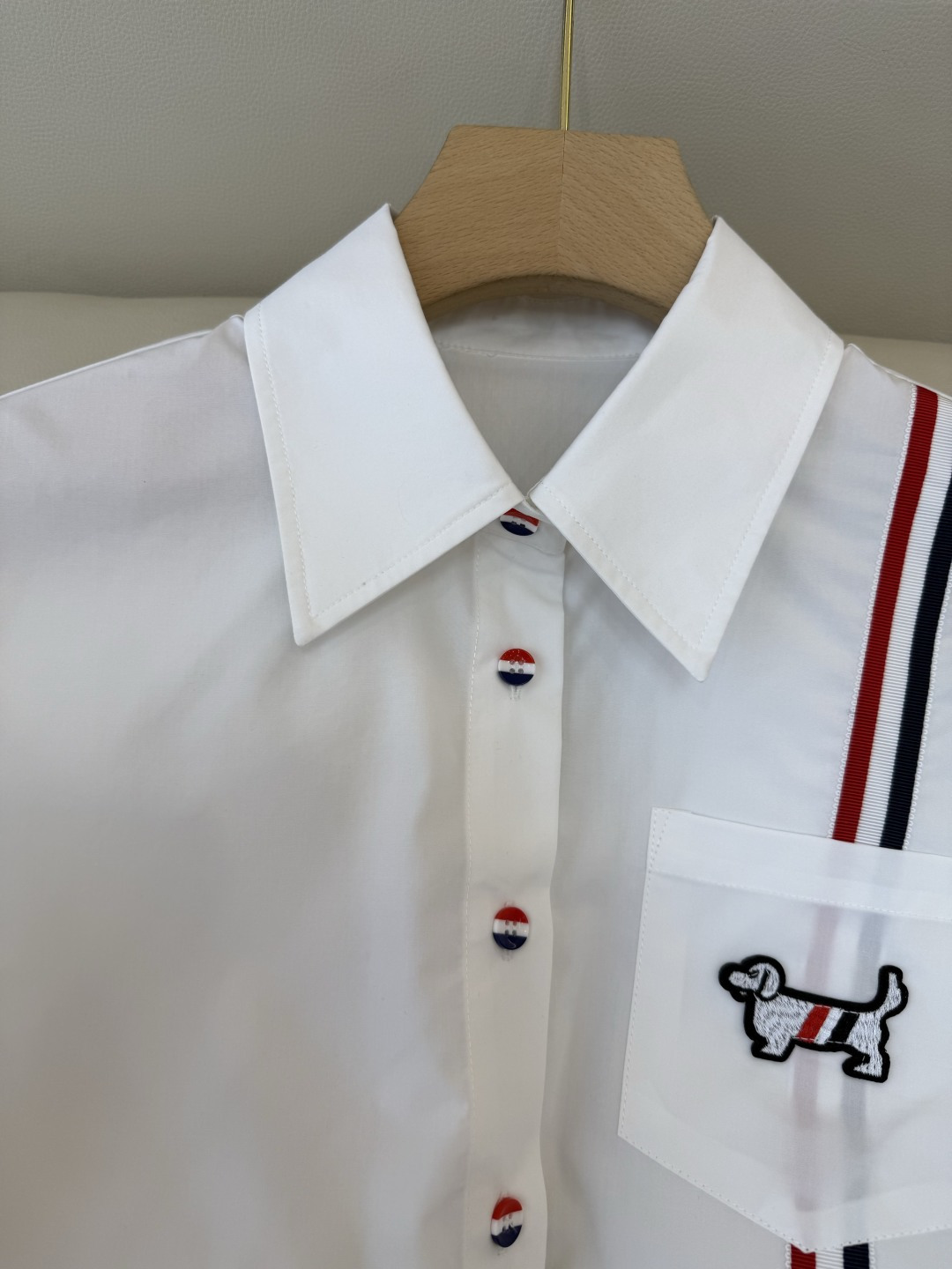 這款衣服是AAAAA 1:1 質量(非常棒). 使用了和原版一模一樣的材料. 商標部分也保持了和湯姆布朗/Thom Browne一樣. 圖片拍攝是實物衣服拍攝, 您所收到的實物保證和我們圖片一模一樣.