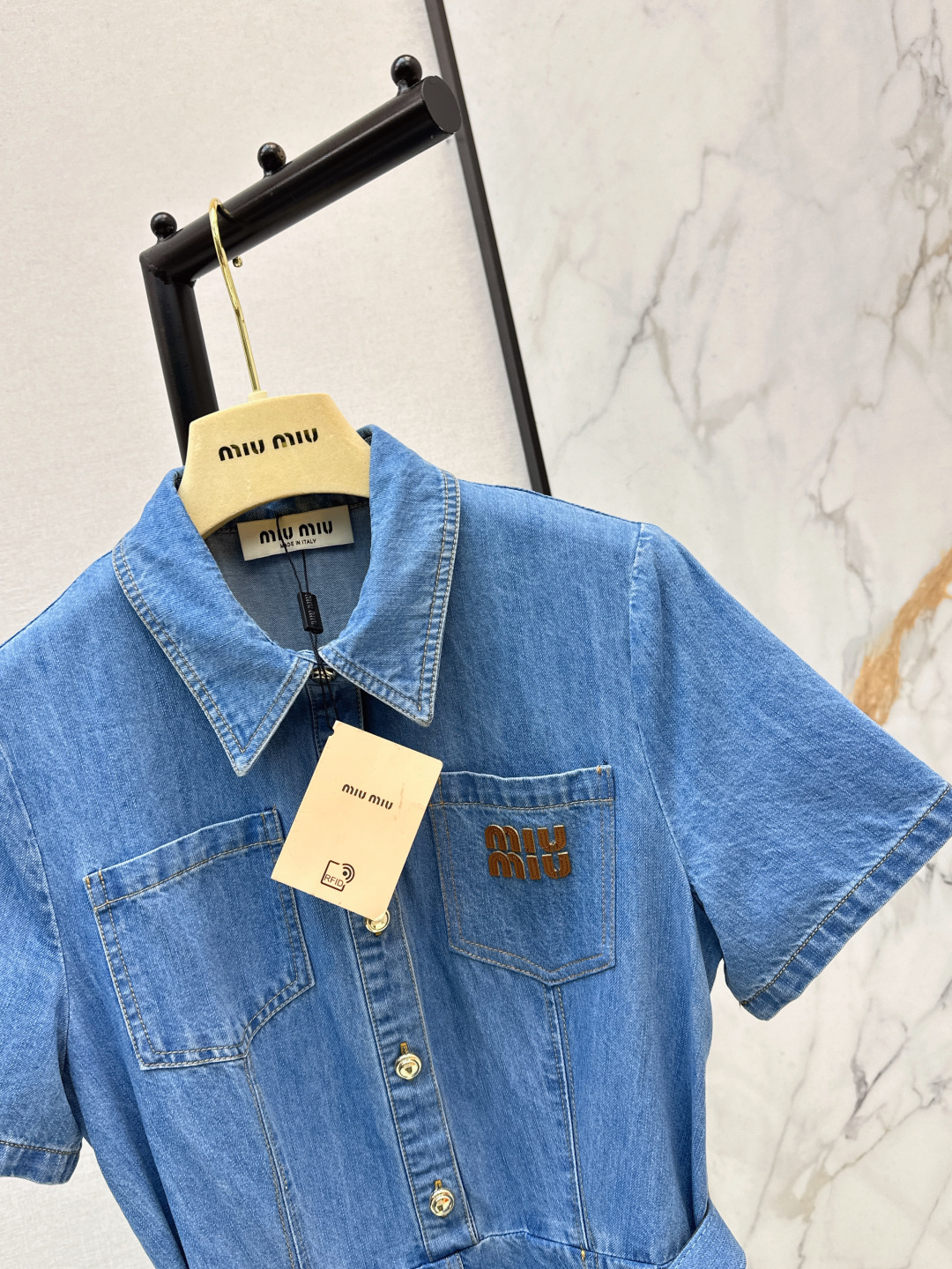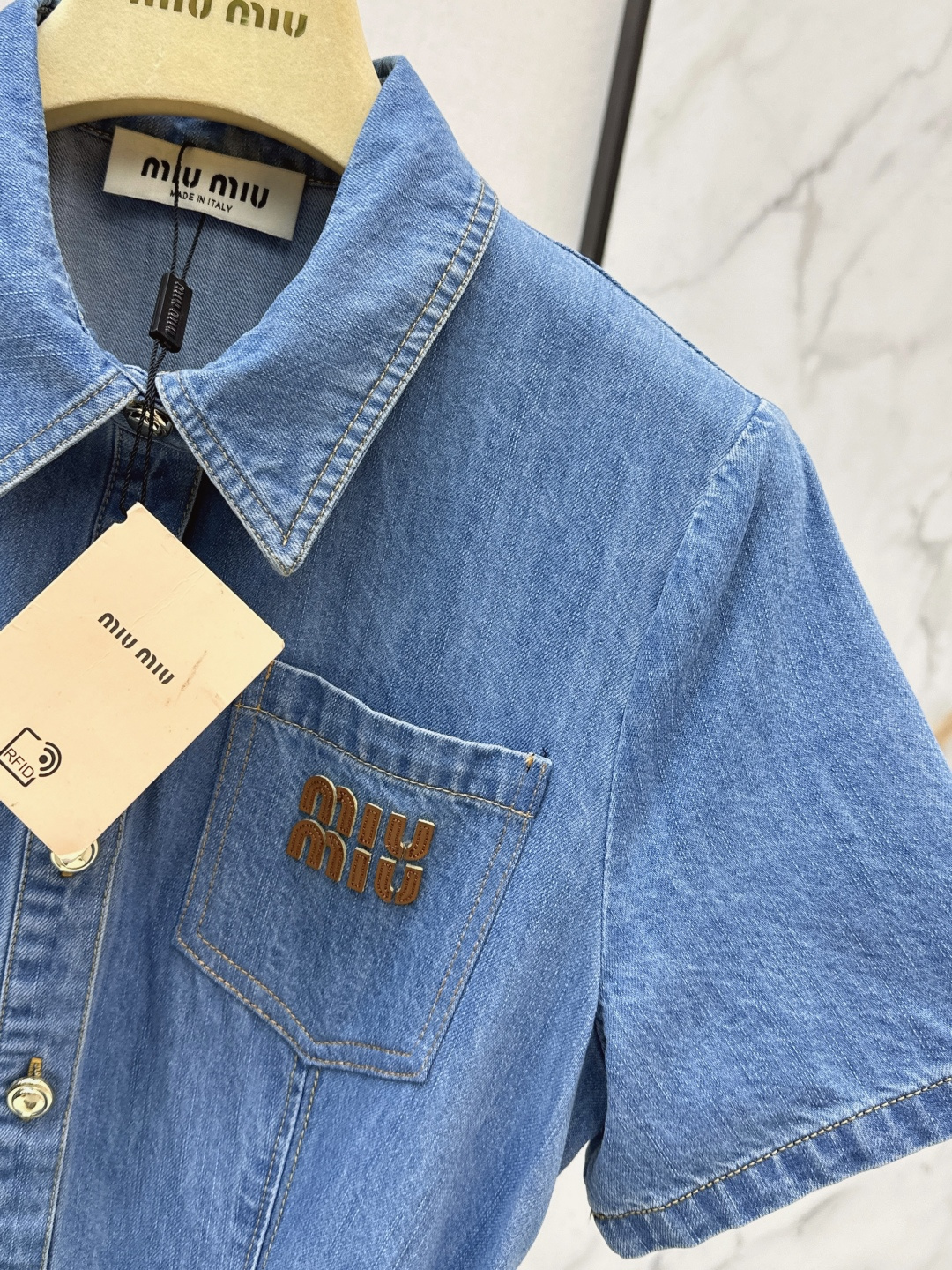 這款衣服是AAAAA 1:1 質量(非常棒). 使用了和原版一模一樣的材料. 商標部分也保持了和繆繆/Miu Miu一樣. 圖片拍攝是實物衣服拍攝, 您所收到的實物保證和我們圖片一模一樣.
