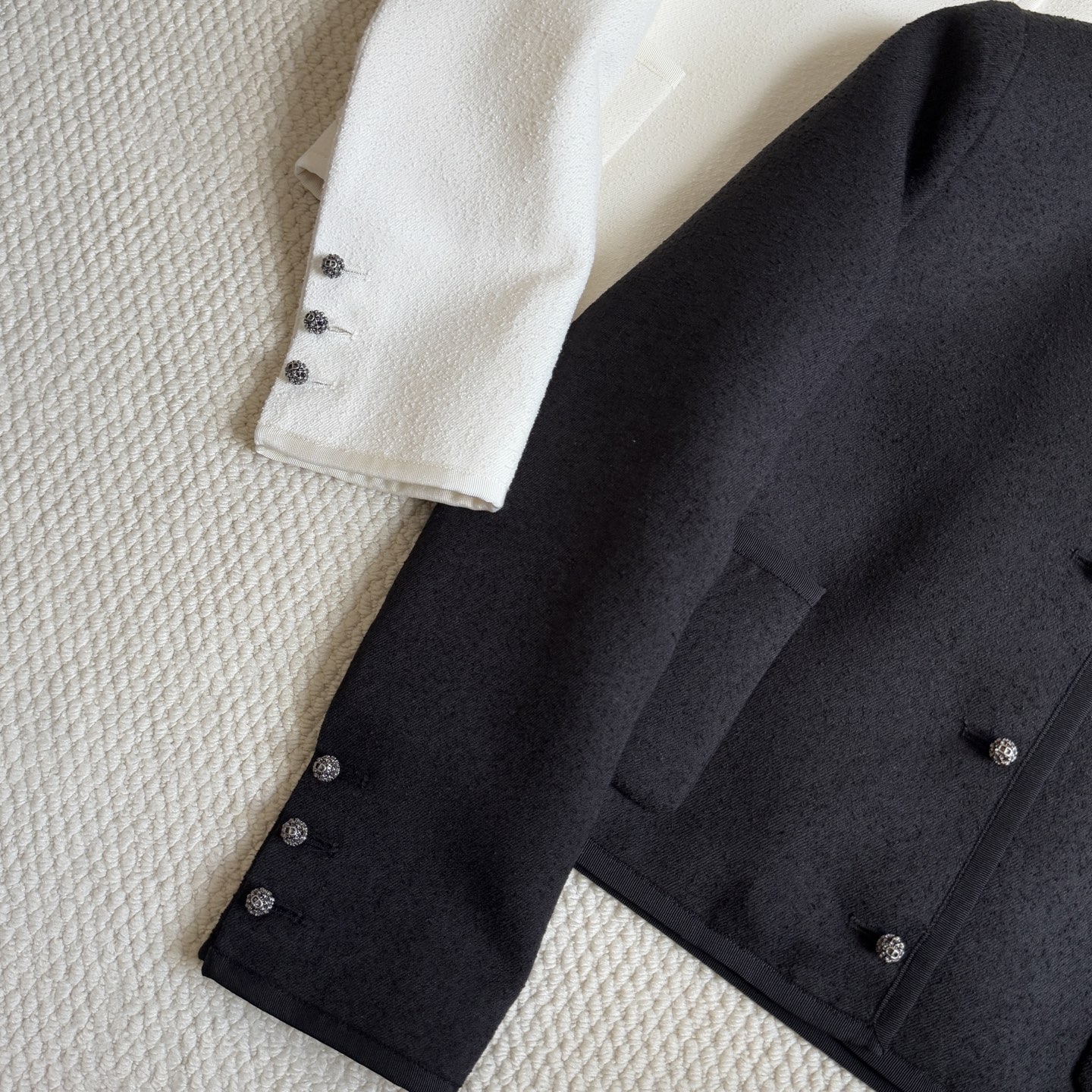 這款衣服是AAAAA 1:1 質量(非常棒). 使用了和原版一模一樣的材料. 商標部分也保持了和香奈兒/Chanel一樣. 圖片拍攝是實物衣服拍攝, 您所收到的實物保證和我們圖片一模一樣.