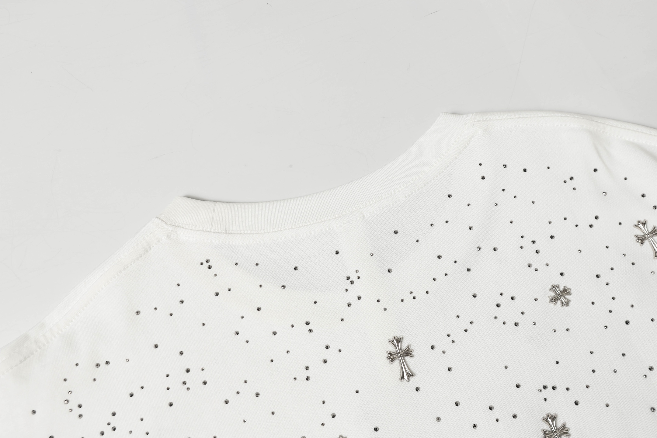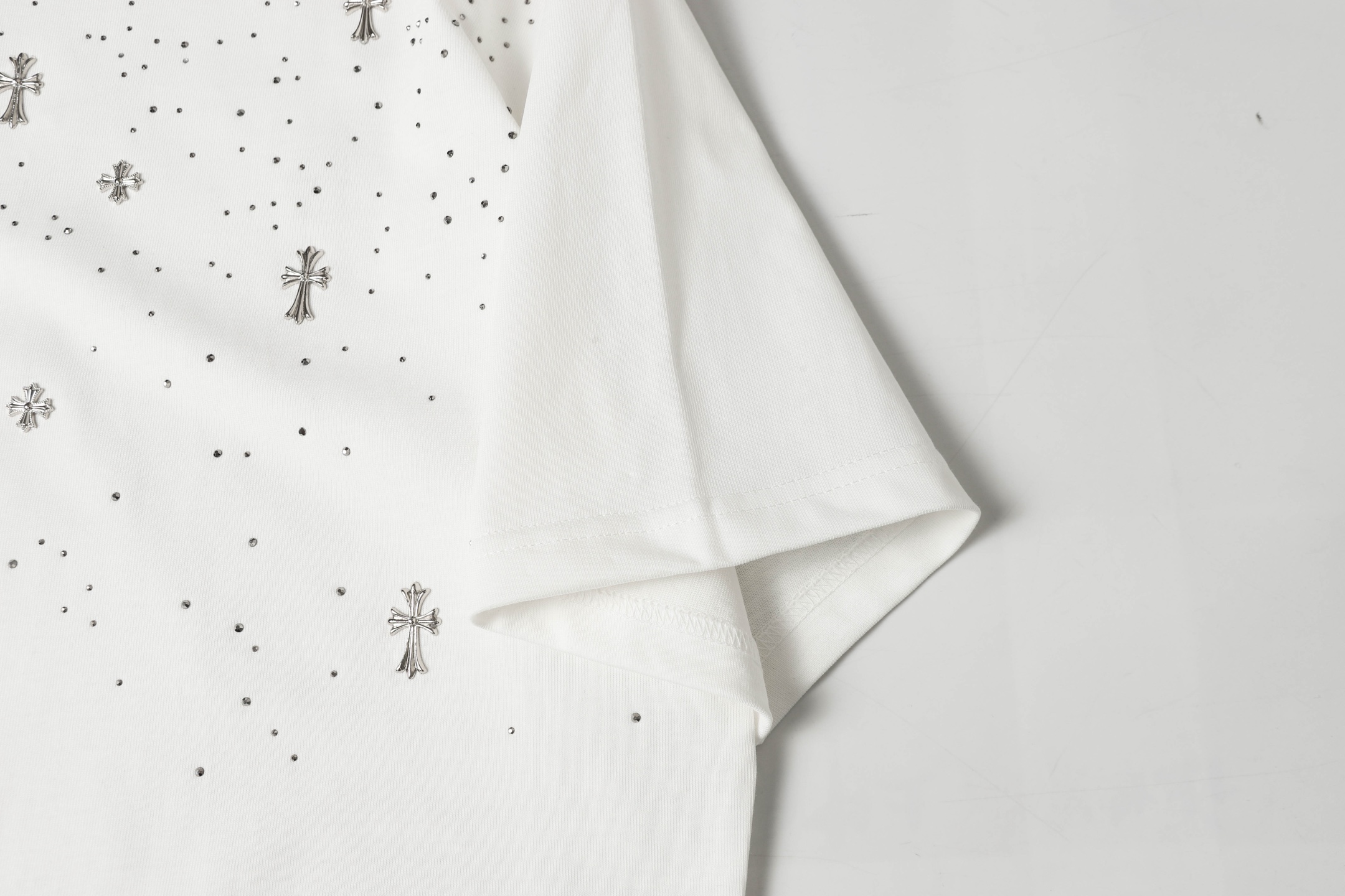 這款衣服是AAAAA 1:1 質量(非常棒). 使用了和原版一模一樣的材料. 商標部分也保持了和鉻心/Chrome Hearts一樣. 圖片拍攝是實物衣服拍攝, 您所收到的實物保證和我們圖片一模一樣.