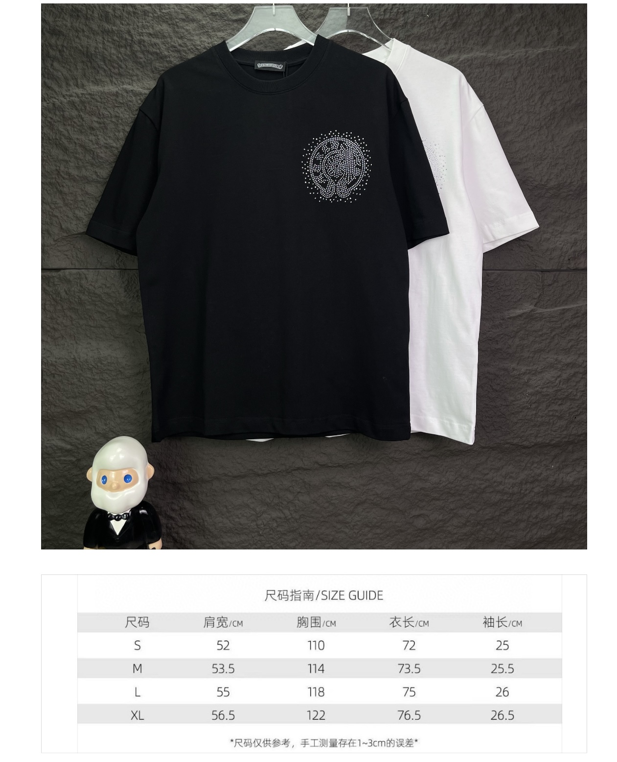 這款衣服是AAAAA 1:1 質量(非常棒). 使用了和原版一模一樣的材料. 商標部分也保持了和鉻心/Chrome Hearts一樣. 圖片拍攝是實物衣服拍攝, 您所收到的實物保證和我們圖片一模一樣.