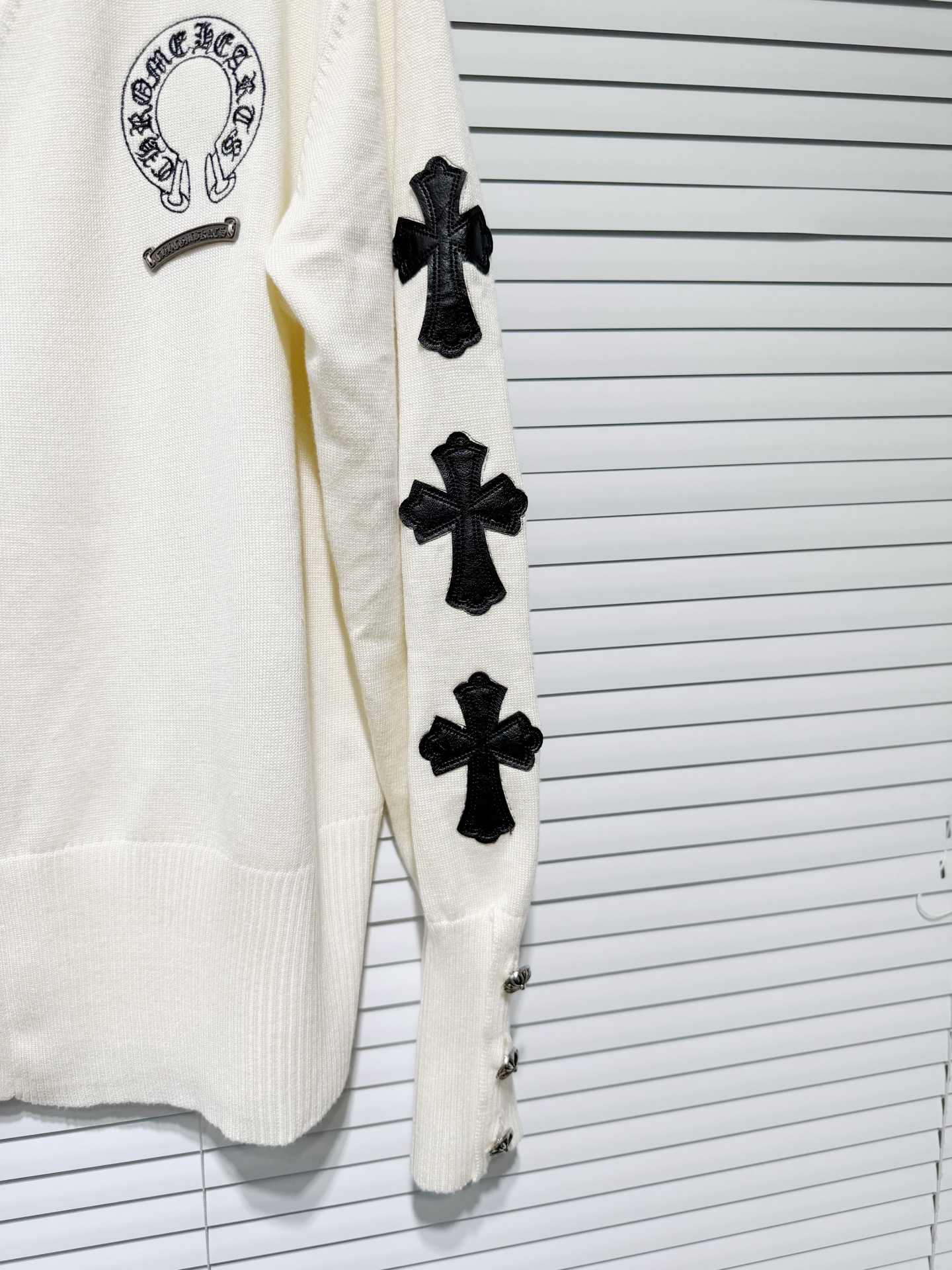這款衣服是AAAAA 1:1 質量(非常棒). 使用了和原版一模一樣的材料. 商標部分也保持了和鉻心/Chrome Hearts一樣. 圖片拍攝是實物衣服拍攝, 您所收到的實物保證和我們圖片一模一樣.