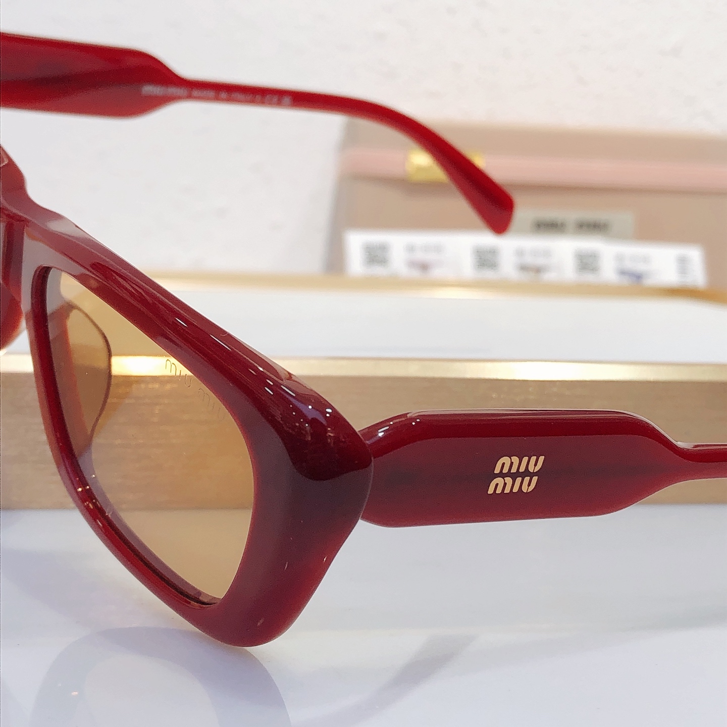 這款太陽眼鏡是AAAAA 1:1 質量(非常棒). 使用了和原版一模一樣的材料. 商標部分也保持了和繆繆/Miu Miu一樣. 圖片拍攝是實物太陽眼鏡拍攝, 您所收到的實物保證和我們圖片一模一樣.