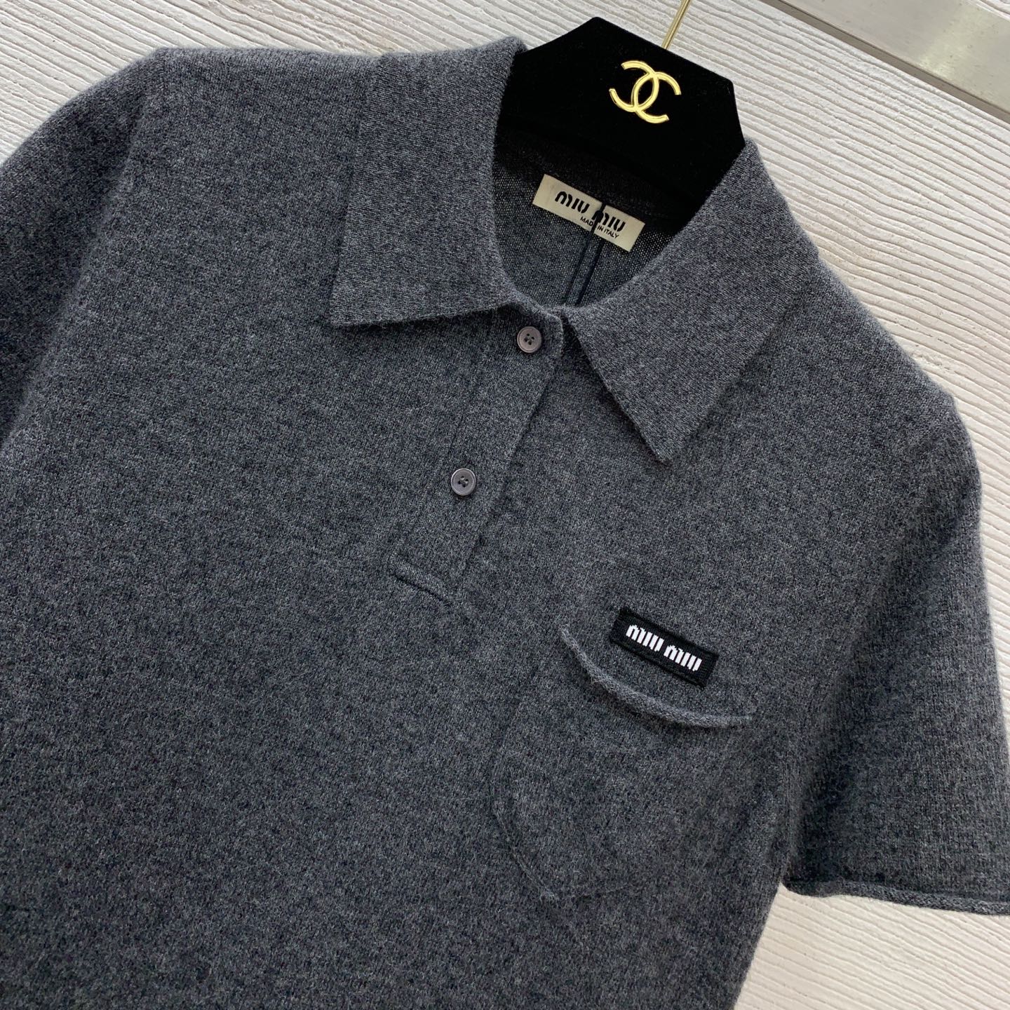 這款衣服是AAAAA 1:1 質量(非常棒). 使用了和原版一模一樣的材料. 商標部分也保持了和繆繆/Miu Miu一樣. 圖片拍攝是實物衣服拍攝, 您所收到的實物保證和我們圖片一模一樣.