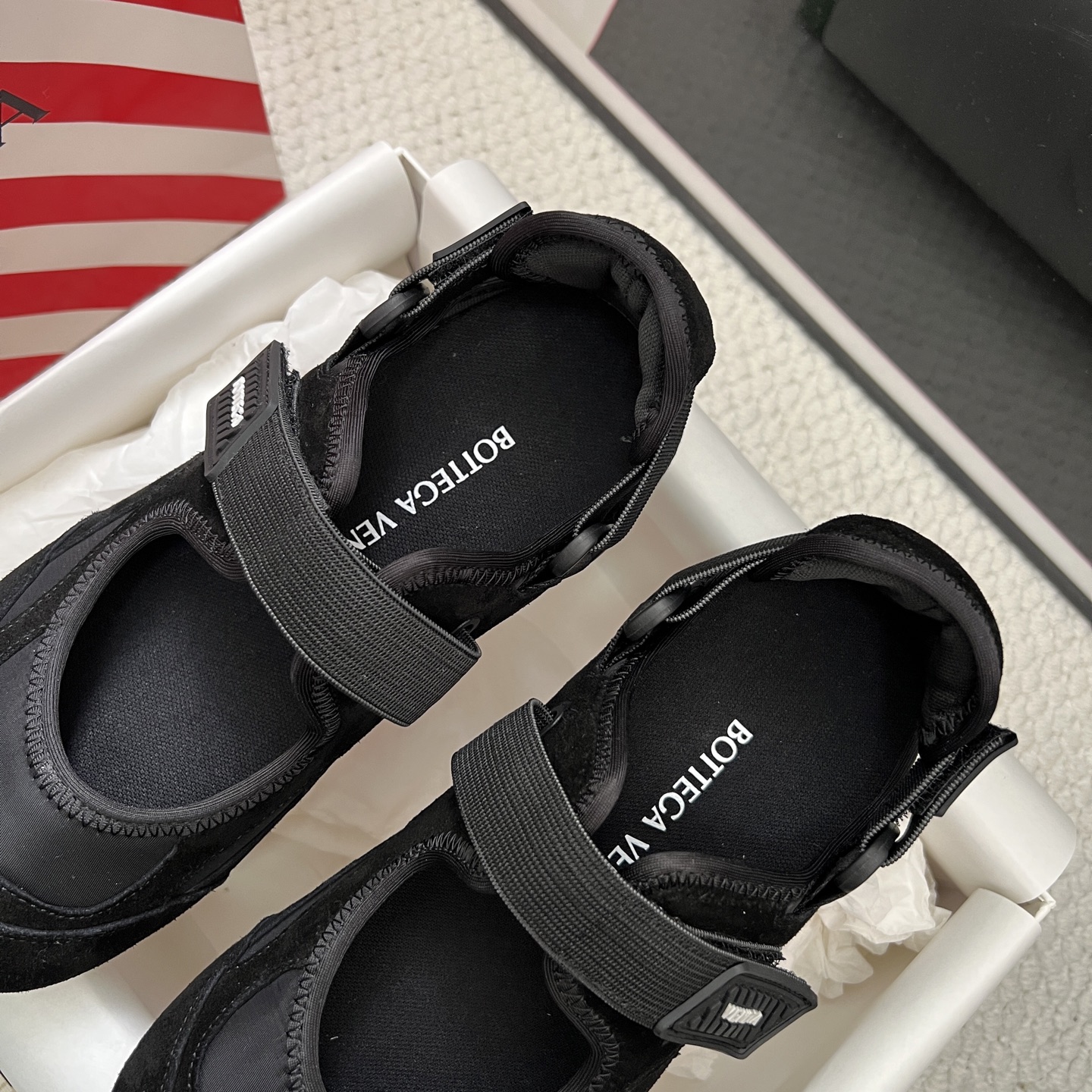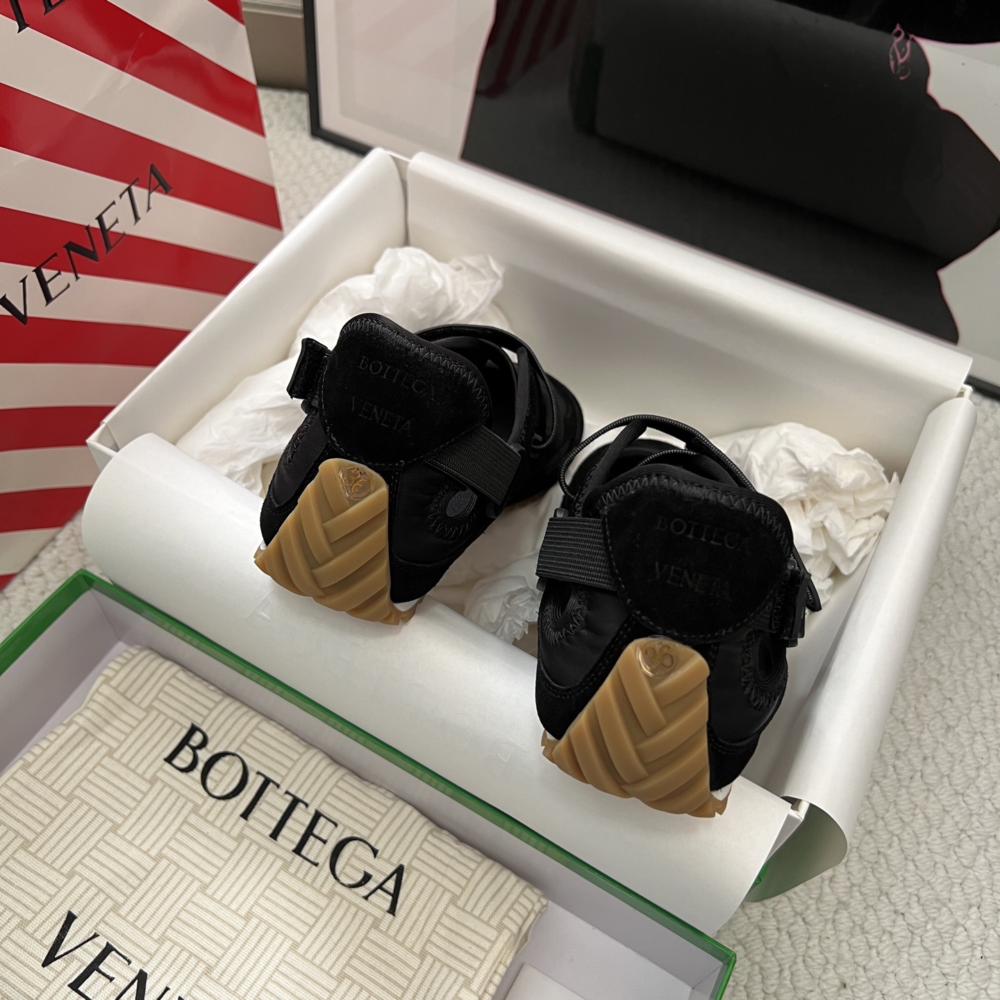 這款鞋子是AAAAA 1:1 質量(非常棒). 使用了和原版一模一樣的材料. 商標部分也保持了和葆蝶家/Bottega Veneta一樣. 圖片拍攝是實物鞋子拍攝, 您所收到的實物保證和我們圖片一模一樣.