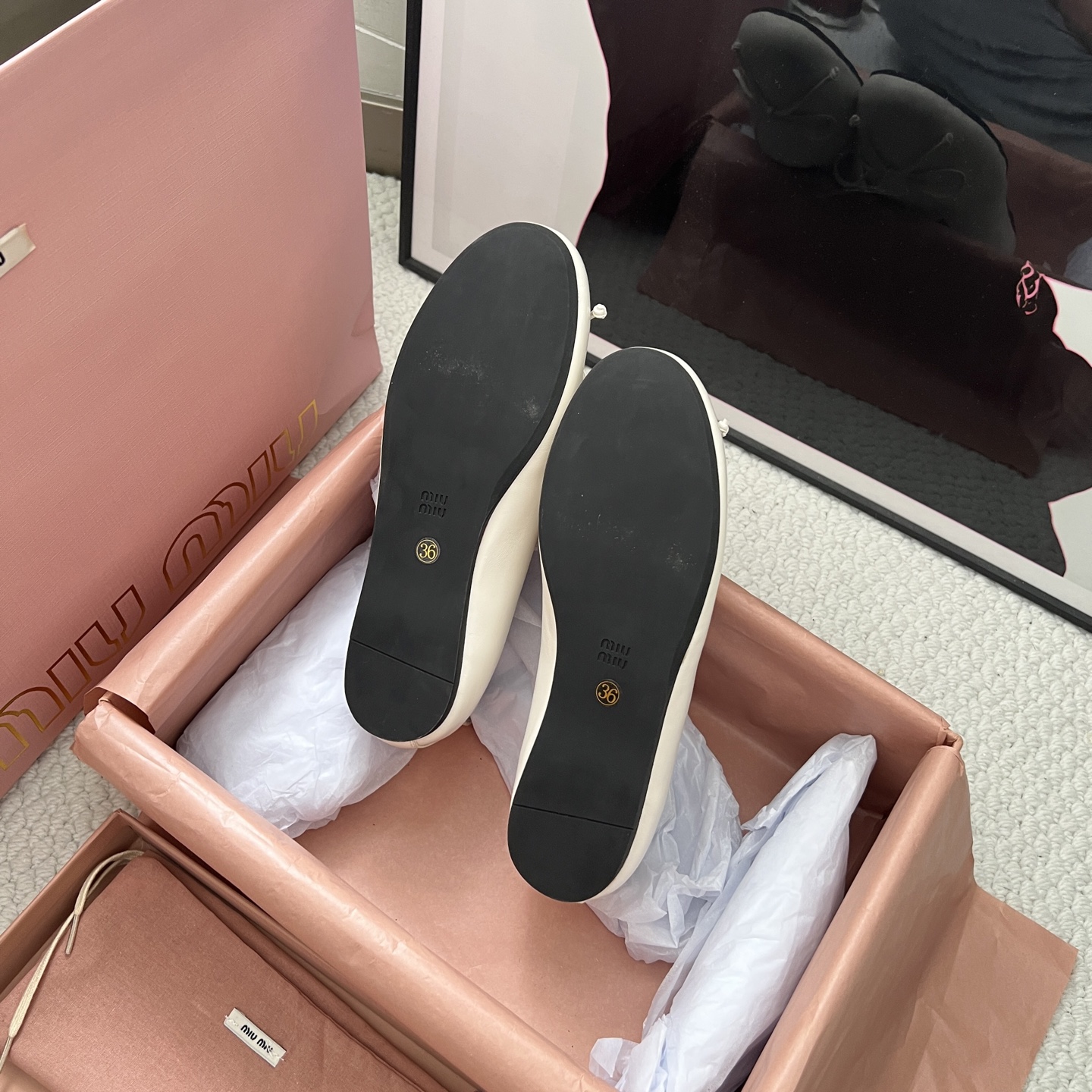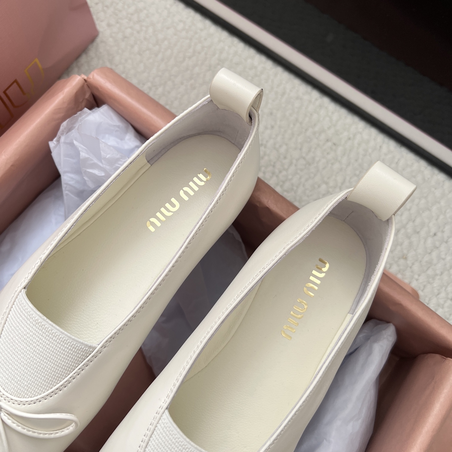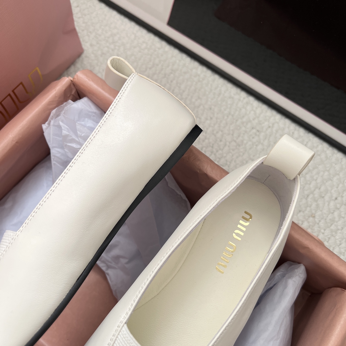 這款鞋子是AAAAA 1:1 質量(非常棒). 使用了和原版一模一樣的材料. 商標部分也保持了和繆繆/Miu Miu一樣. 圖片拍攝是實物鞋子拍攝, 您所收到的實物保證和我們圖片一模一樣.