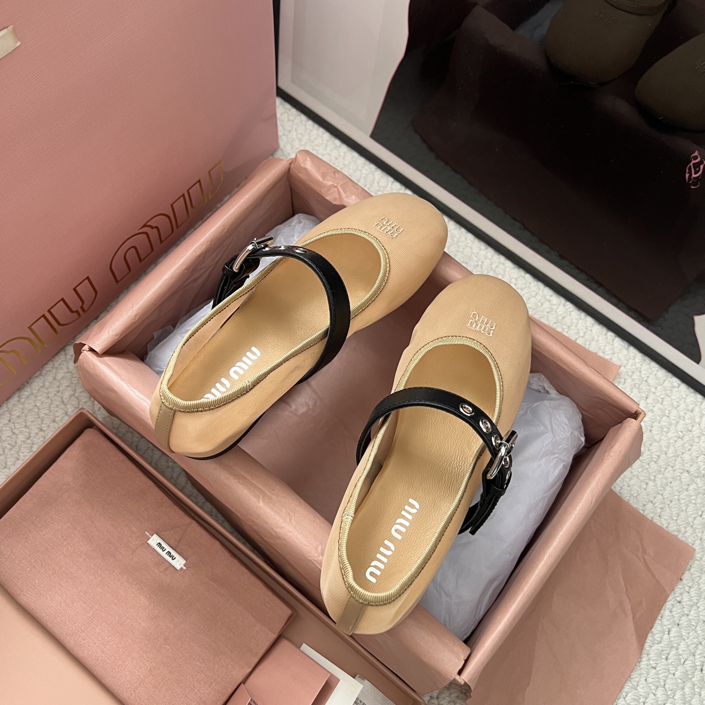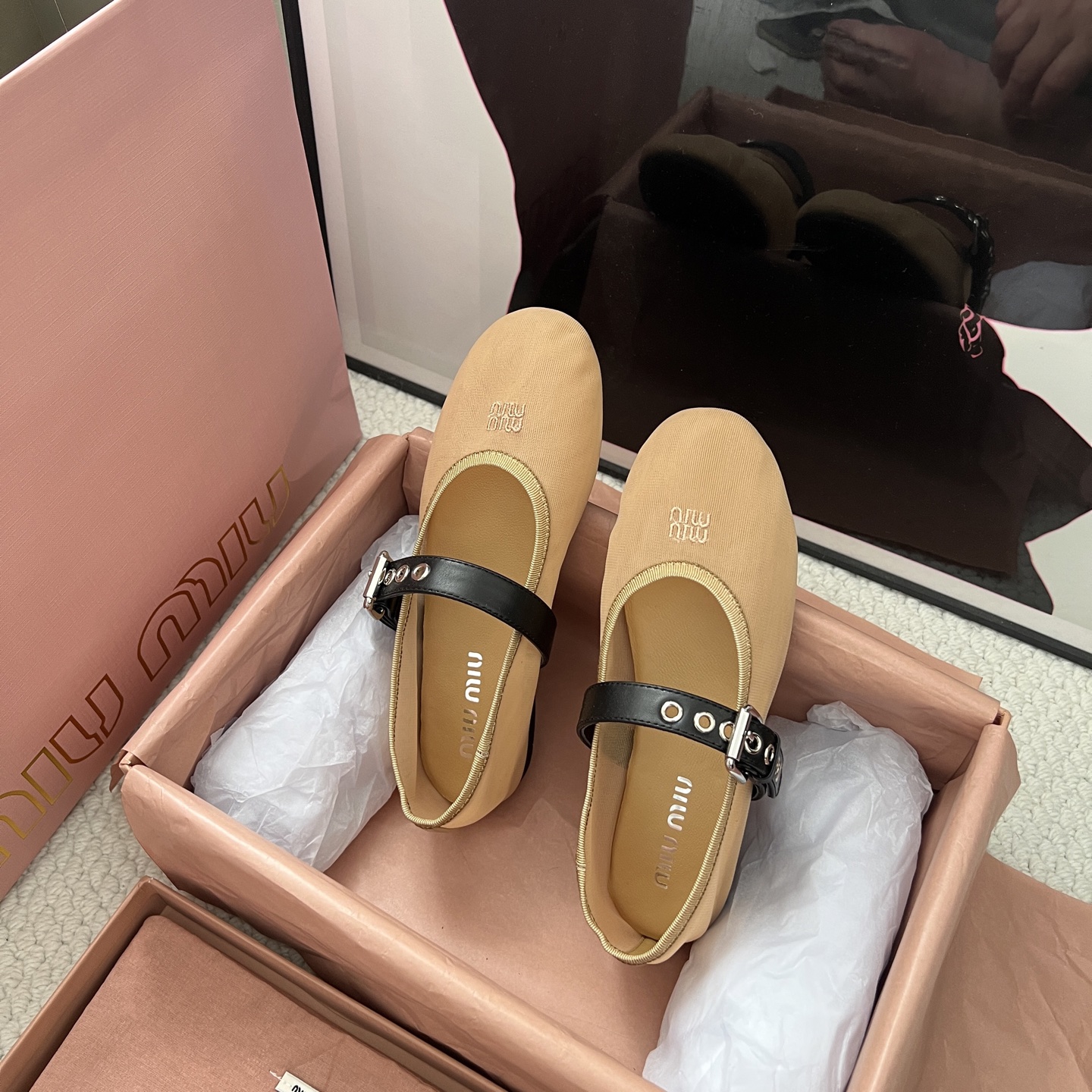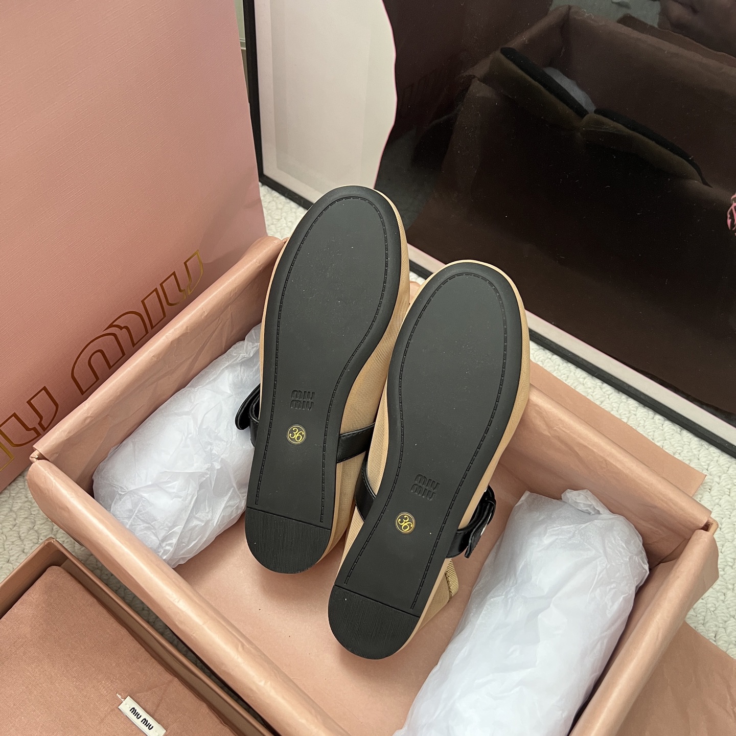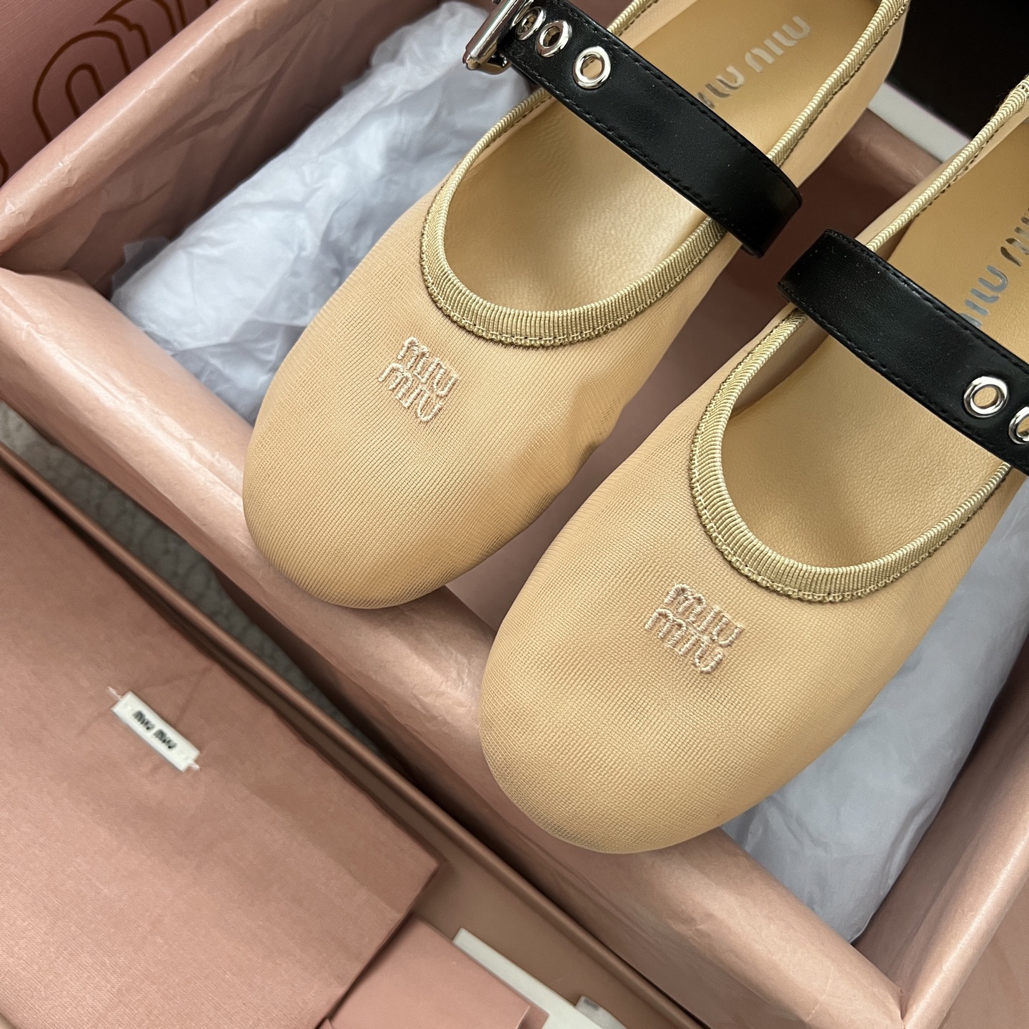 這款鞋子是AAAAA 1:1 質量(非常棒). 使用了和原版一模一樣的材料. 商標部分也保持了和繆繆/Miu Miu一樣. 圖片拍攝是實物鞋子拍攝, 您所收到的實物保證和我們圖片一模一樣.