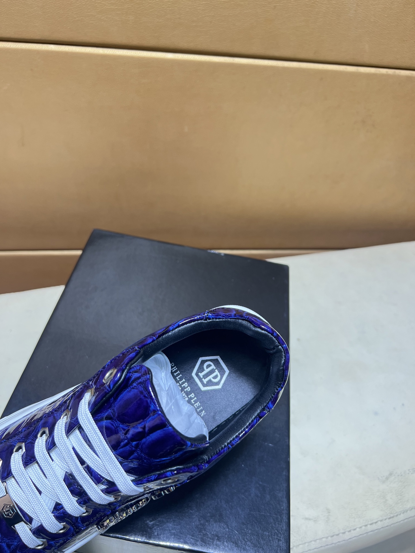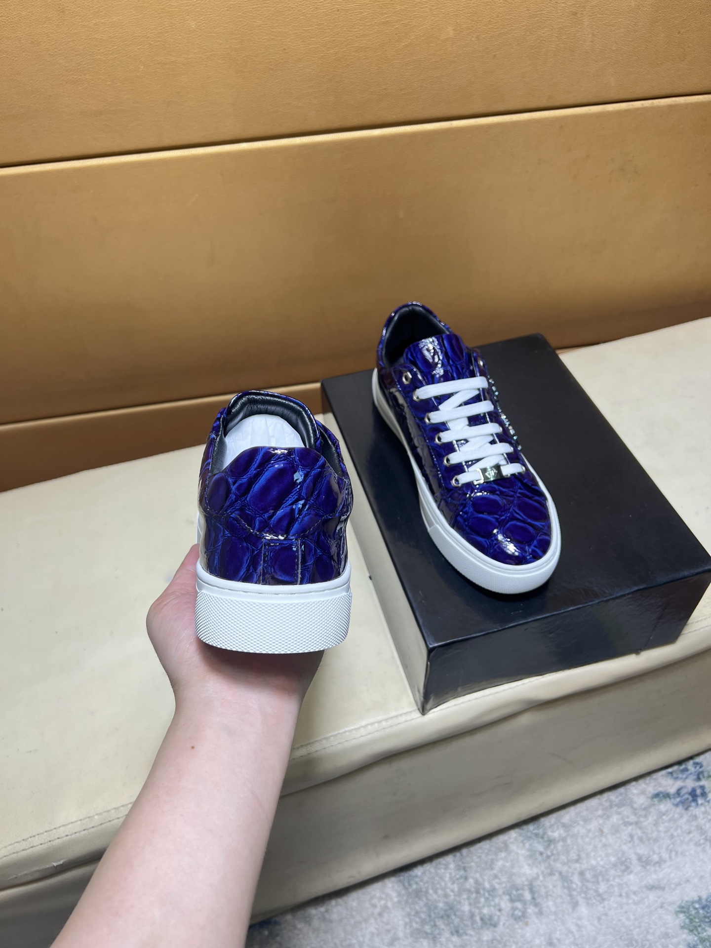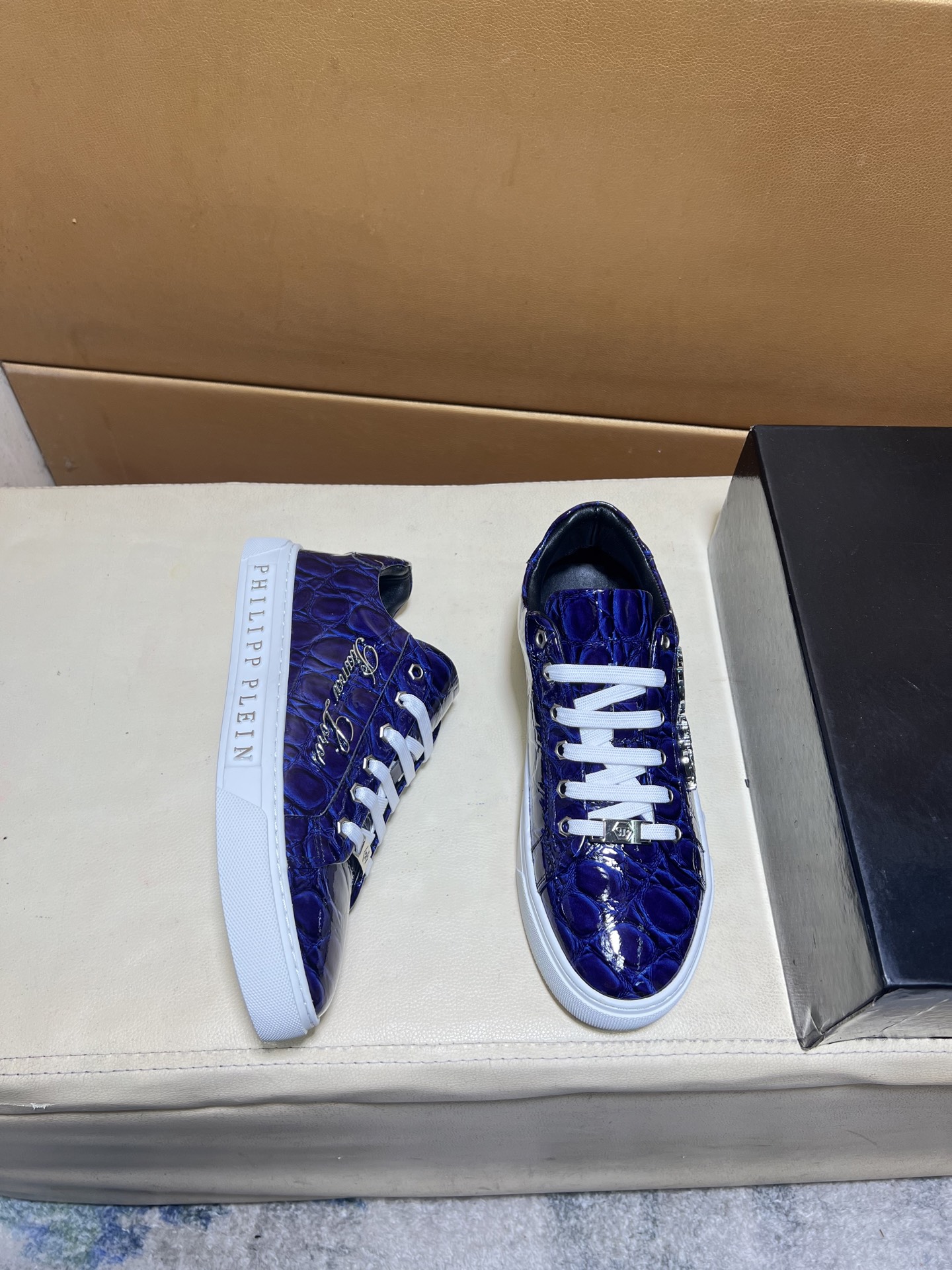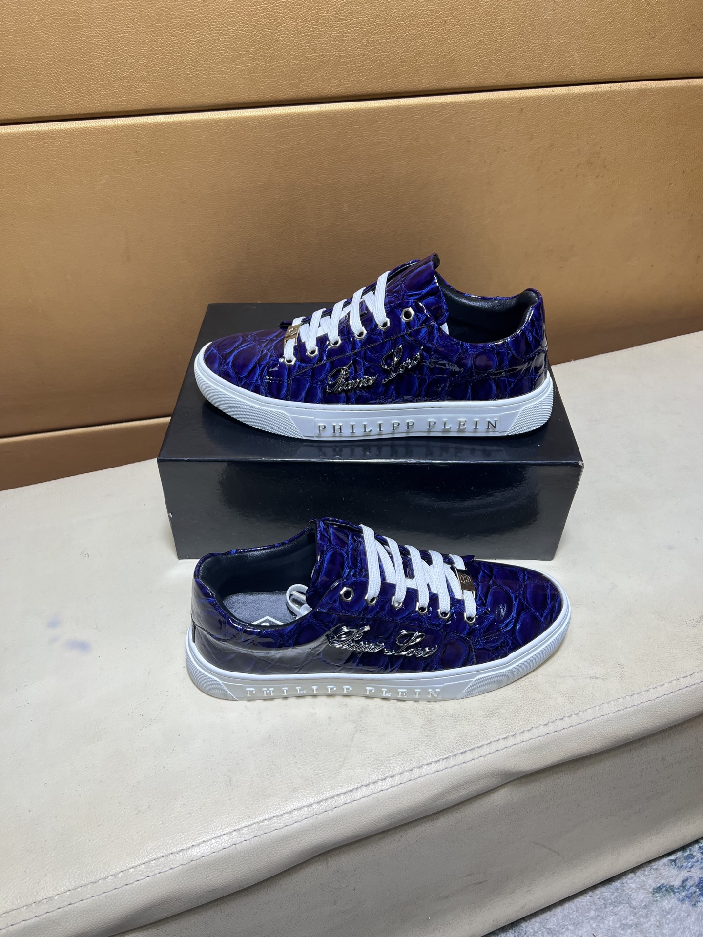 這款鞋子是AAAAA 1:1 質量(非常棒). 使用了和原版一模一樣的材料. 商標部分也保持了和菲利普·普林/Philipp Plein一樣. 圖片拍攝是實物鞋子拍攝, 您所收到的實物保證和我們圖片一模一樣.