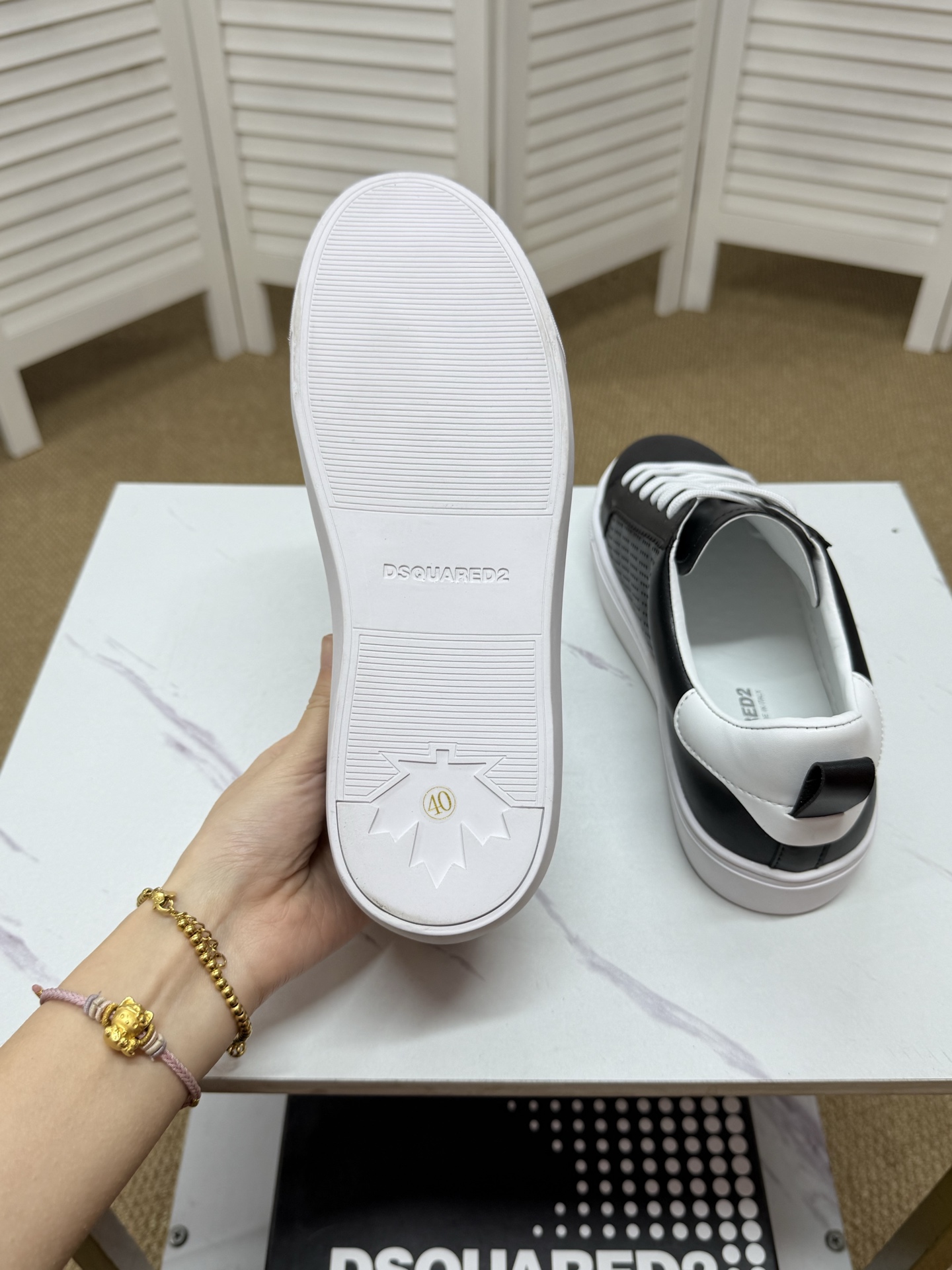 這款鞋子是AAAAA 1:1 質量(非常棒). 使用了和原版一模一樣的材料. 商標部分也保持了和DSQUARED2一樣. 圖片拍攝是實物鞋子拍攝, 您所收到的實物保證和我們圖片一模一樣.