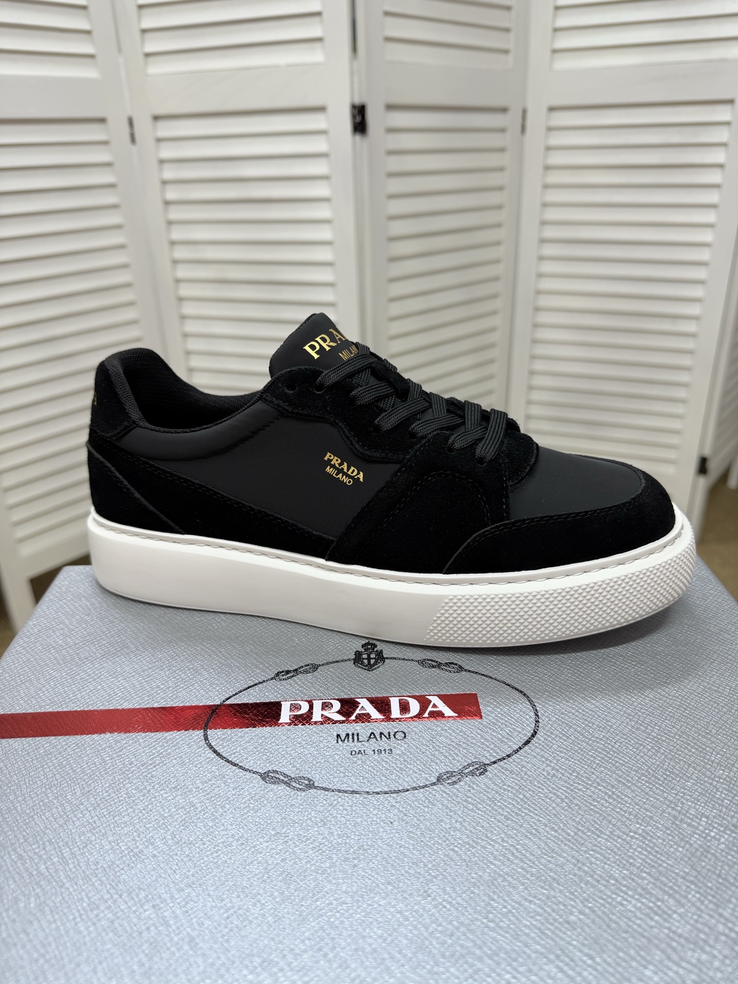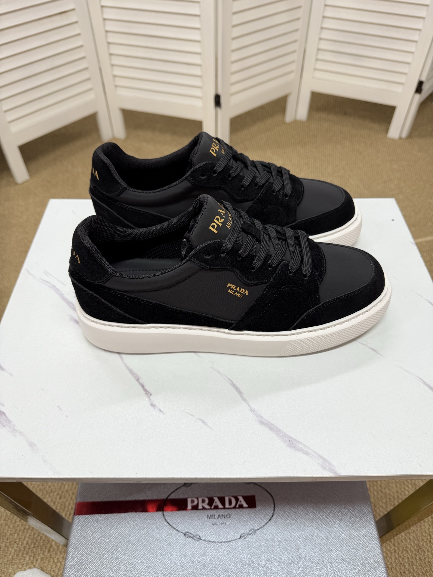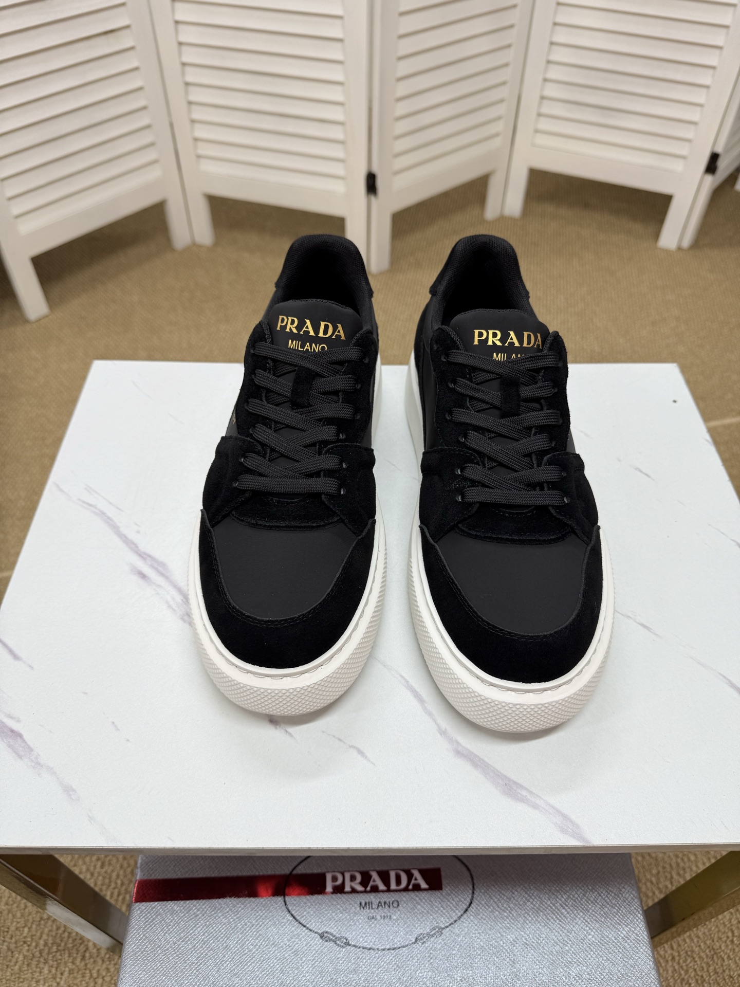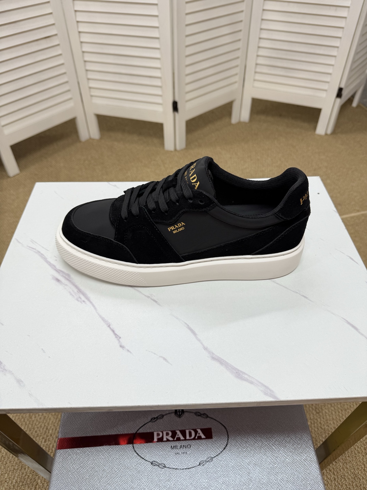 這款鞋子是AAAAA 1:1 質量(非常棒). 使用了和原版一模一樣的材料. 商標部分也保持了和普拉達/Prada一樣. 圖片拍攝是實物鞋子拍攝, 您所收到的實物保證和我們圖片一模一樣.