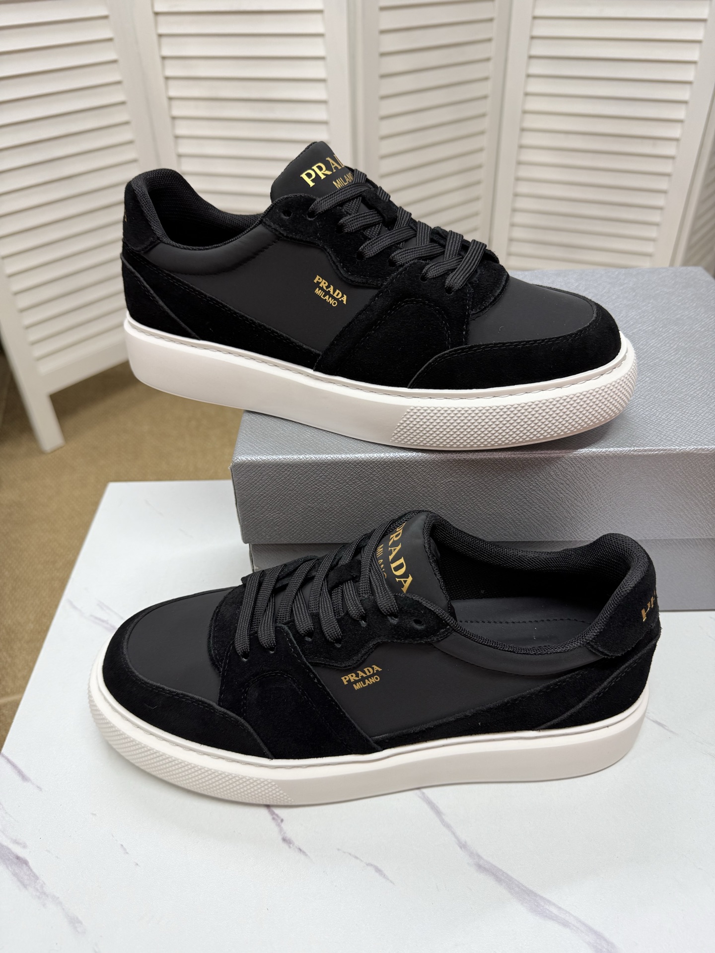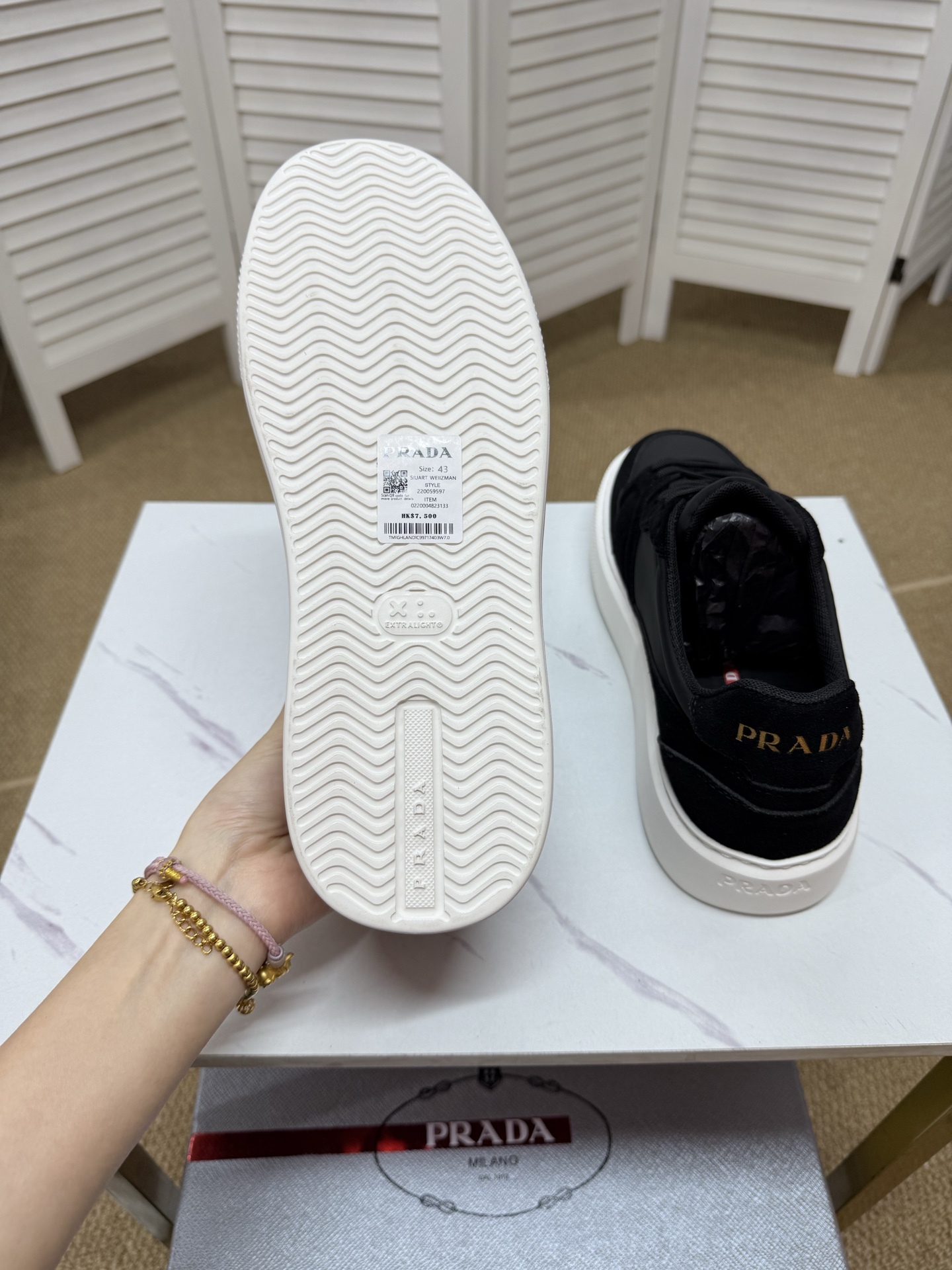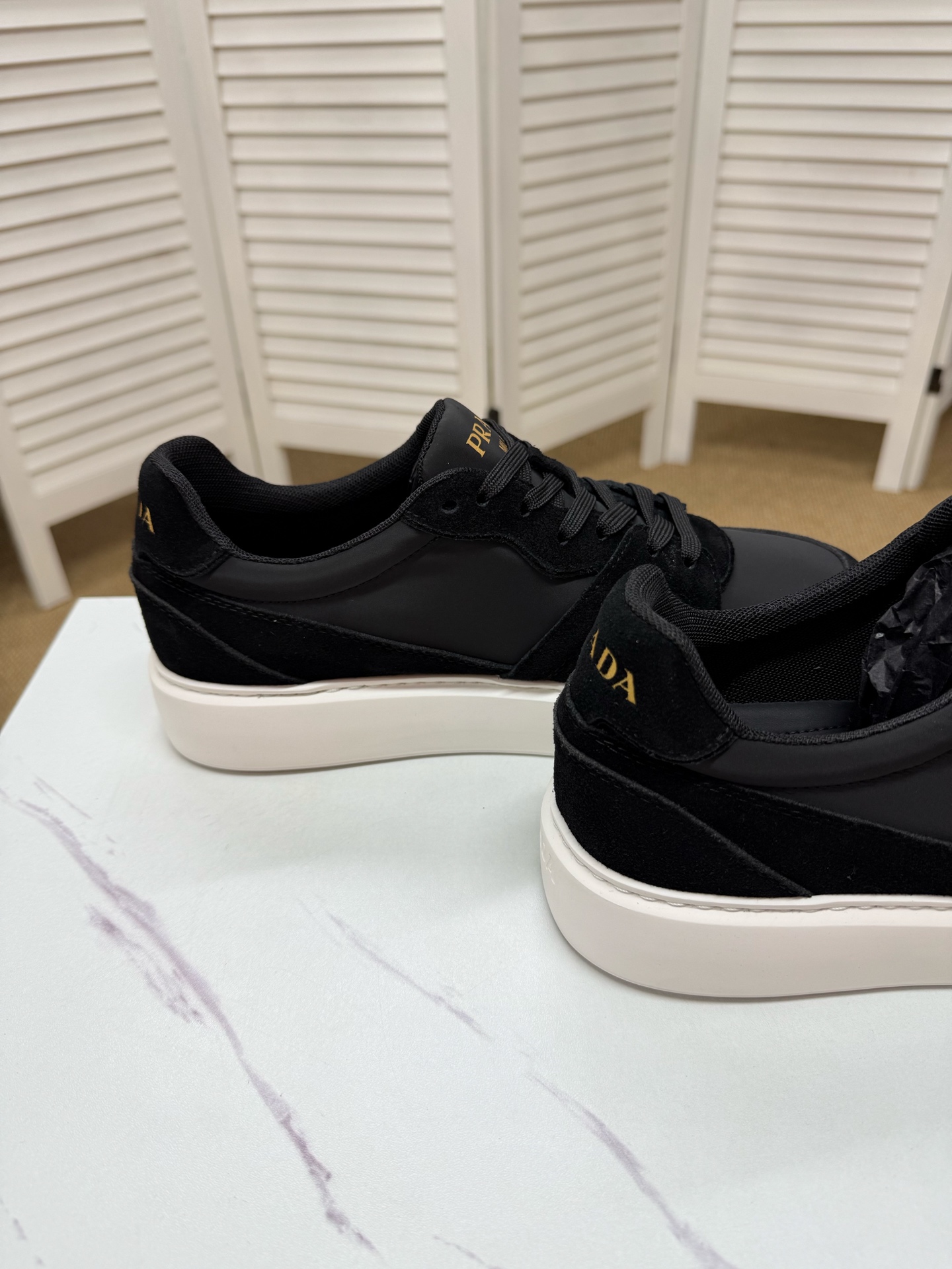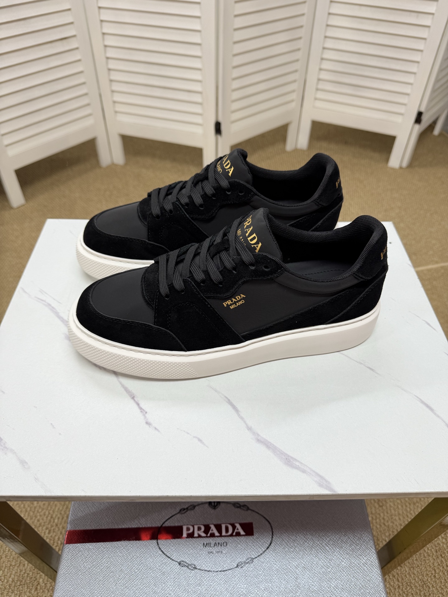 這款鞋子是AAAAA 1:1 質量(非常棒). 使用了和原版一模一樣的材料. 商標部分也保持了和普拉達/Prada一樣. 圖片拍攝是實物鞋子拍攝, 您所收到的實物保證和我們圖片一模一樣.