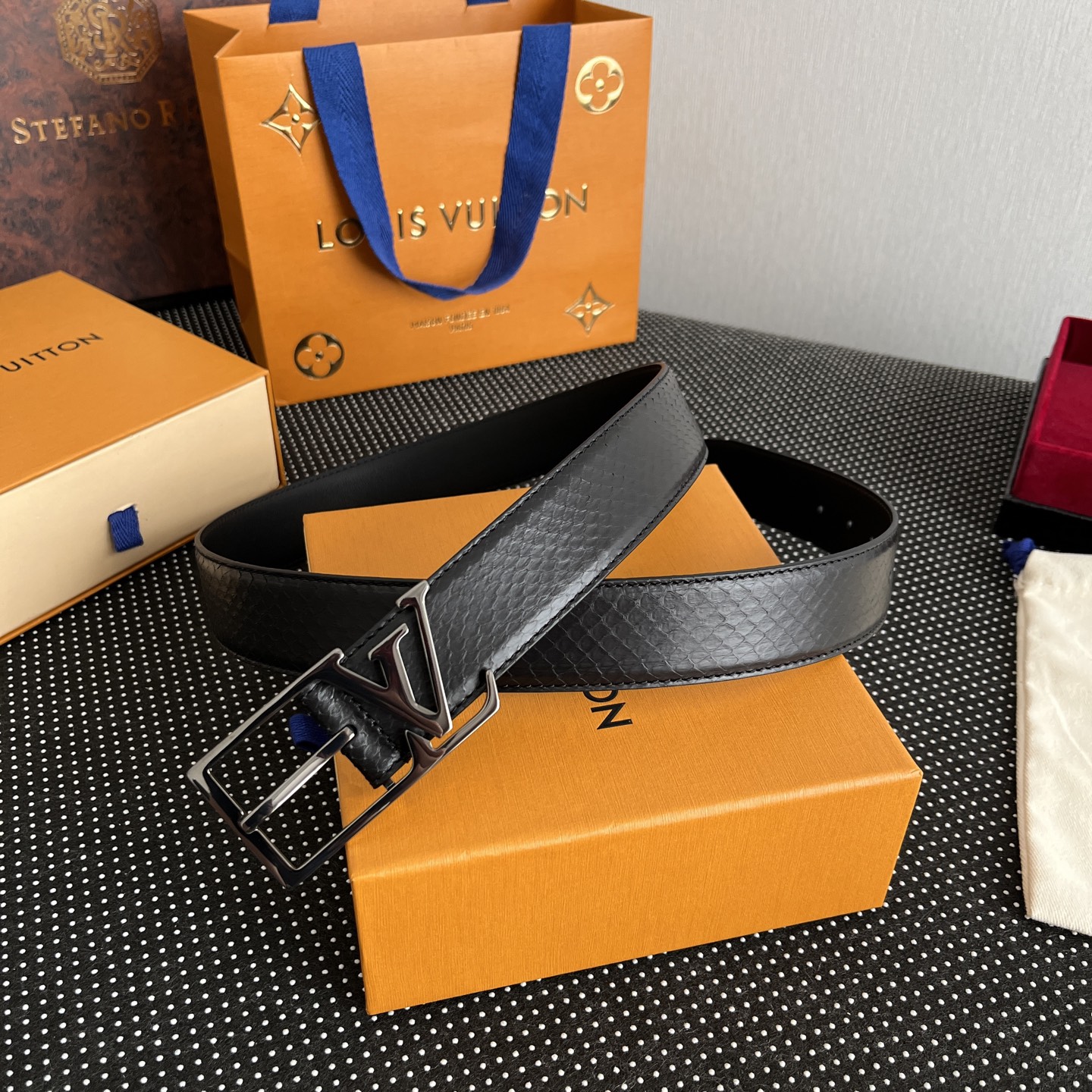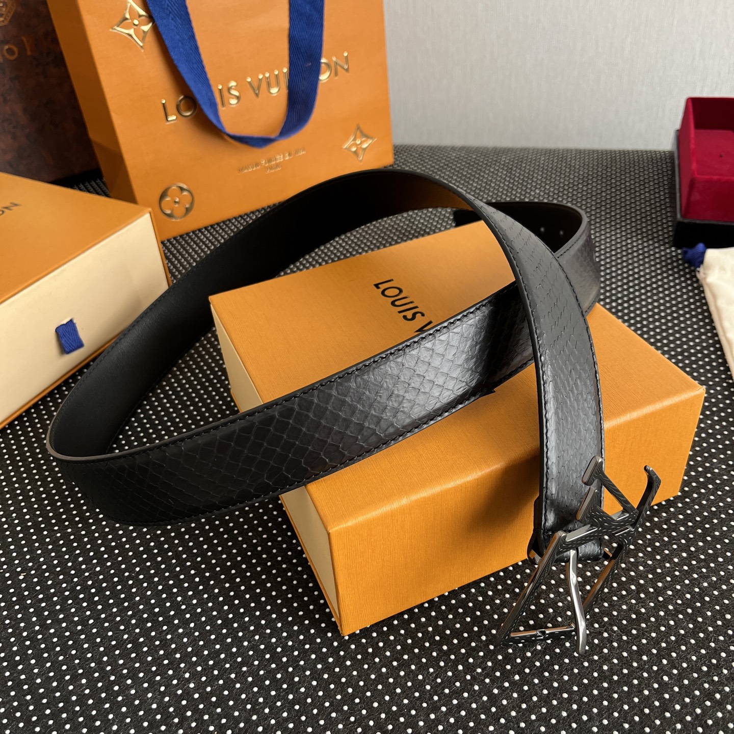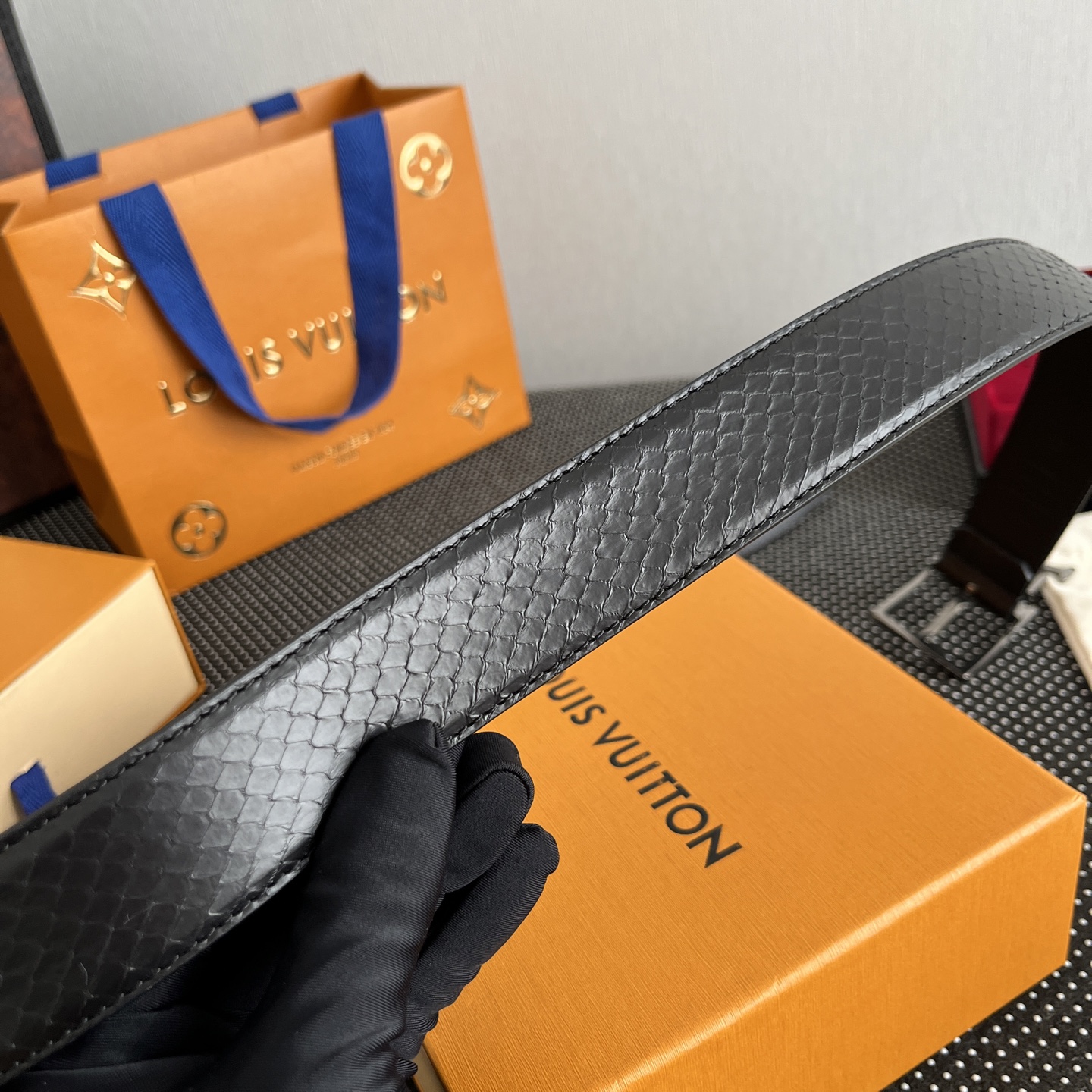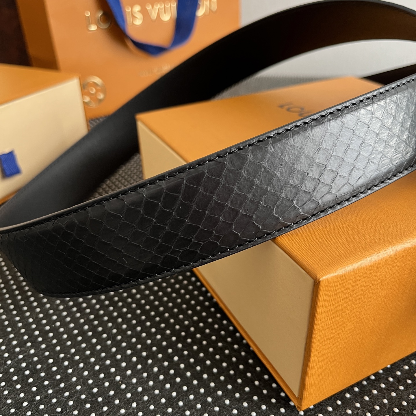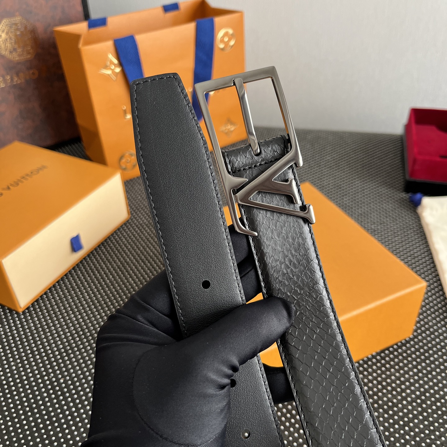 這款皮帶是AAAAA 1:1 質量(非常棒). 使用了和原版一模一樣的材料. 商標部分也保持了和路易威登/Louis Vuitton一樣. 圖片拍攝是實物皮帶拍攝, 您所收到的實物保證和我們圖片一模一樣.