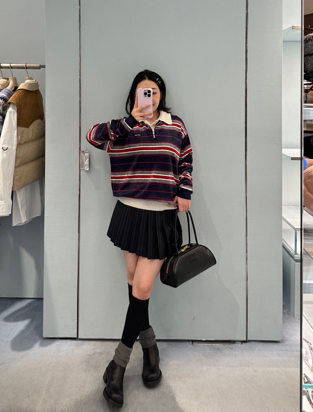 這款衣服是AAAAA 1:1 質量(非常棒). 使用了和原版一模一樣的材料. 商標部分也保持了和繆繆/Miu Miu一樣. 圖片拍攝是實物衣服拍攝, 您所收到的實物保證和我們圖片一模一樣.