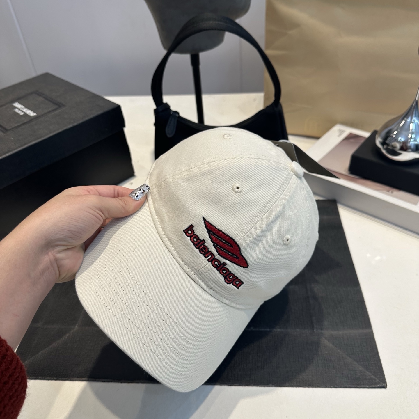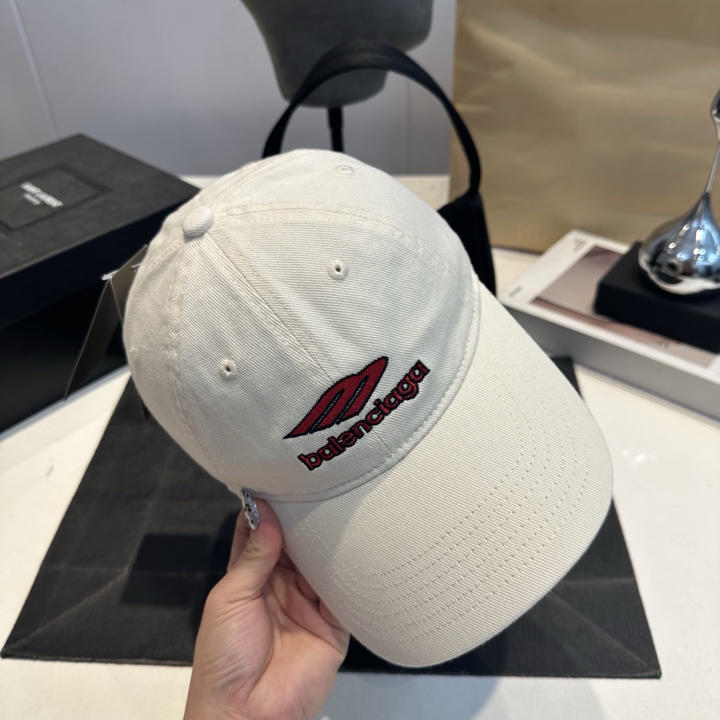 這款帽子是AAAAA 1:1 質量(非常棒). 使用了和原版一模一樣的材料. 商標部分也保持了和巴倫西亞/Balenciaga一樣. 圖片拍攝是實物帽子拍攝, 您所收到的實物保證和我們圖片一模一樣.