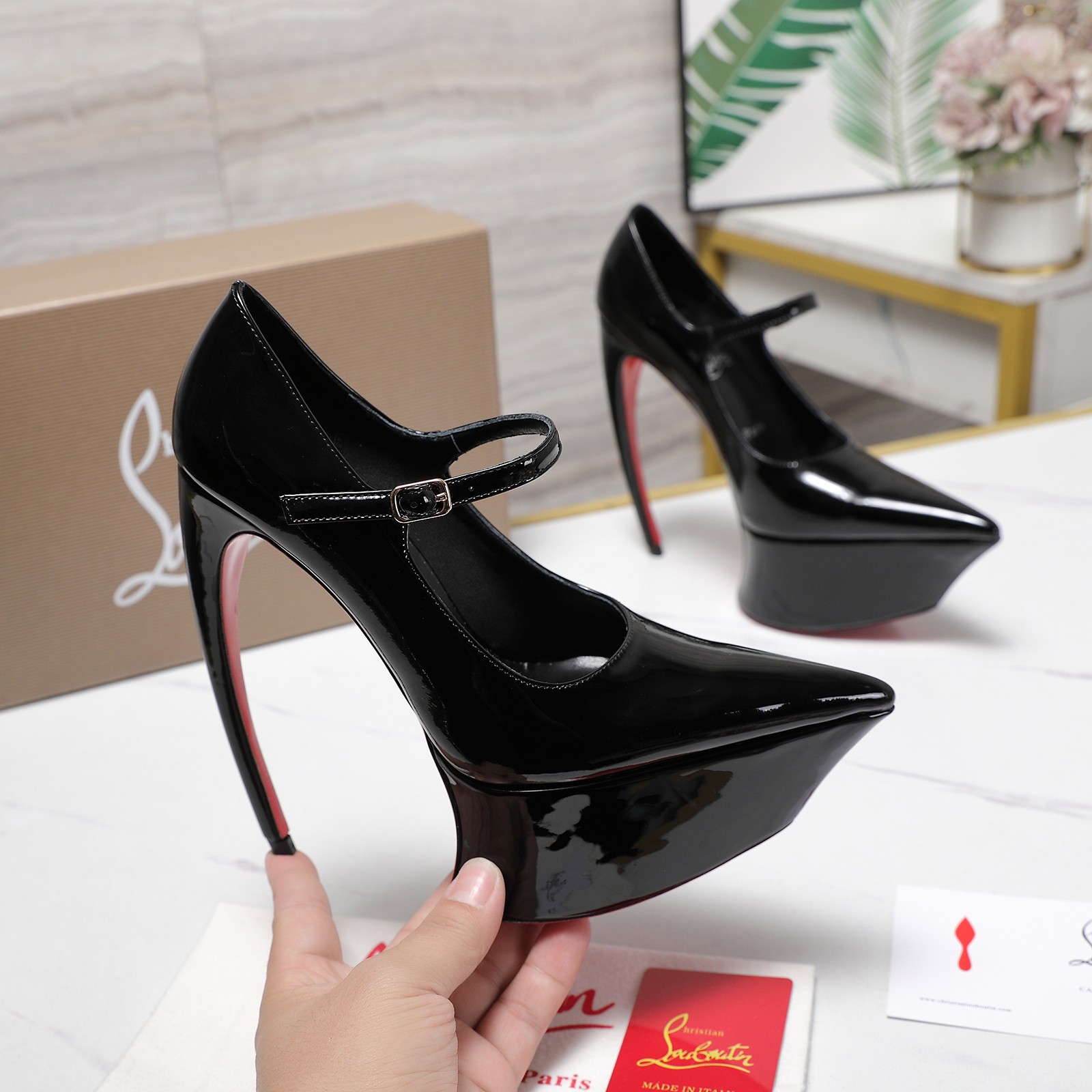 這款鞋子是AAAAA 1:1 質量(非常棒). 使用了和原版一模一樣的材料. 商標部分也保持了和Christian Louboutin一樣. 圖片拍攝是實物鞋子拍攝, 您所收到的實物保證和我們圖片一模一樣.