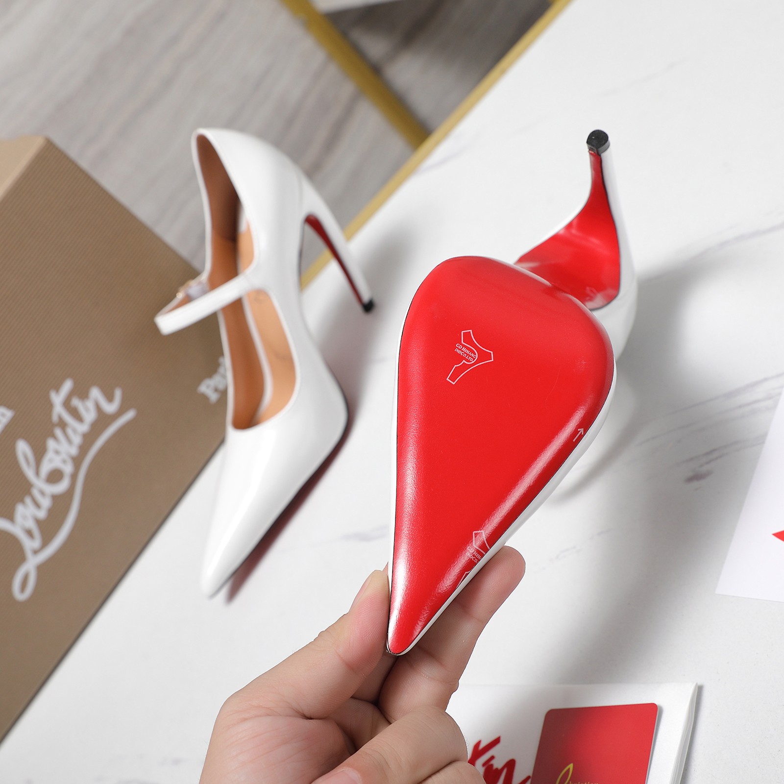 這款鞋子是AAAAA 1:1 質量(非常棒). 使用了和原版一模一樣的材料. 商標部分也保持了和Christian Louboutin一樣. 圖片拍攝是實物鞋子拍攝, 您所收到的實物保證和我們圖片一模一樣.
