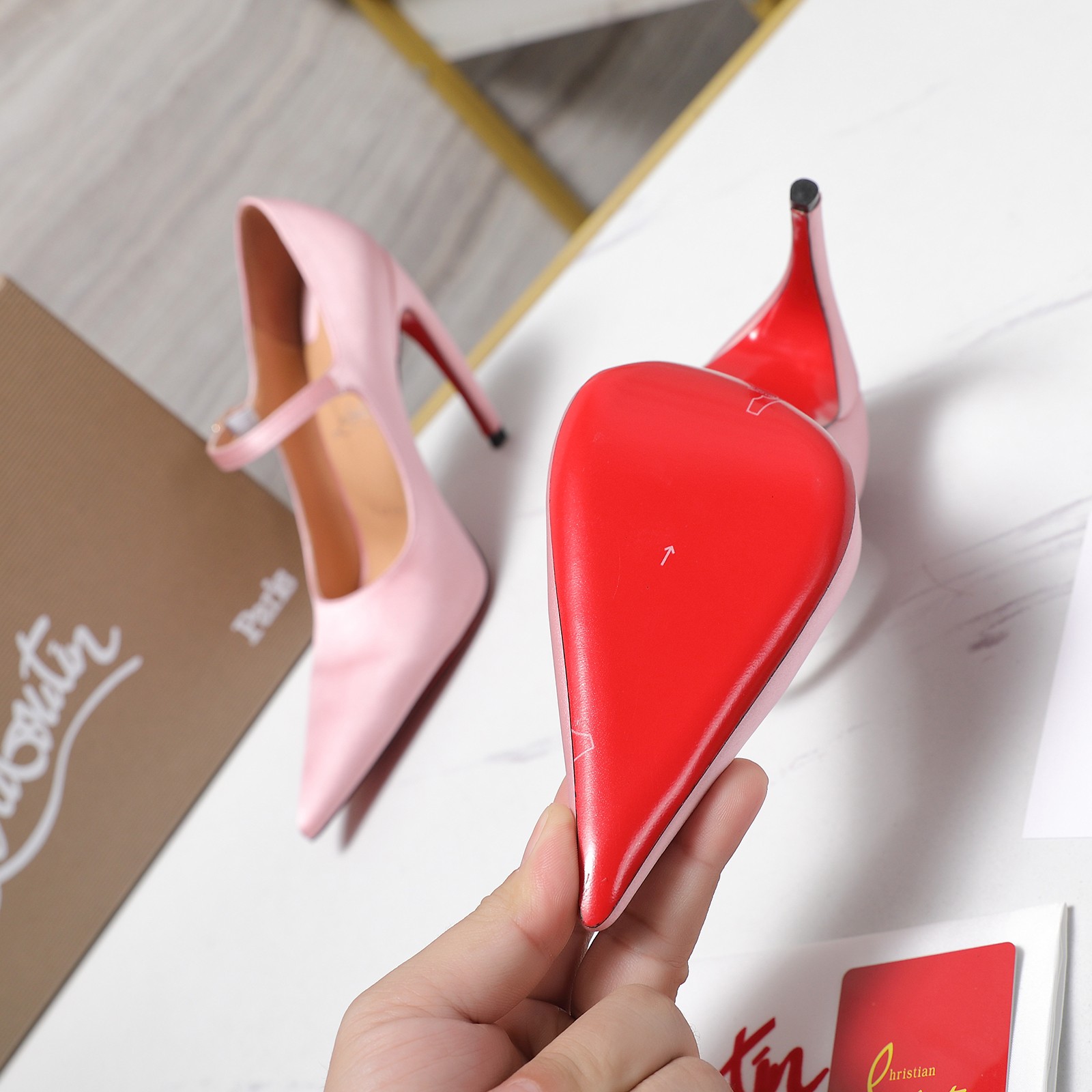 這款鞋子是AAAAA 1:1 質量(非常棒). 使用了和原版一模一樣的材料. 商標部分也保持了和Christian Louboutin一樣. 圖片拍攝是實物鞋子拍攝, 您所收到的實物保證和我們圖片一模一樣.