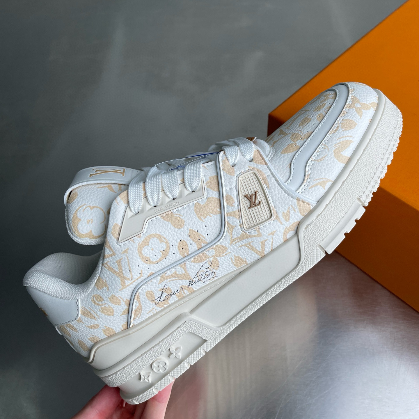 這款鞋子是AAAAA 1:1 質量(非常棒). 使用了和原版一模一樣的材料. 商標部分也保持了和路易威登/Louis Vuitton一樣. 圖片拍攝是實物鞋子拍攝, 您所收到的實物保證和我們圖片一模一樣.
