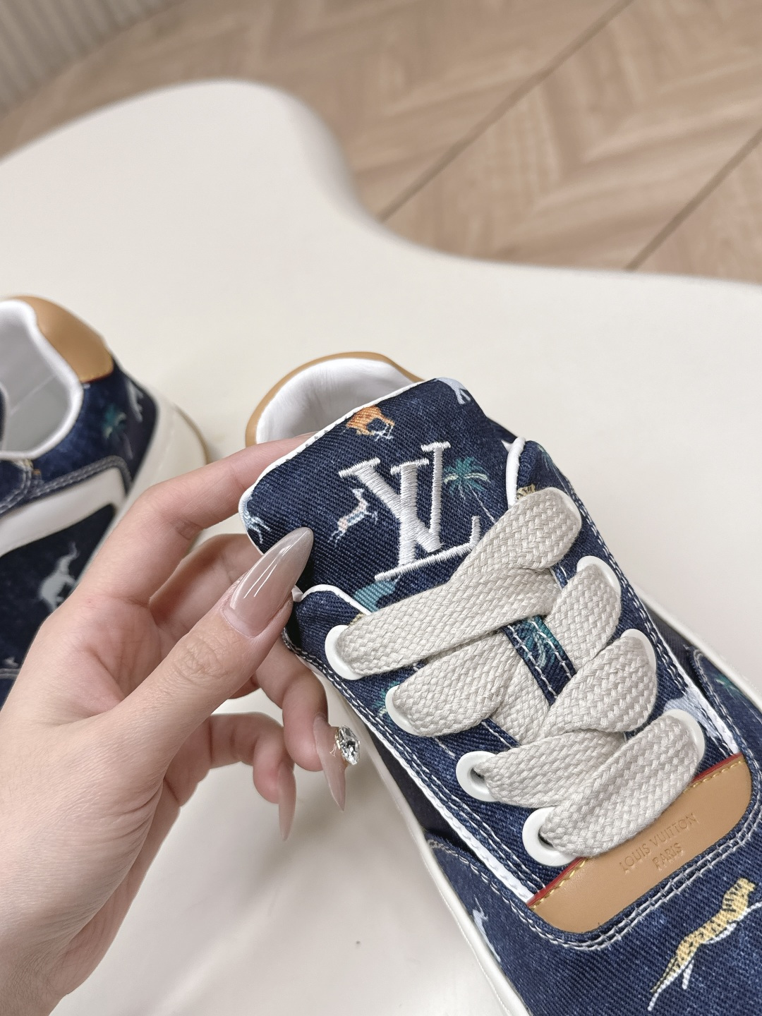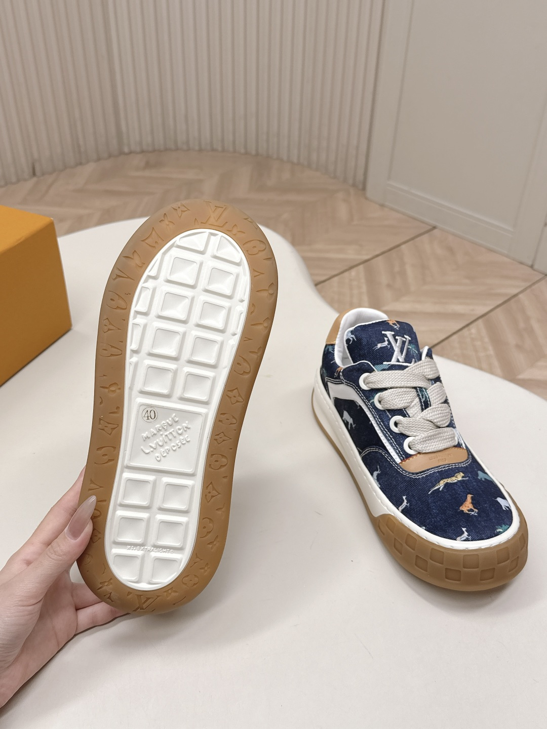 這款鞋子是AAAAA 1:1 質量(非常棒). 使用了和原版一模一樣的材料. 商標部分也保持了和路易威登/Louis Vuitton一樣. 圖片拍攝是實物鞋子拍攝, 您所收到的實物保證和我們圖片一模一樣.