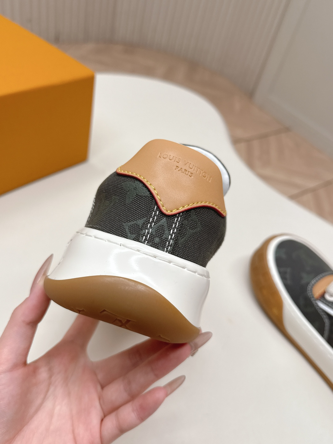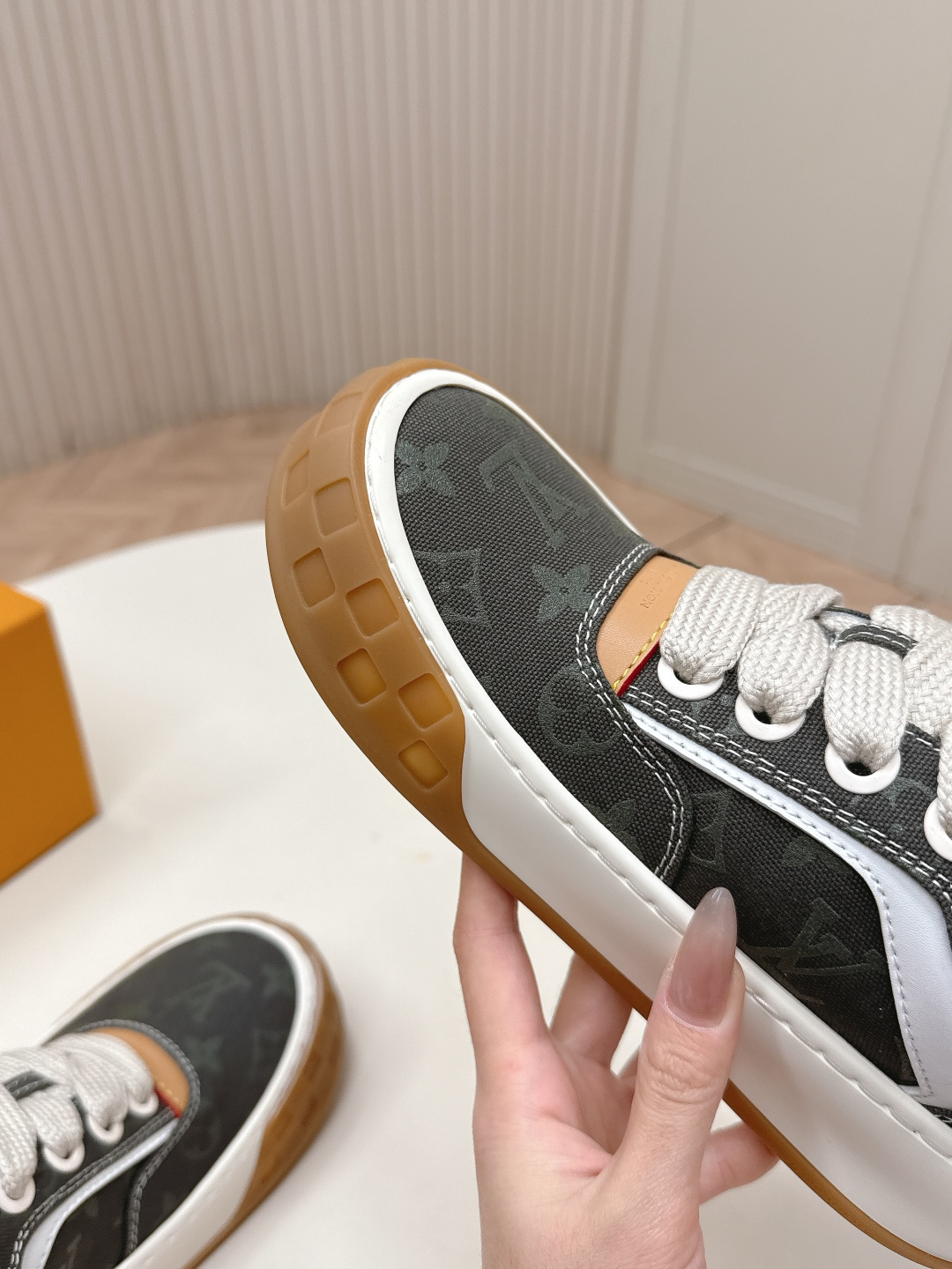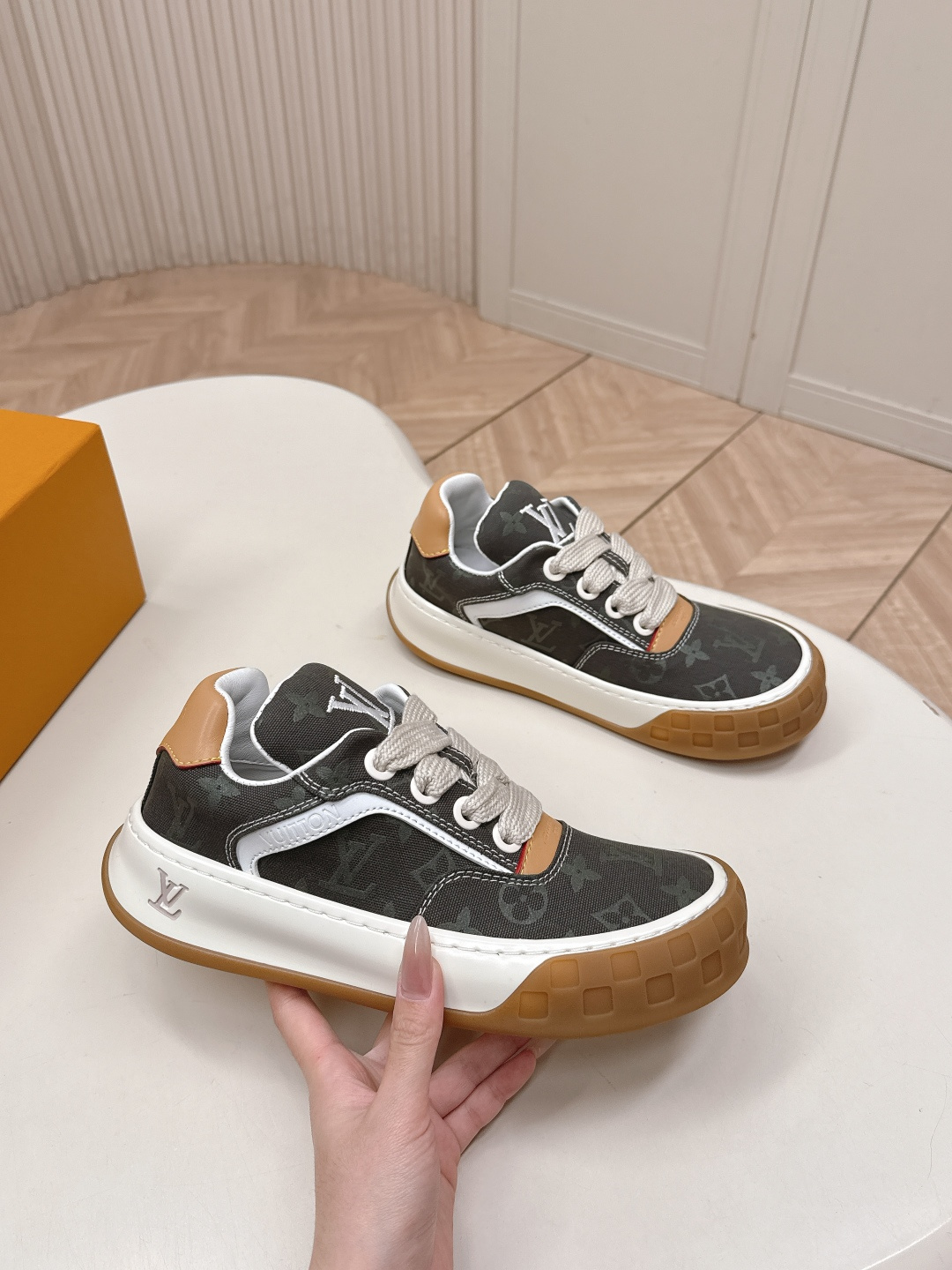 這款鞋子是AAAAA 1:1 質量(非常棒). 使用了和原版一模一樣的材料. 商標部分也保持了和路易威登/Louis Vuitton一樣. 圖片拍攝是實物鞋子拍攝, 您所收到的實物保證和我們圖片一模一樣.
