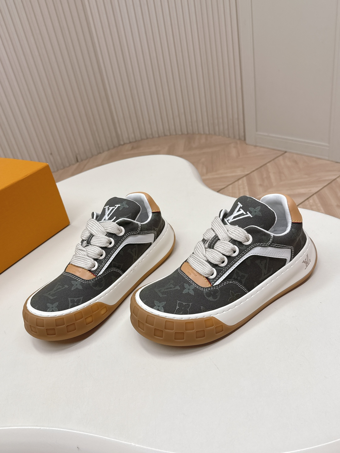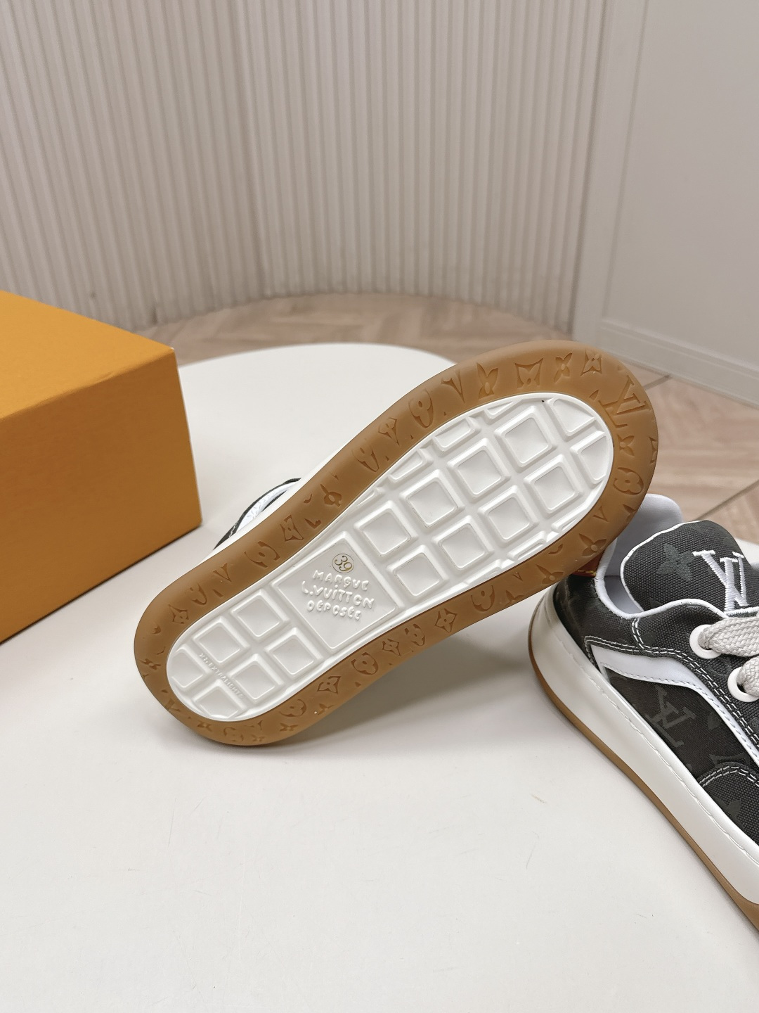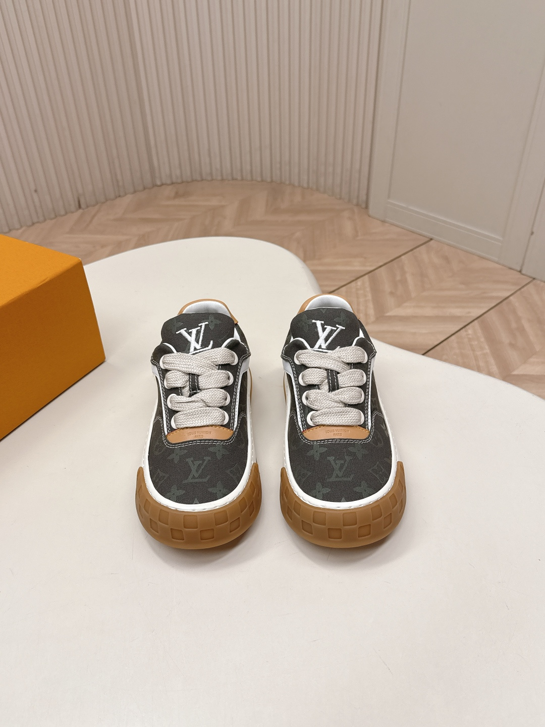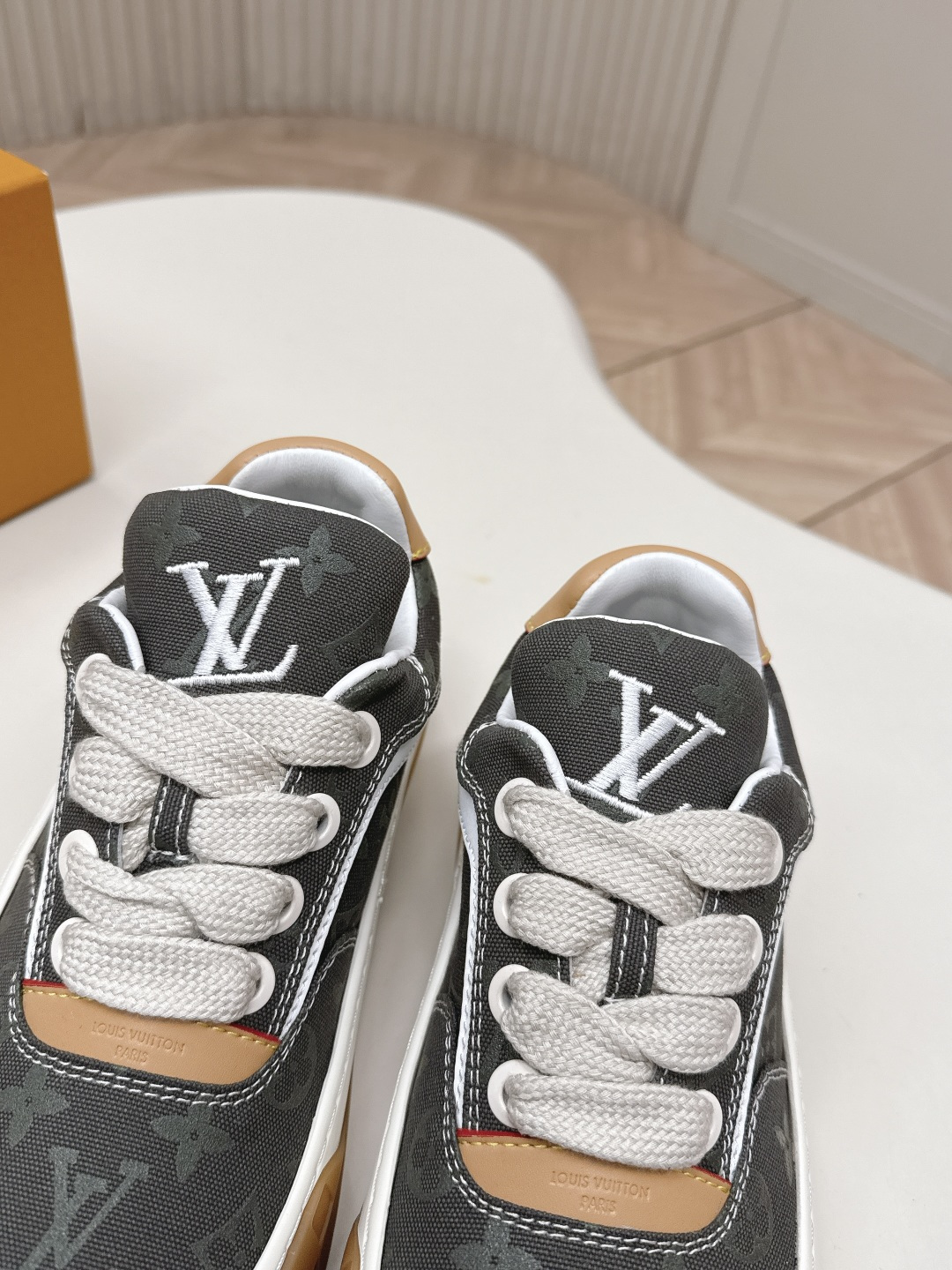 這款鞋子是AAAAA 1:1 質量(非常棒). 使用了和原版一模一樣的材料. 商標部分也保持了和路易威登/Louis Vuitton一樣. 圖片拍攝是實物鞋子拍攝, 您所收到的實物保證和我們圖片一模一樣.