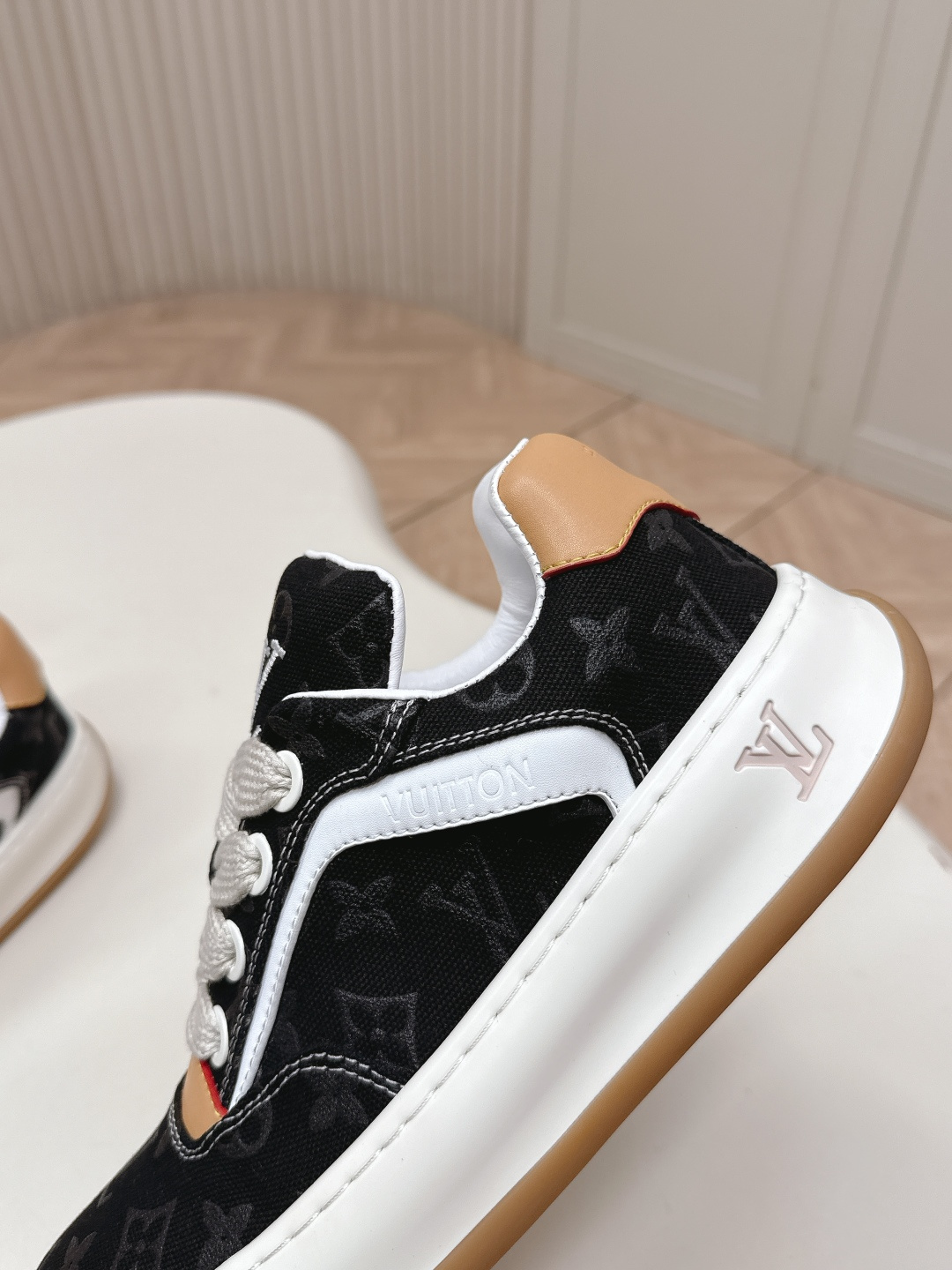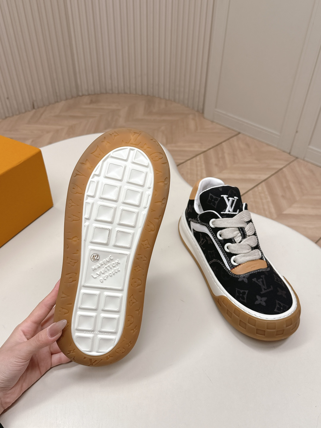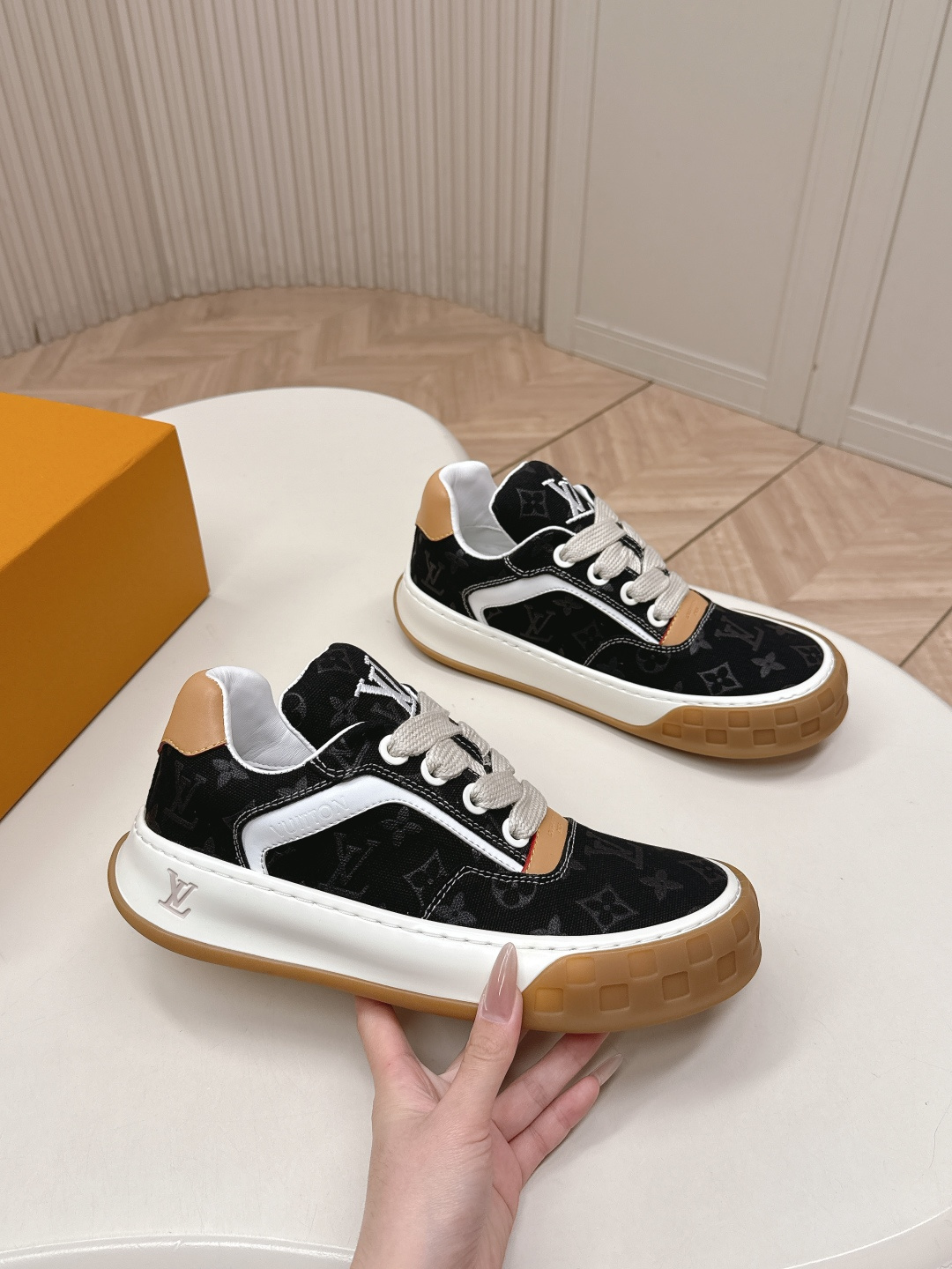 這款鞋子是AAAAA 1:1 質量(非常棒). 使用了和原版一模一樣的材料. 商標部分也保持了和路易威登/Louis Vuitton一樣. 圖片拍攝是實物鞋子拍攝, 您所收到的實物保證和我們圖片一模一樣.