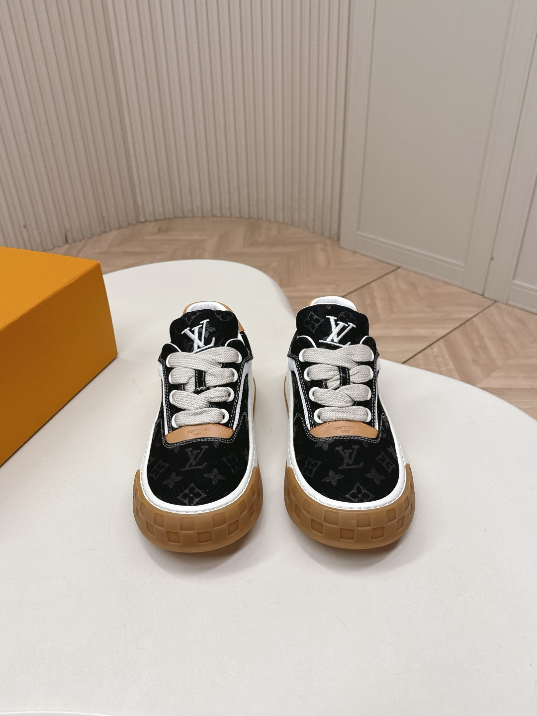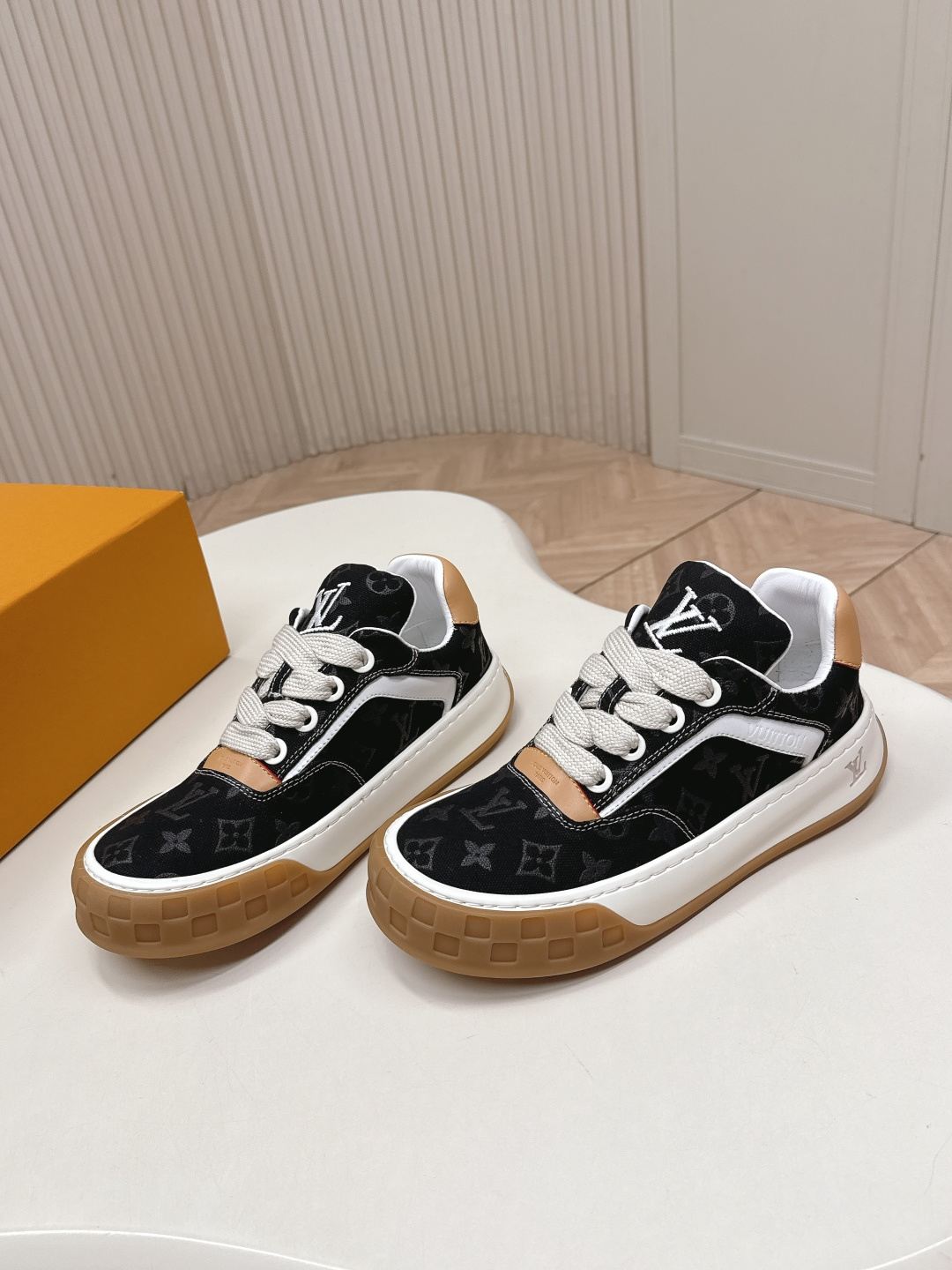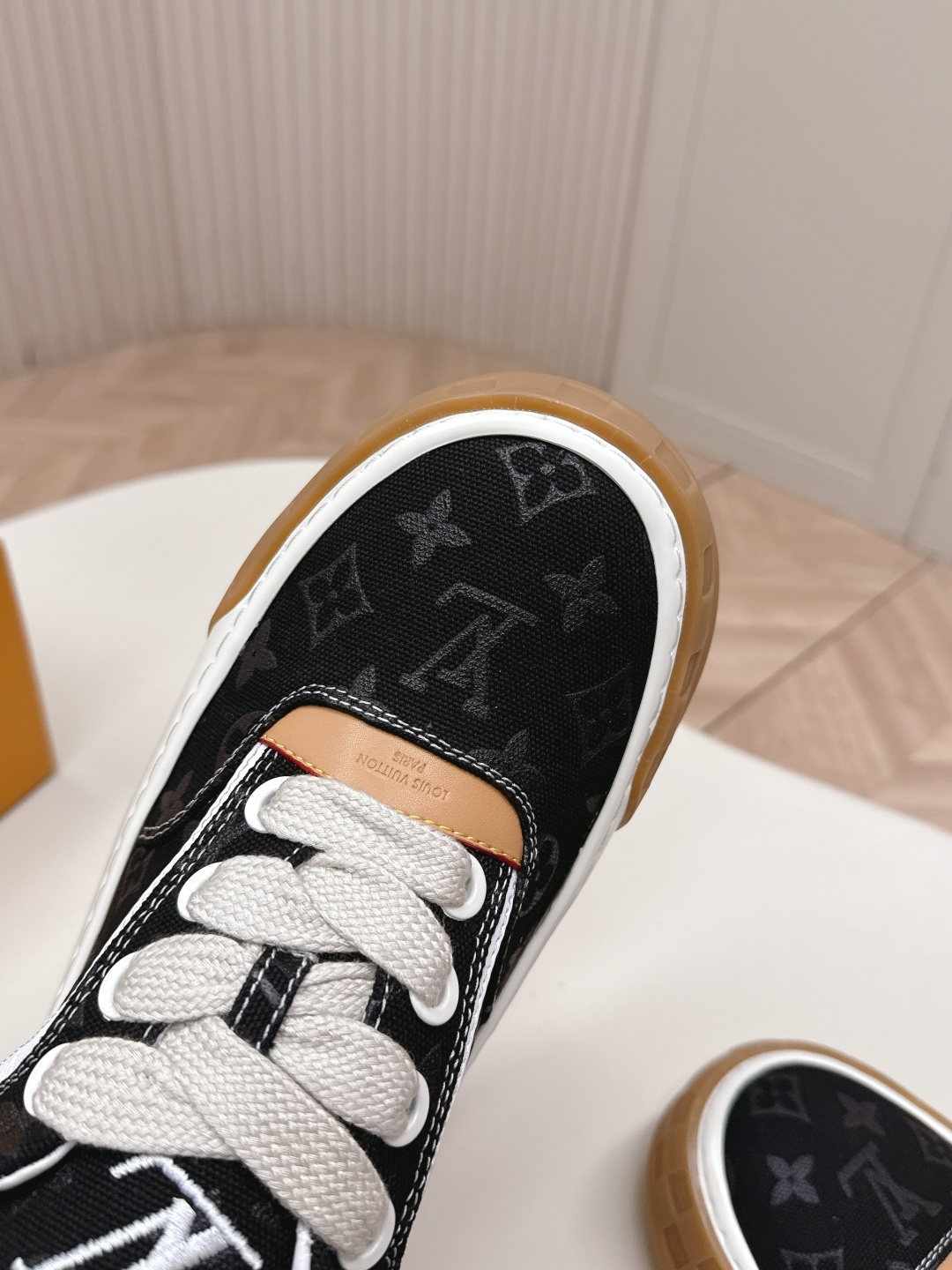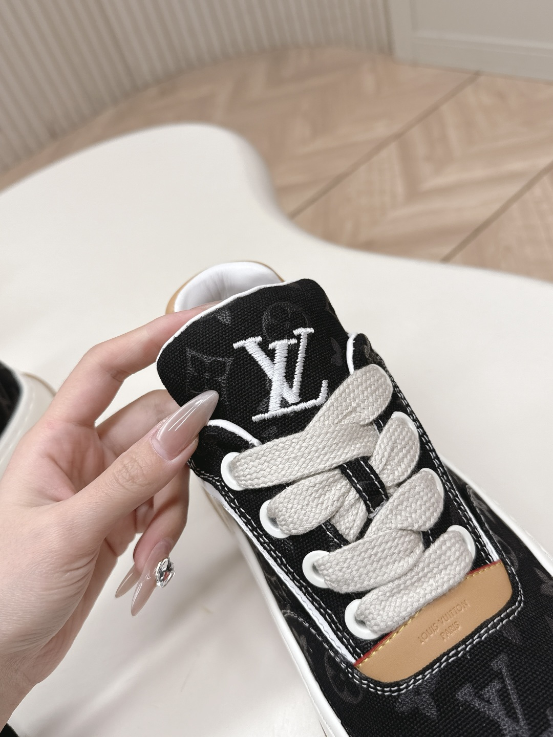 這款鞋子是AAAAA 1:1 質量(非常棒). 使用了和原版一模一樣的材料. 商標部分也保持了和路易威登/Louis Vuitton一樣. 圖片拍攝是實物鞋子拍攝, 您所收到的實物保證和我們圖片一模一樣.