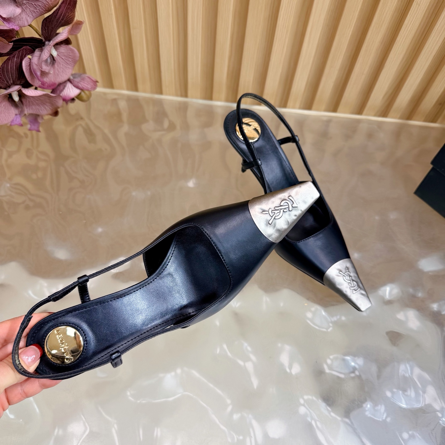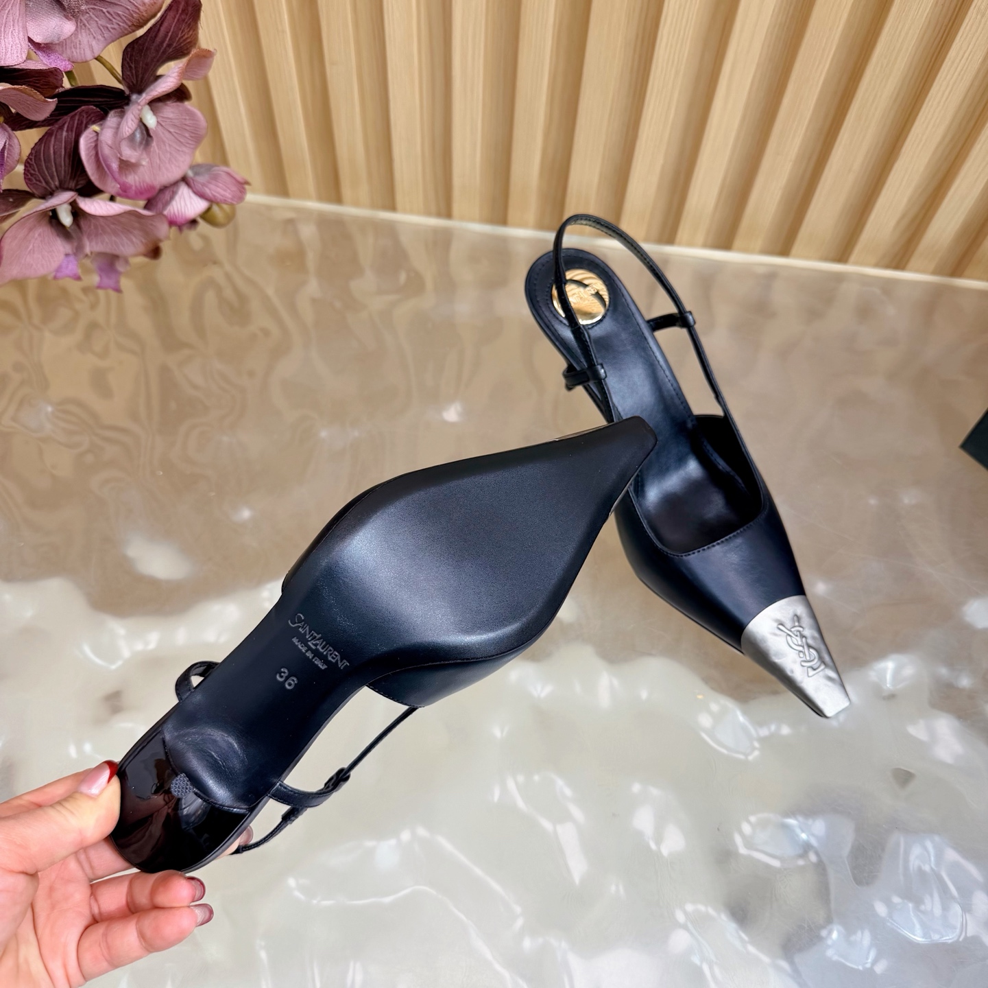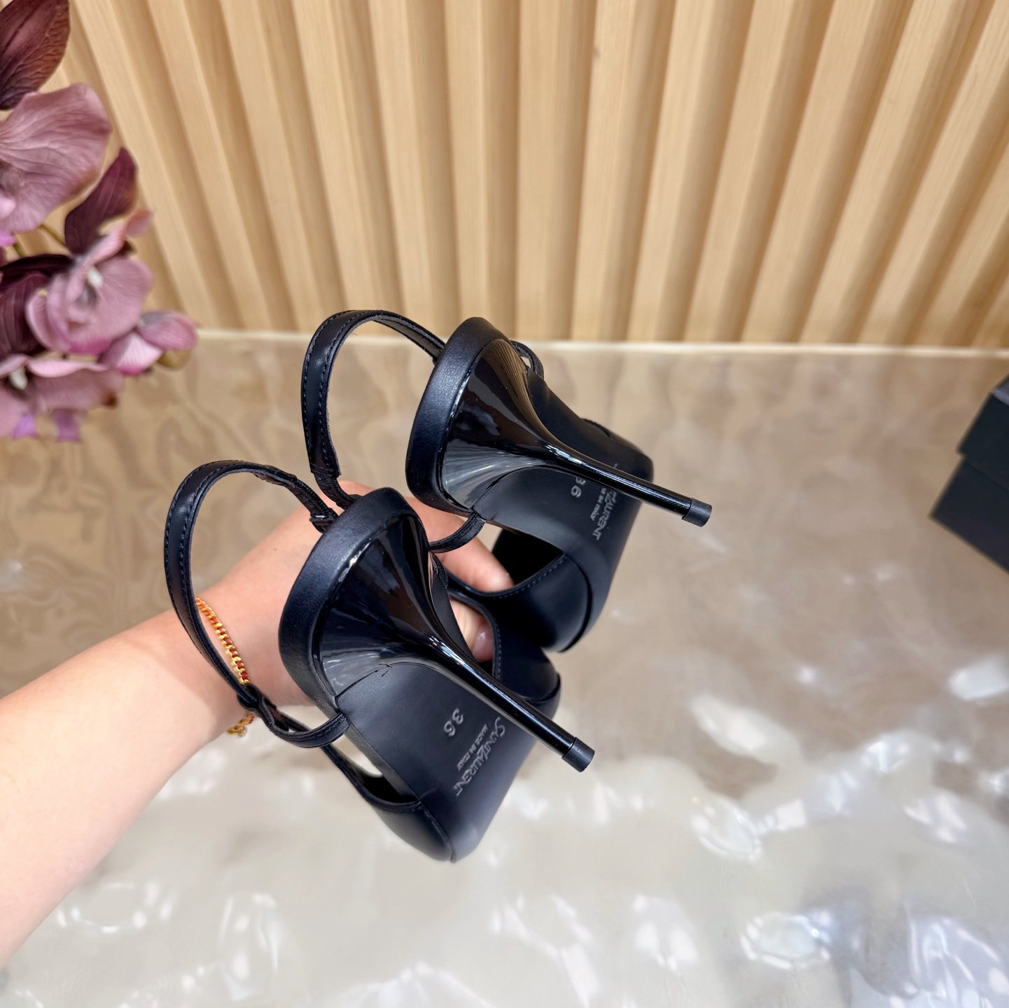 這款鞋子是AAAAA 1:1 質量(非常棒). 使用了和原版一模一樣的材料. 商標部分也保持了和聖羅蘭/Saint Laurent一樣. 圖片拍攝是實物鞋子拍攝, 您所收到的實物保證和我們圖片一模一樣.