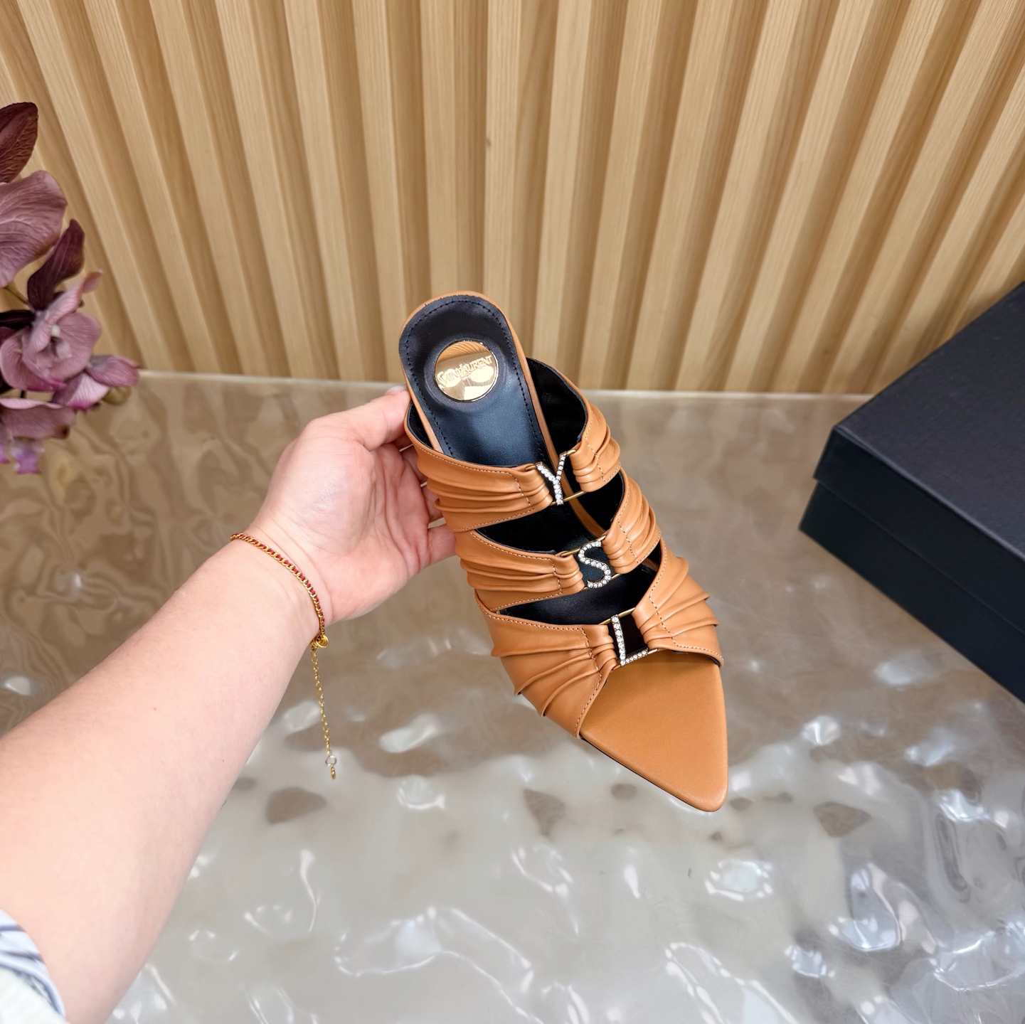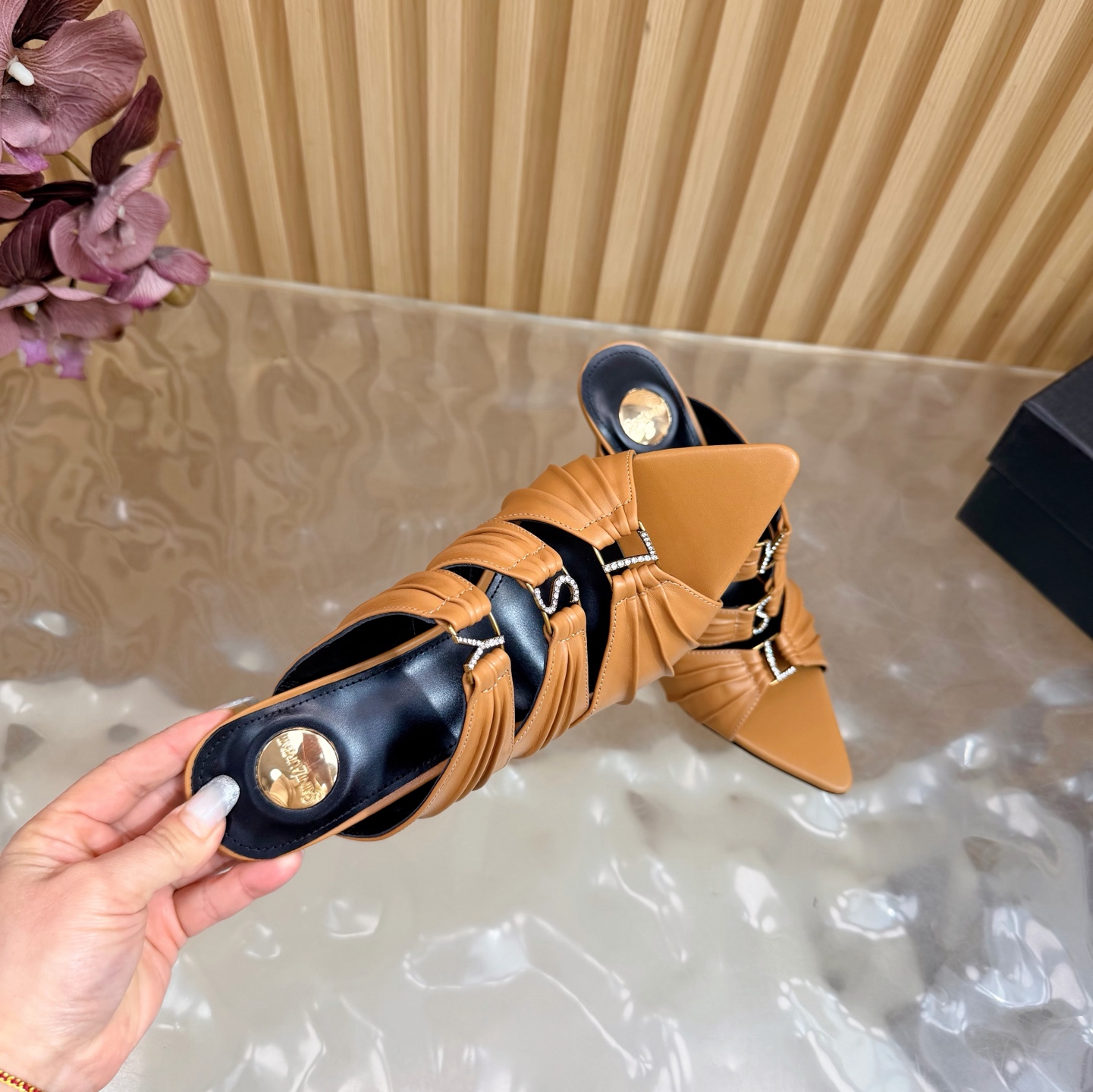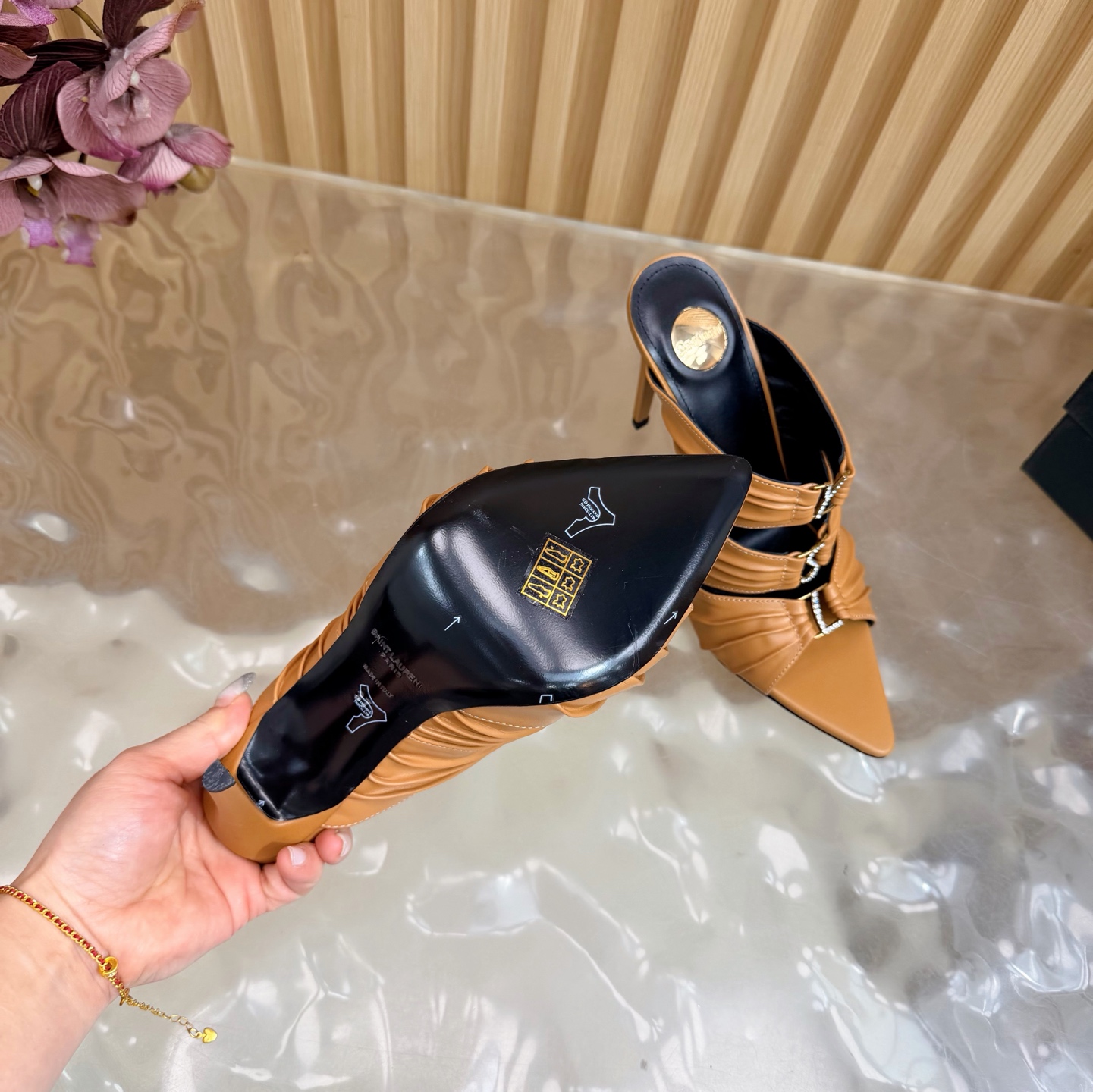 這款鞋子是AAAAA 1:1 質量(非常棒). 使用了和原版一模一樣的材料. 商標部分也保持了和聖羅蘭/Saint Laurent一樣. 圖片拍攝是實物鞋子拍攝, 您所收到的實物保證和我們圖片一模一樣.