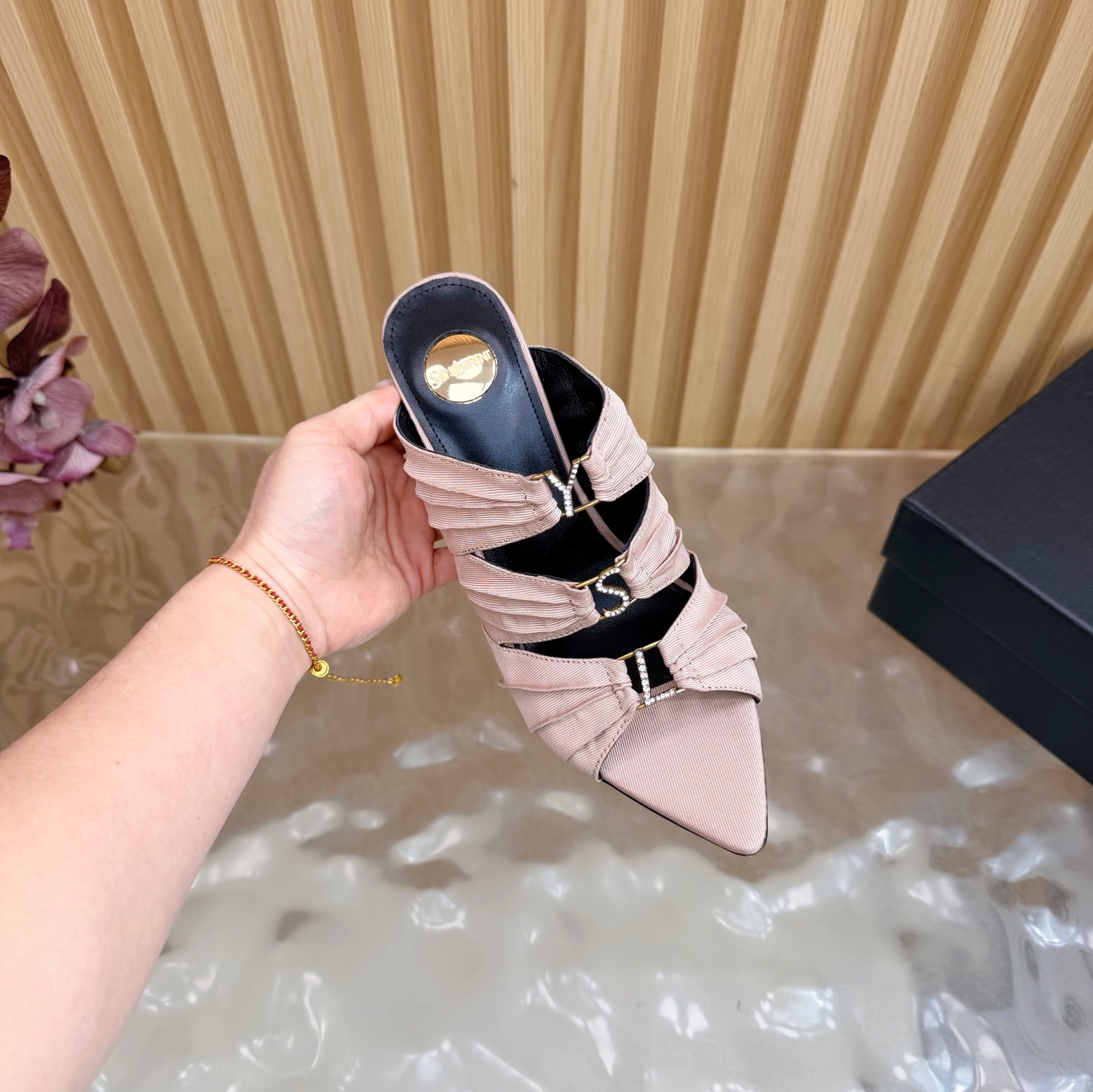 這款鞋子是AAAAA 1:1 質量(非常棒). 使用了和原版一模一樣的材料. 商標部分也保持了和聖羅蘭/Saint Laurent一樣. 圖片拍攝是實物鞋子拍攝, 您所收到的實物保證和我們圖片一模一樣.